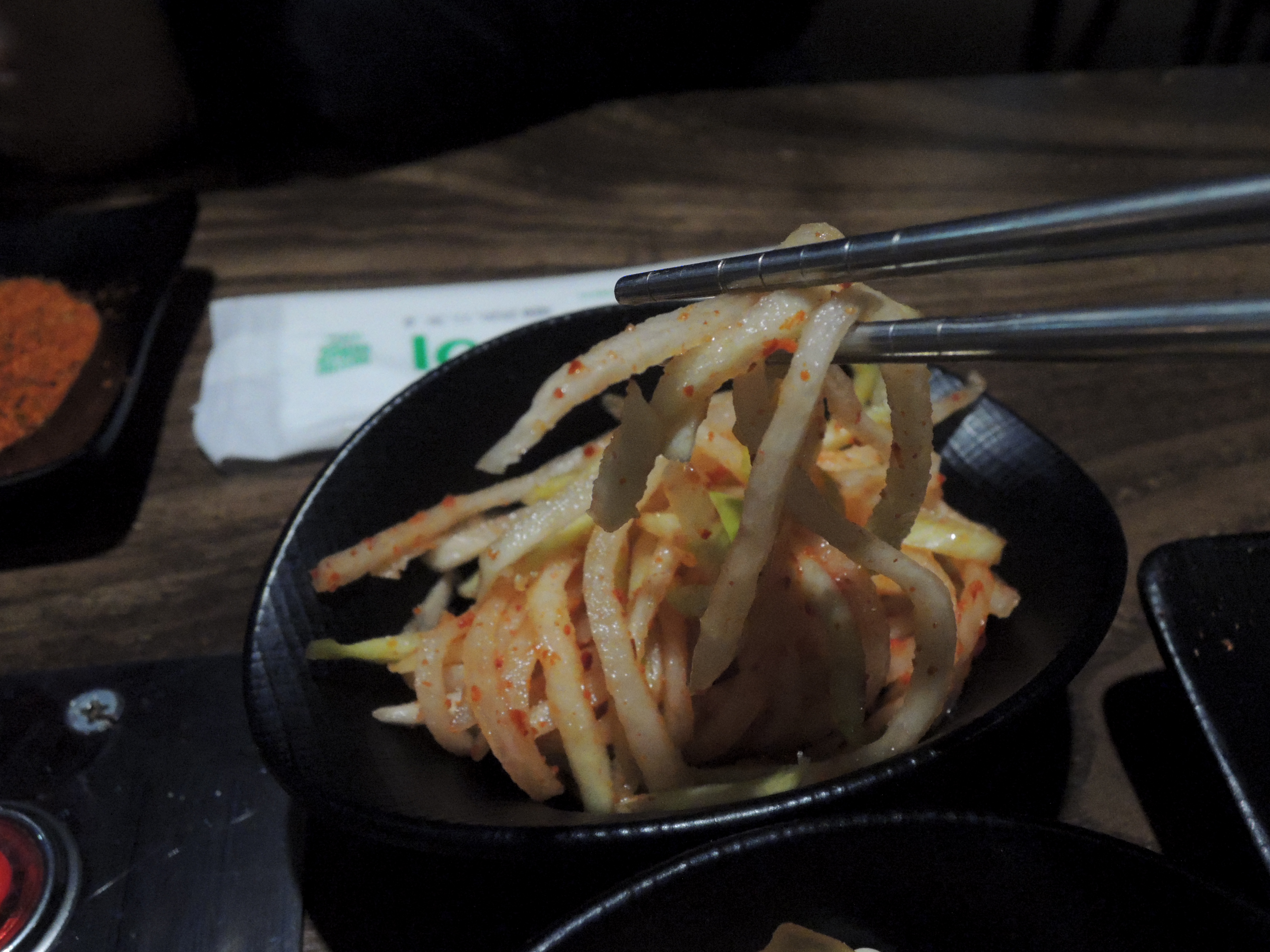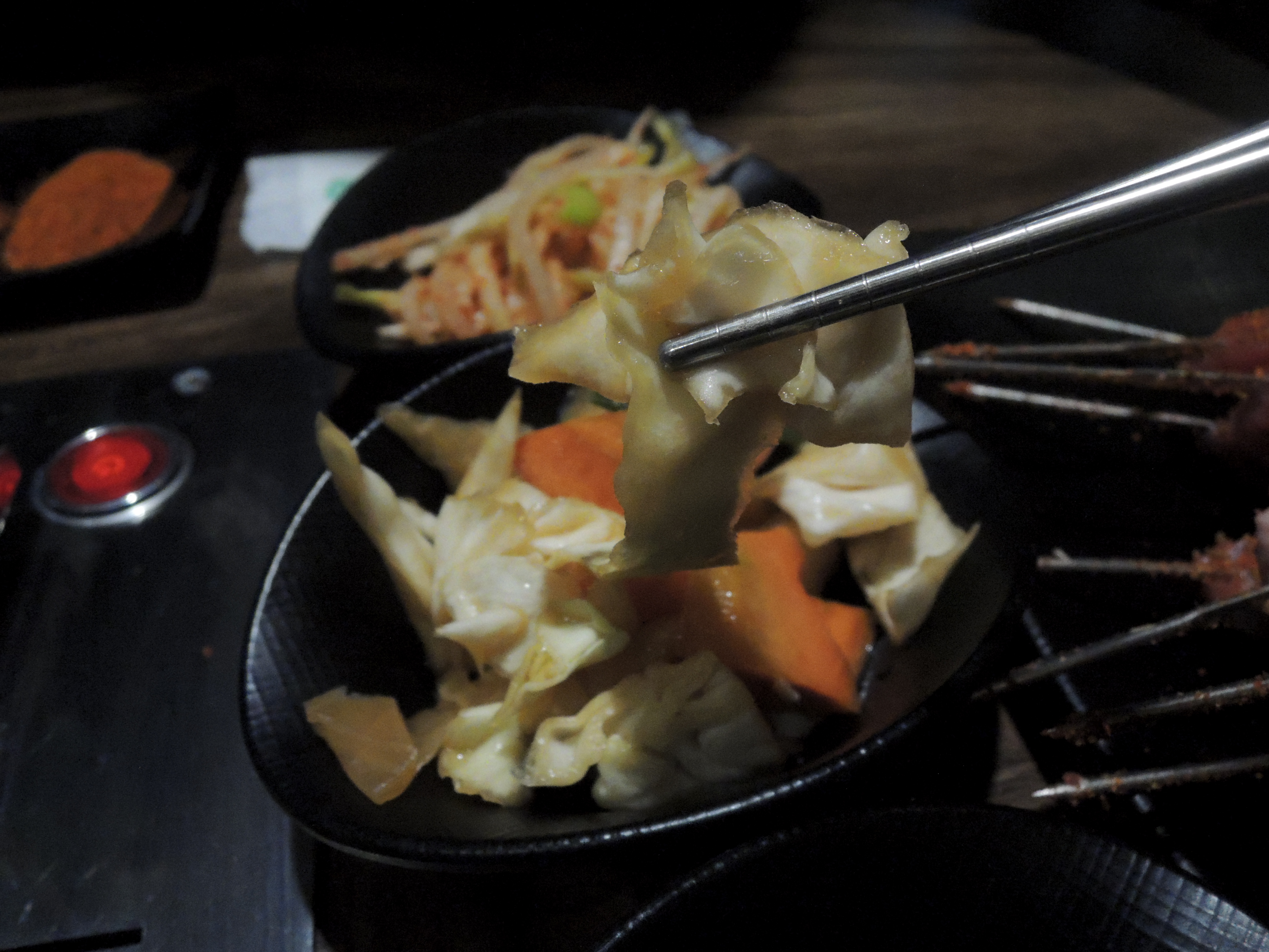 양꼬치외에도 맛있는 기본찬이 3종류 나옵니다.