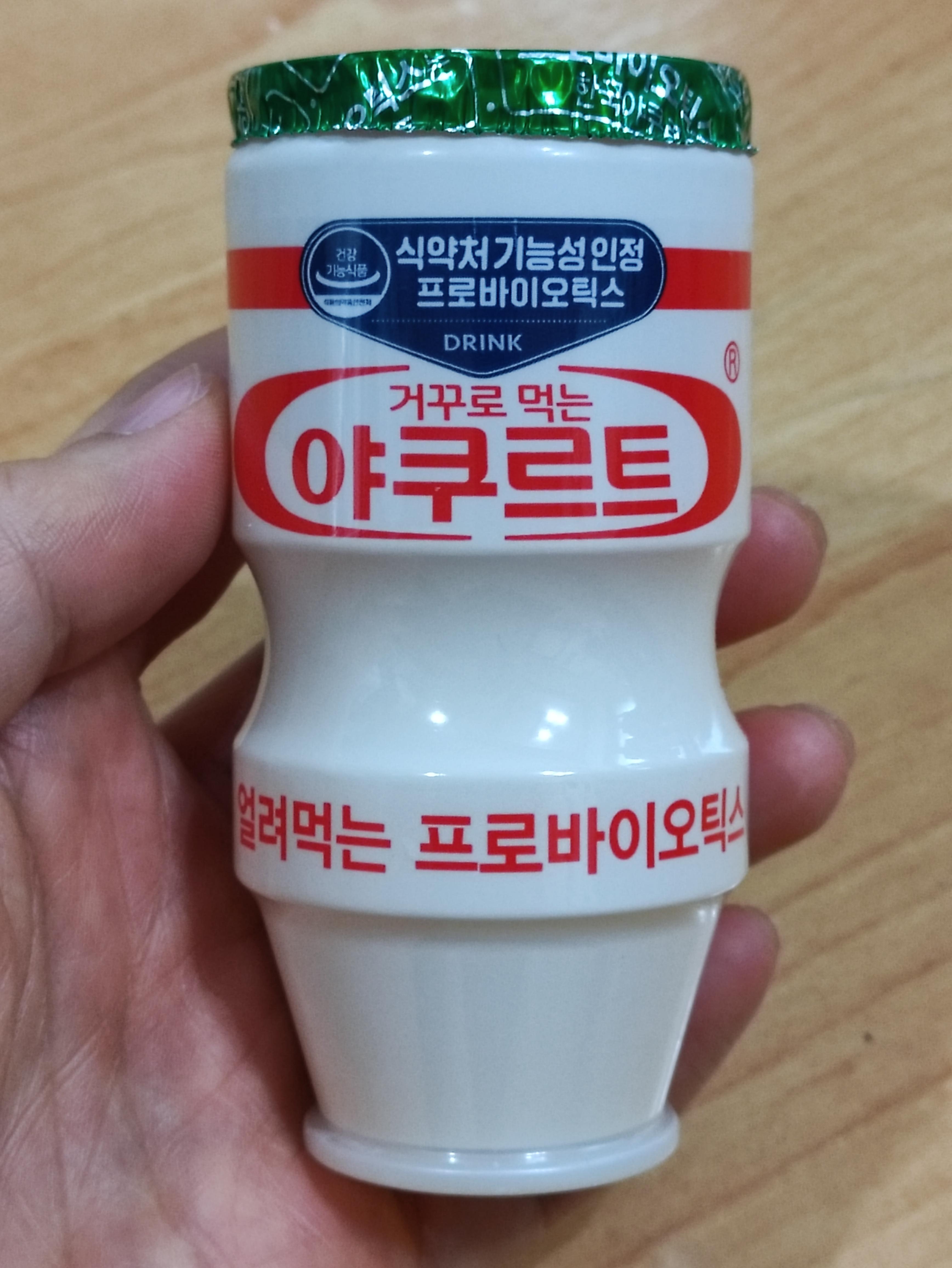 저 어릴때 야쿠르트 바닥을 이빨로 뜯어서 먹곤 했는데 세상에 아예 바닥을 뒤집어 만든 야쿠르트가 있네요.