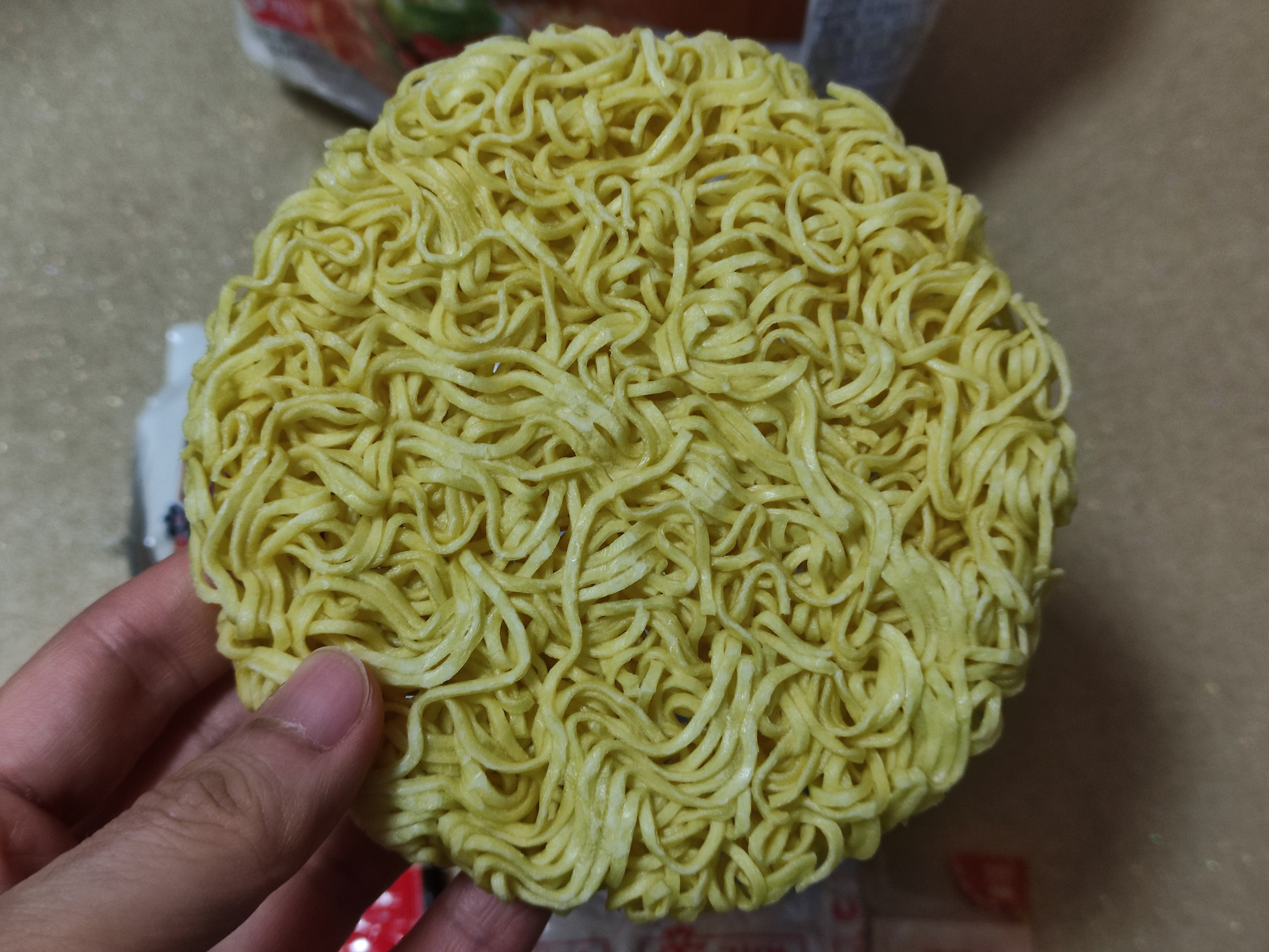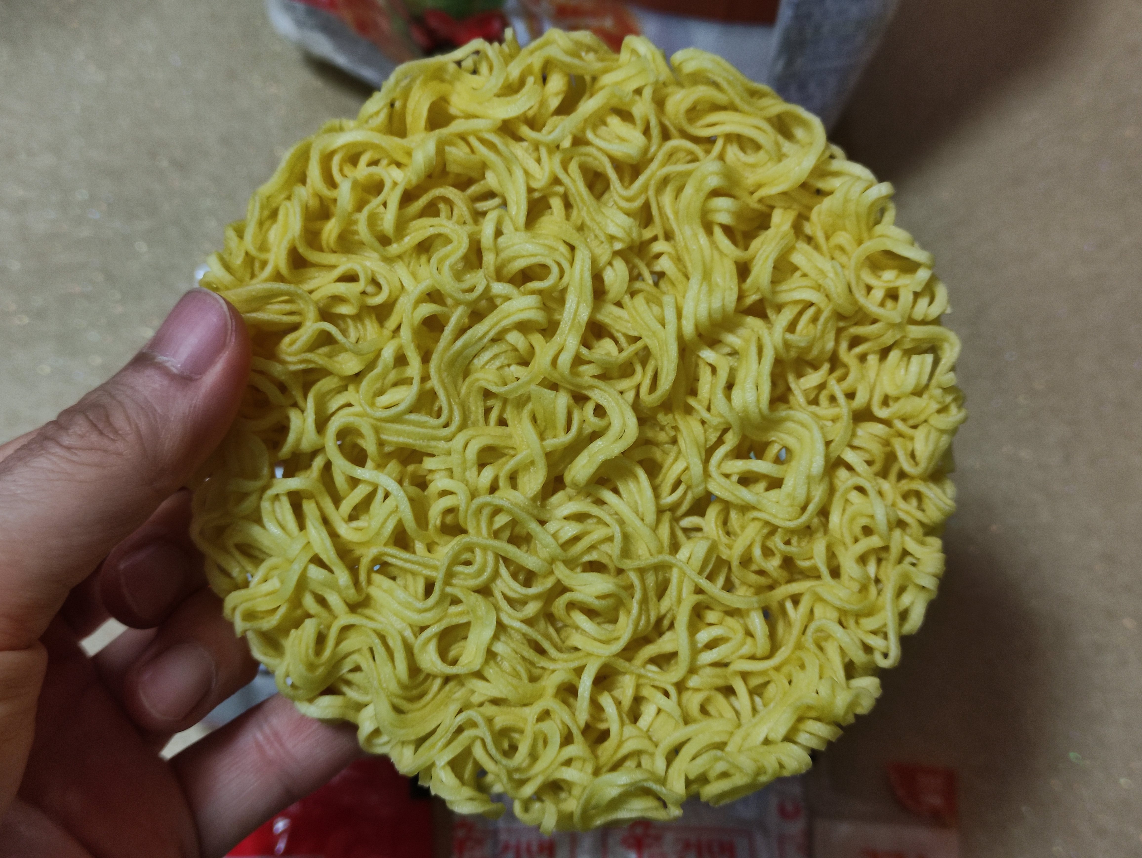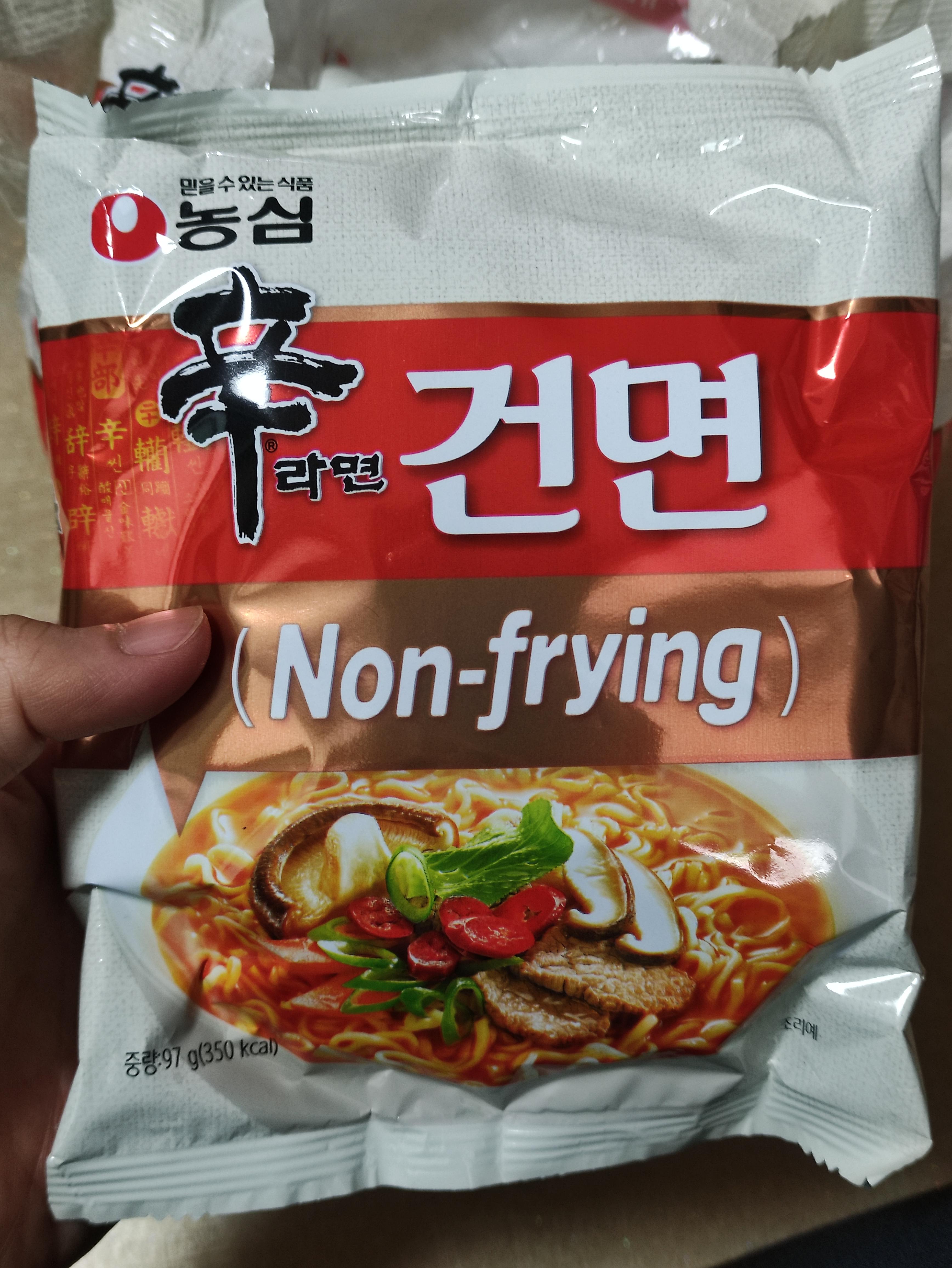 바짝건조시킨 건면에에요. 일반적인 기름에 튀긴면보다 면발이 더 바싹말린느낌이에요.