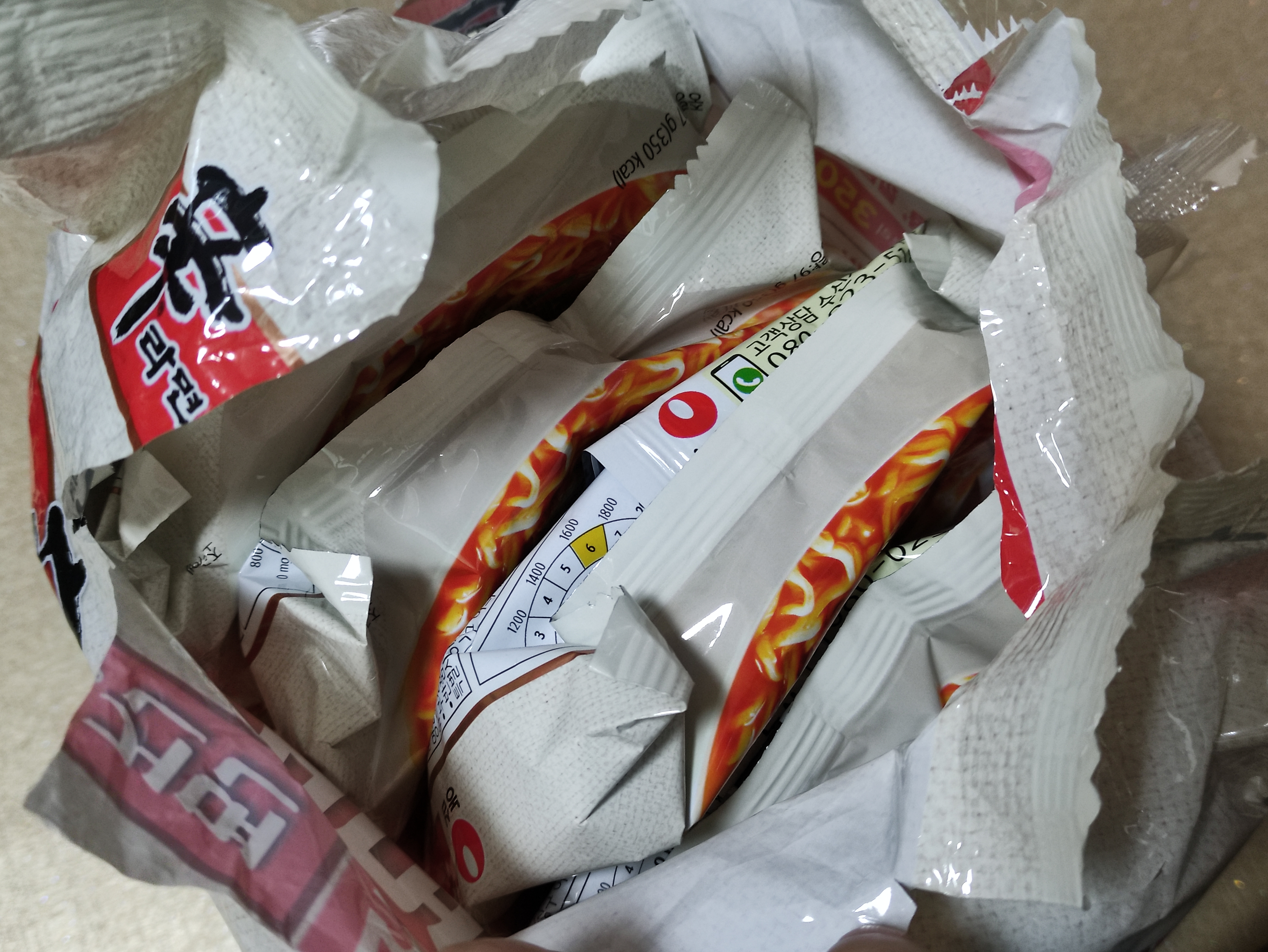 신라면 건면 5개묶음을 구매했어요. 포장지가 일반신라면과 다르게 배경이 흰색이에요. 얼핏보면 안매운맛 신라면느낌일수도 있겠네요.