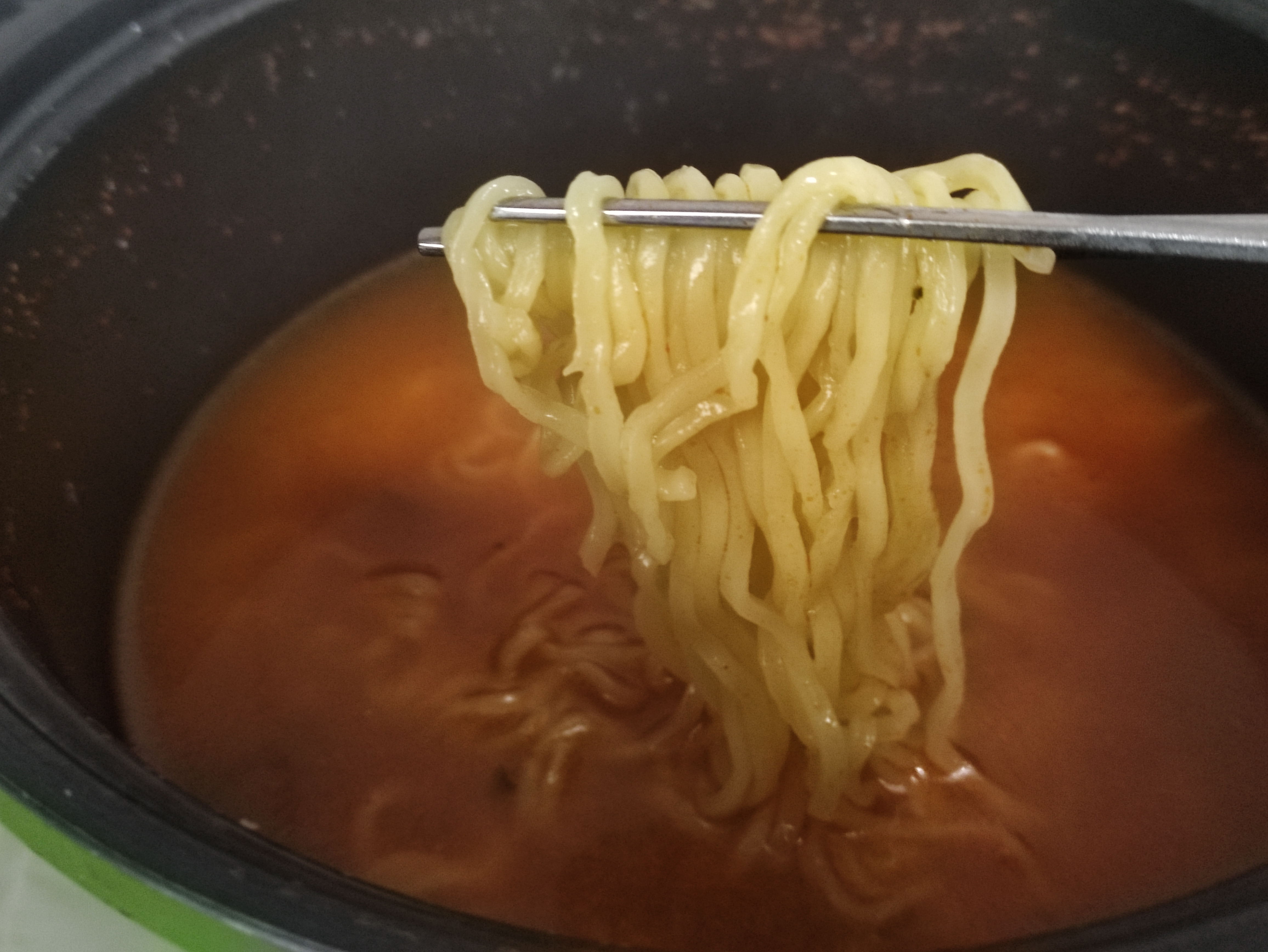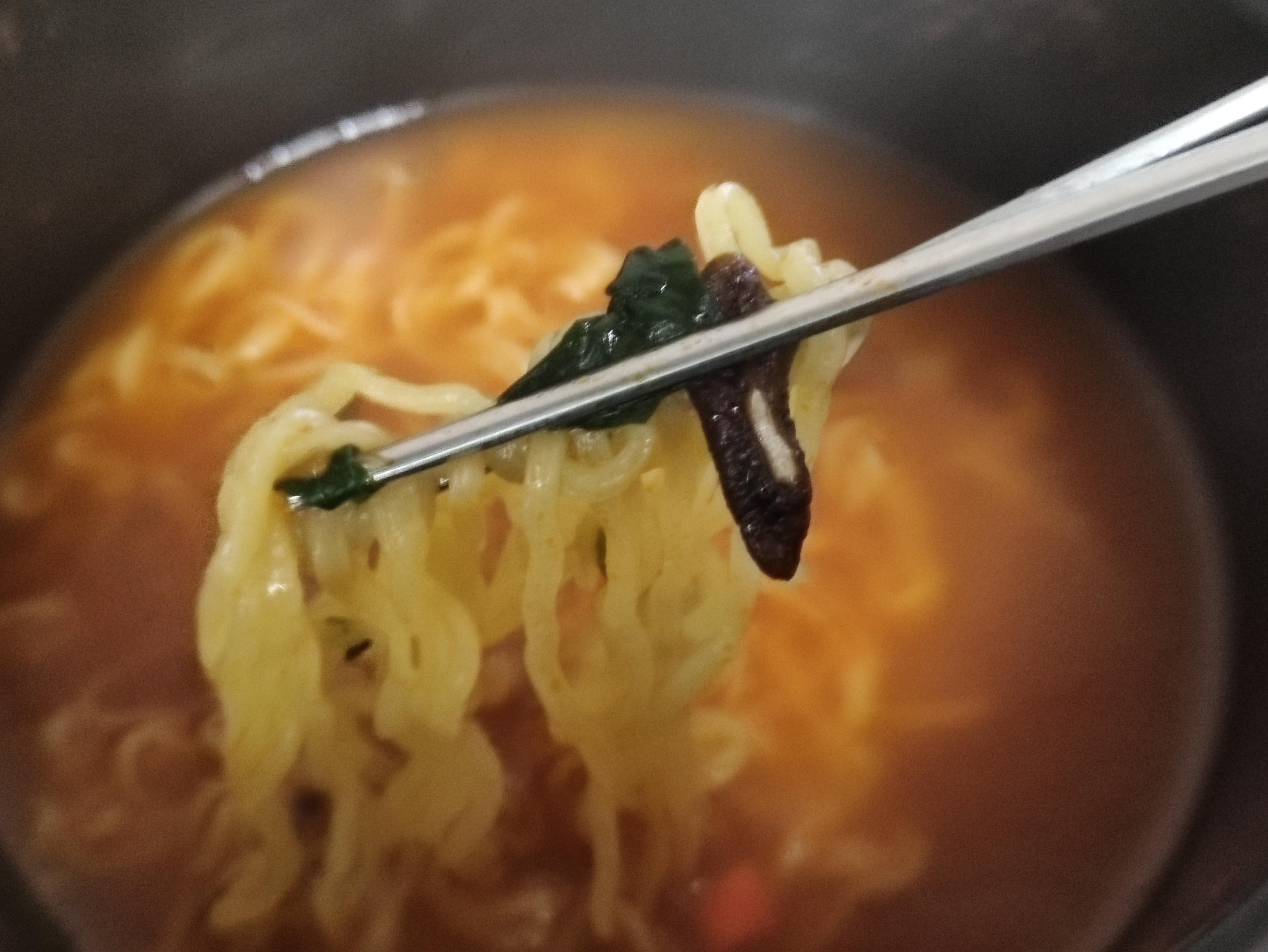 면발은 보통라면보다 살짝 덜 고불고불한데 맛은 깔끔해요. 쫄깃함도 있고요.