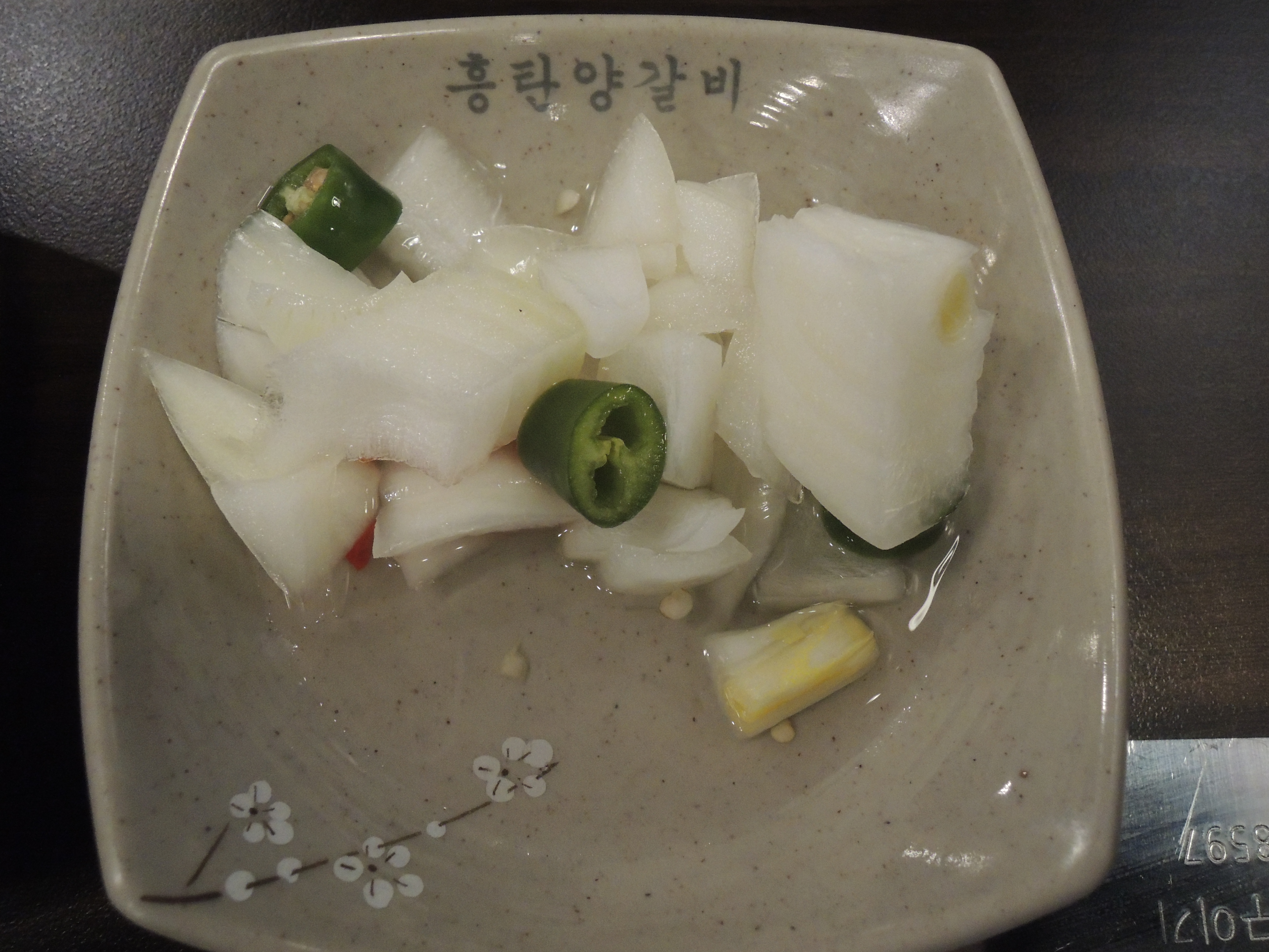 양꼬치를 주문하면 나오는 기본찬이에요.