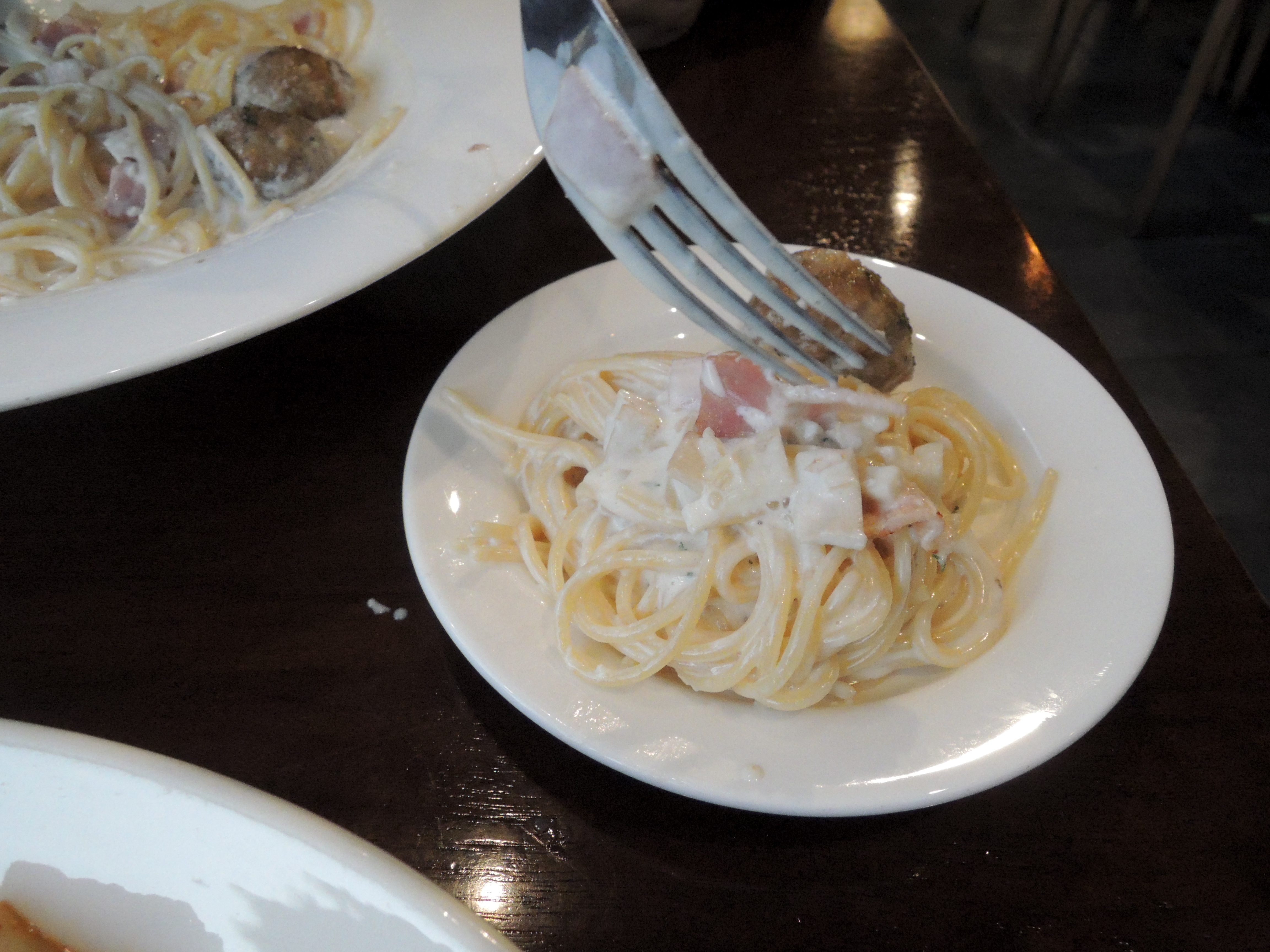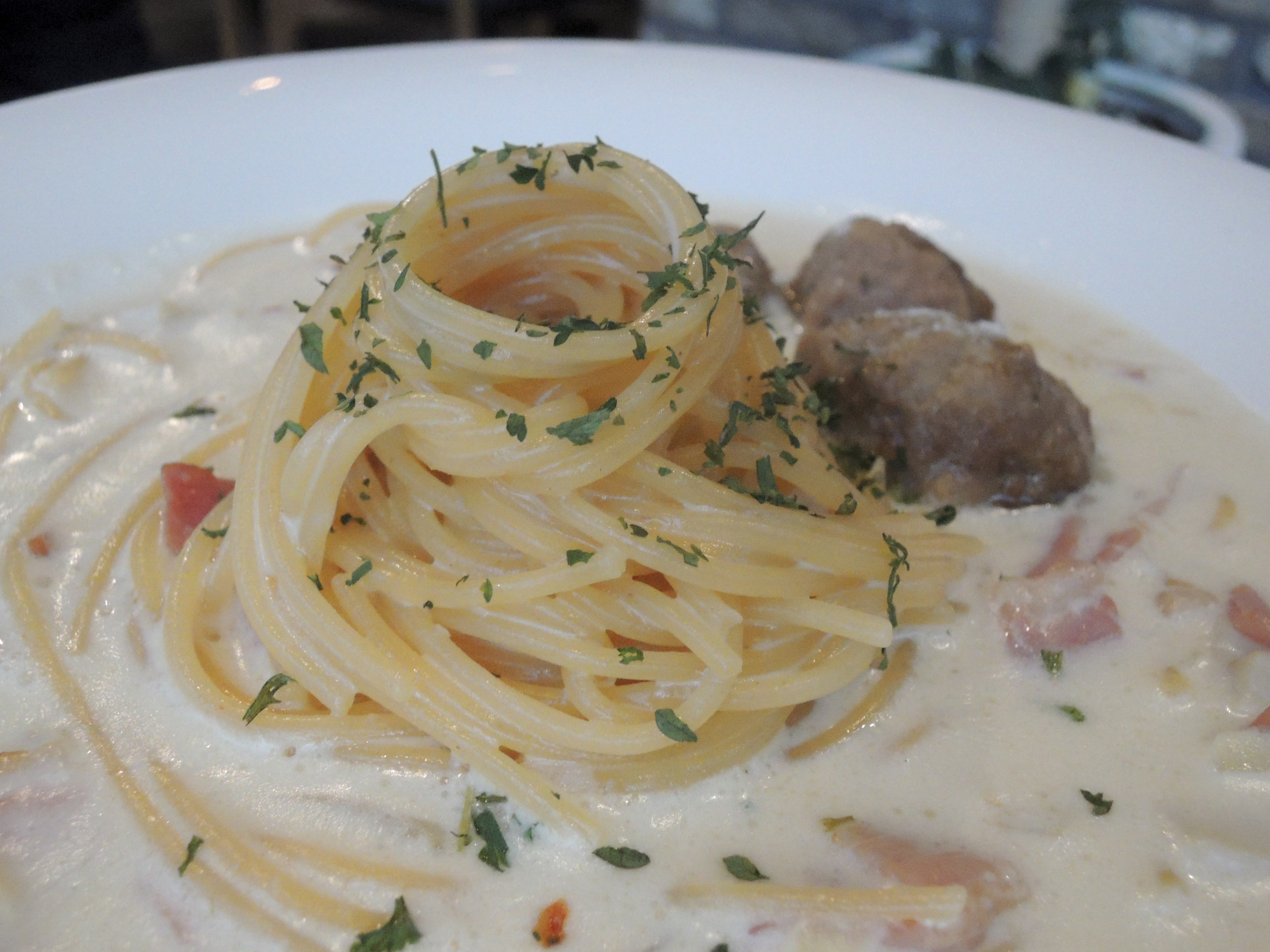 엔초비파스타 짭쪼름하니 맛나고, 샐러드도 넘 신선한데다 소스도 맛있어서 절로 넘어가요. 크리미파스타도 넘 부드럽고 미트볼이 들어있어서 식감이 참 좋았어요.