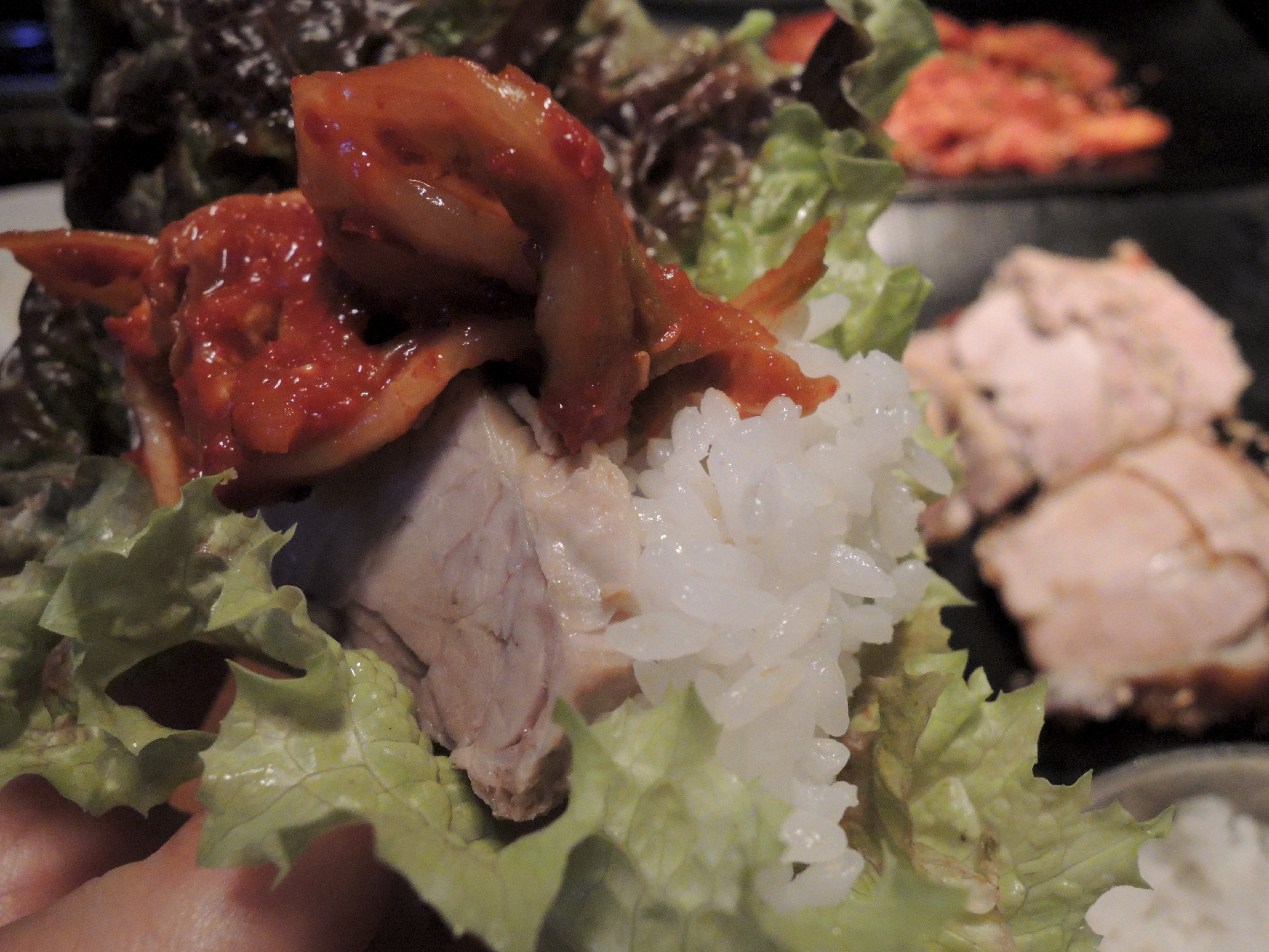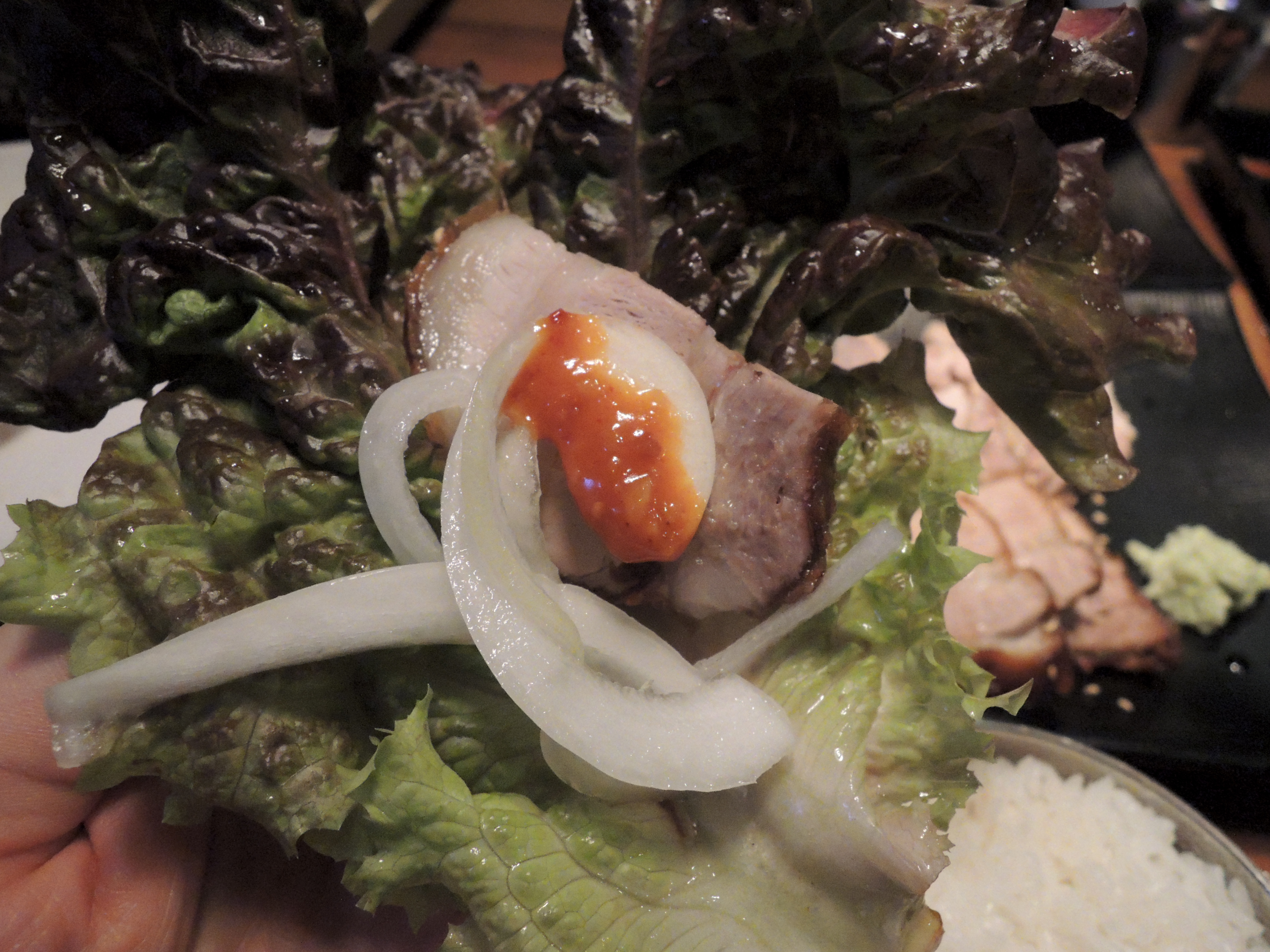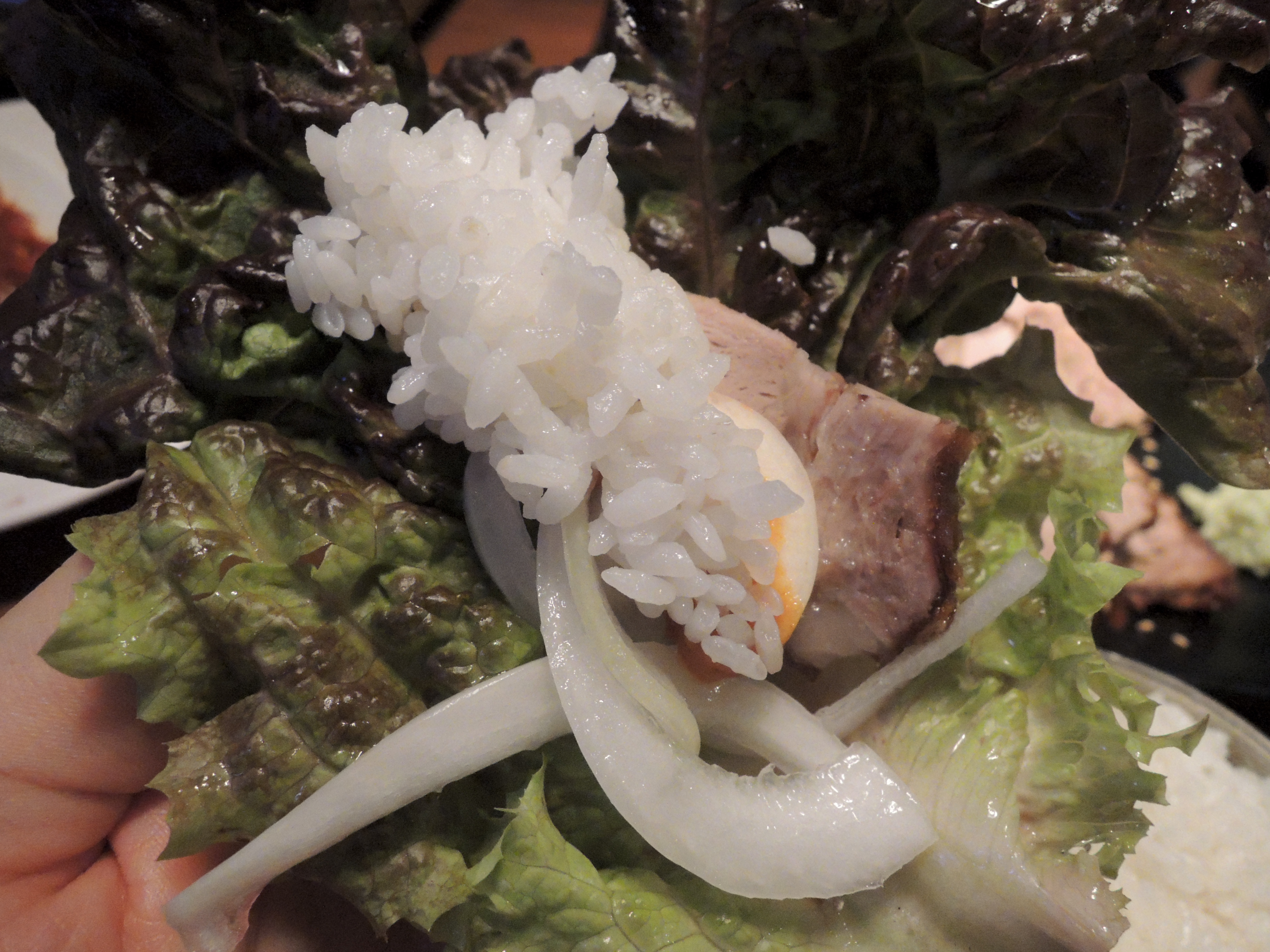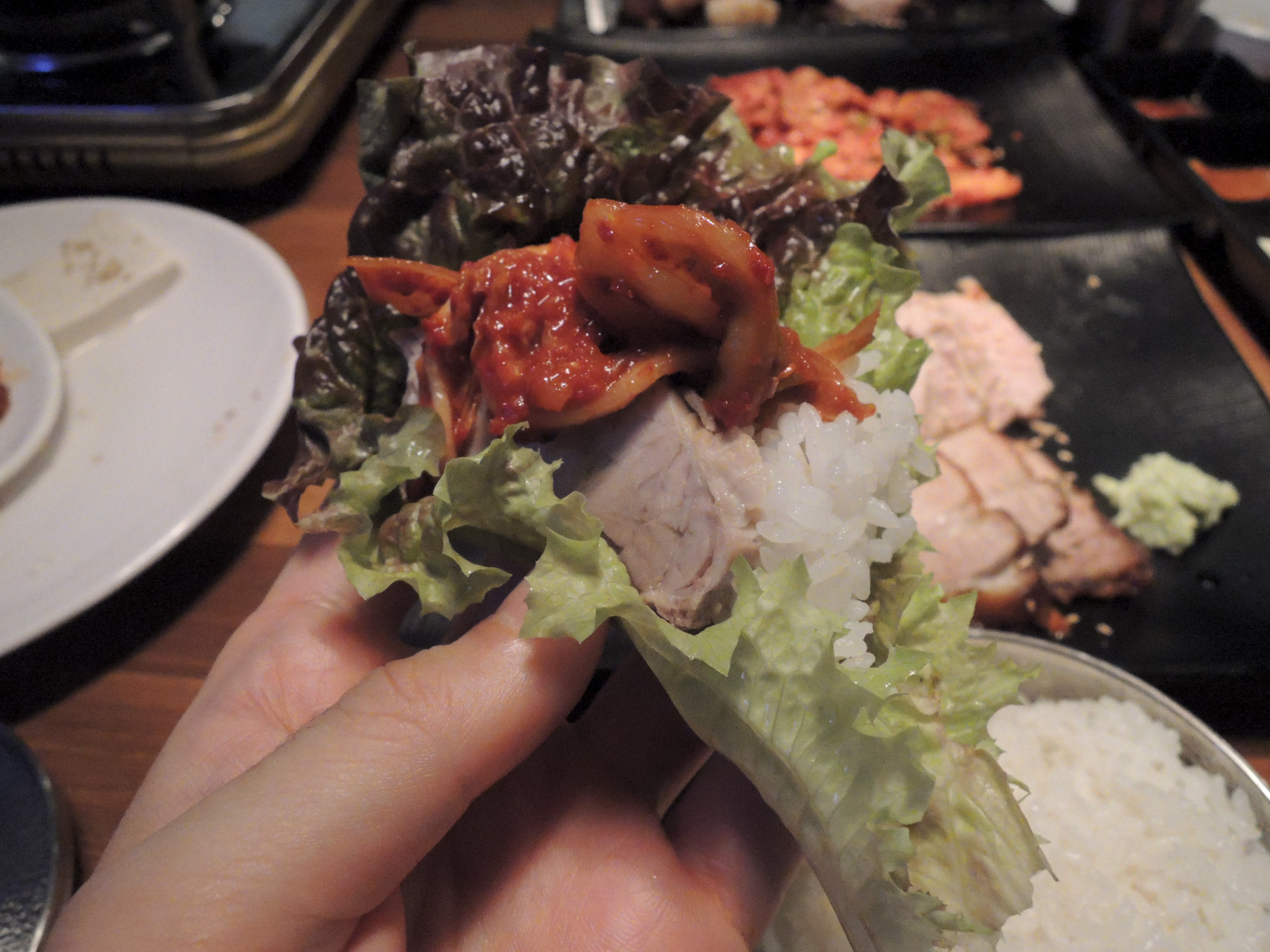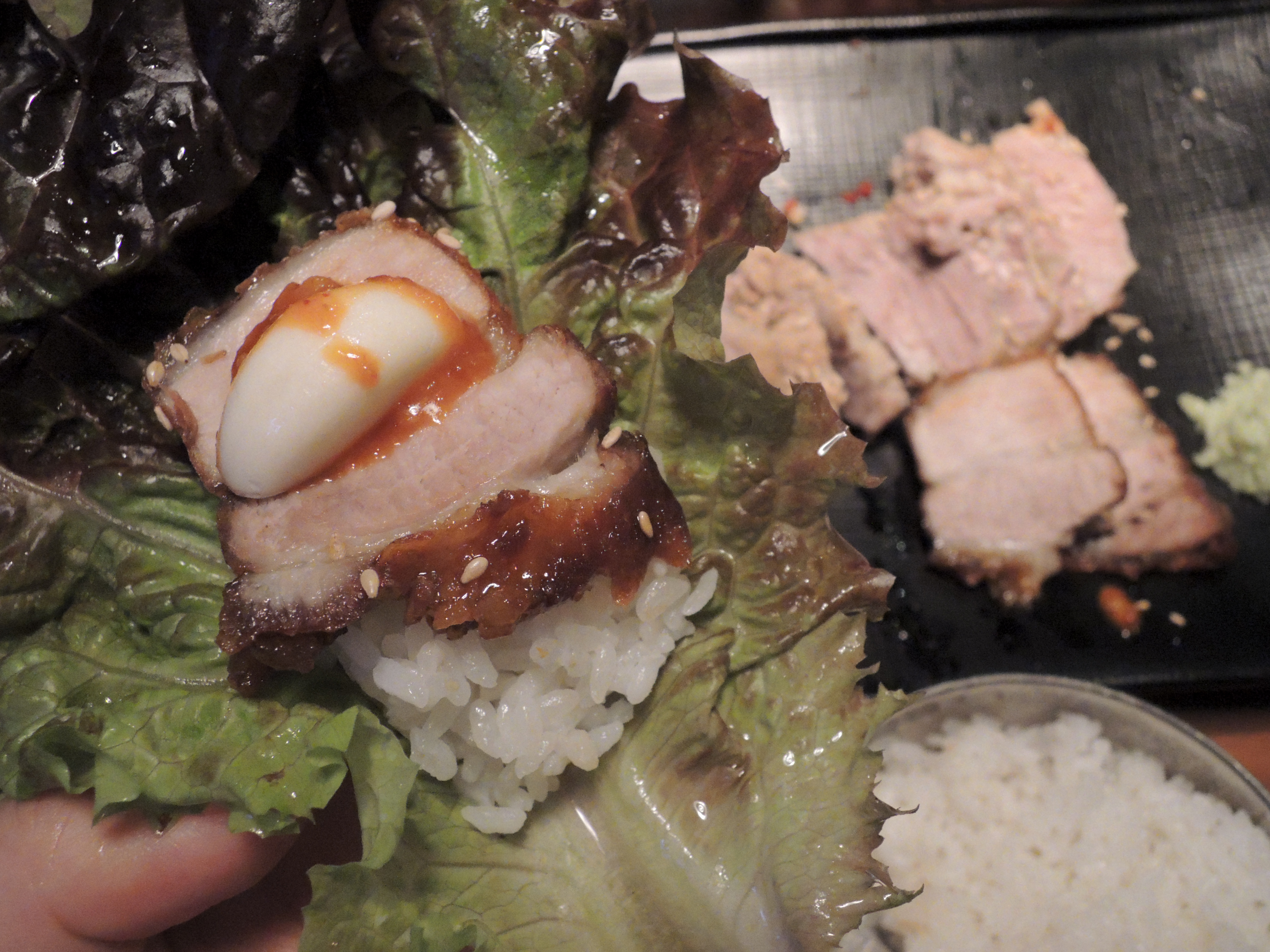 그냥 고기만 싸먹는것과 밥을 넣는것은 약간의 차이가 있지요. ㅎㅎ