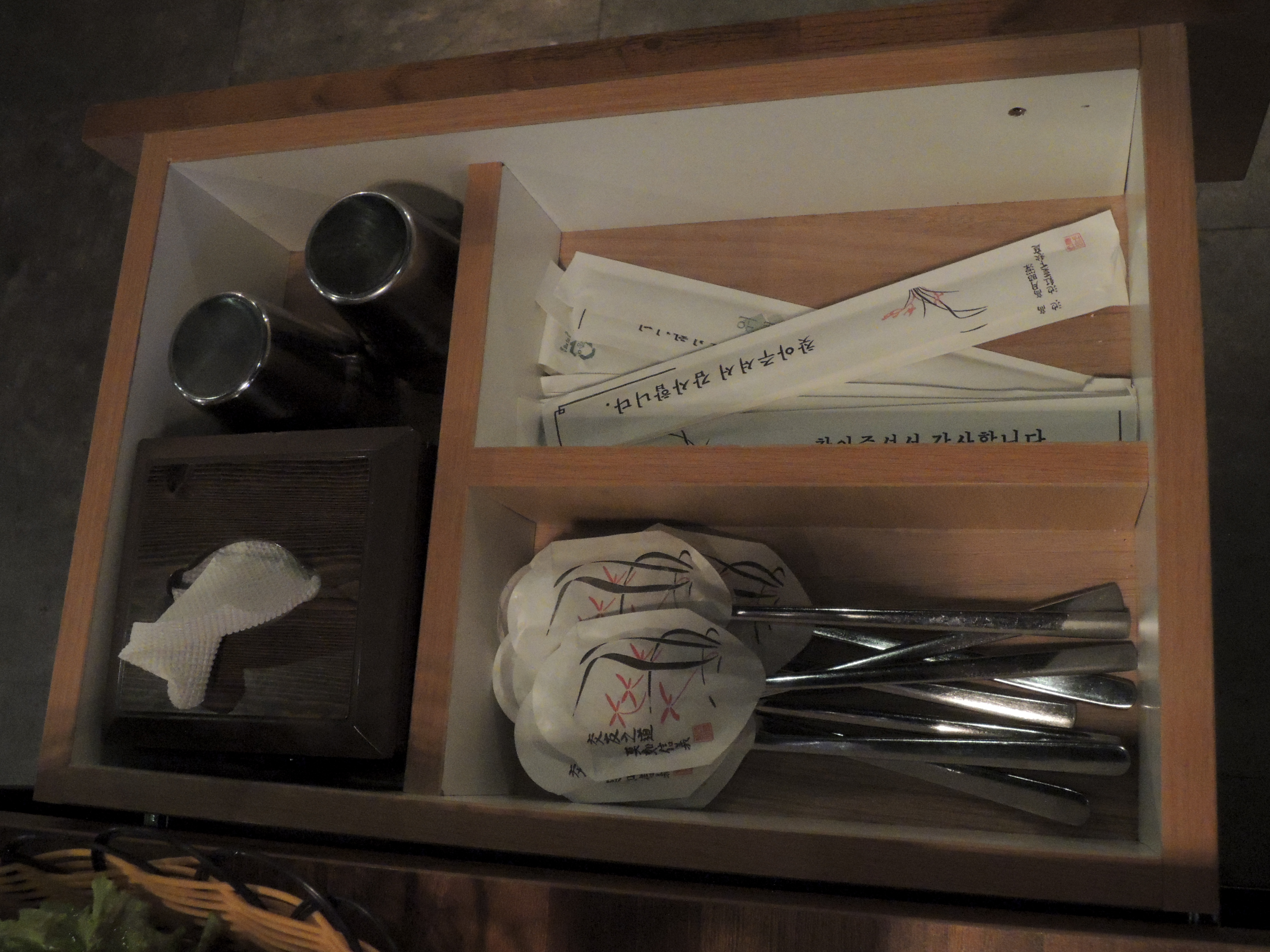 수저함은 테이블 측면에 위치해 있어요.