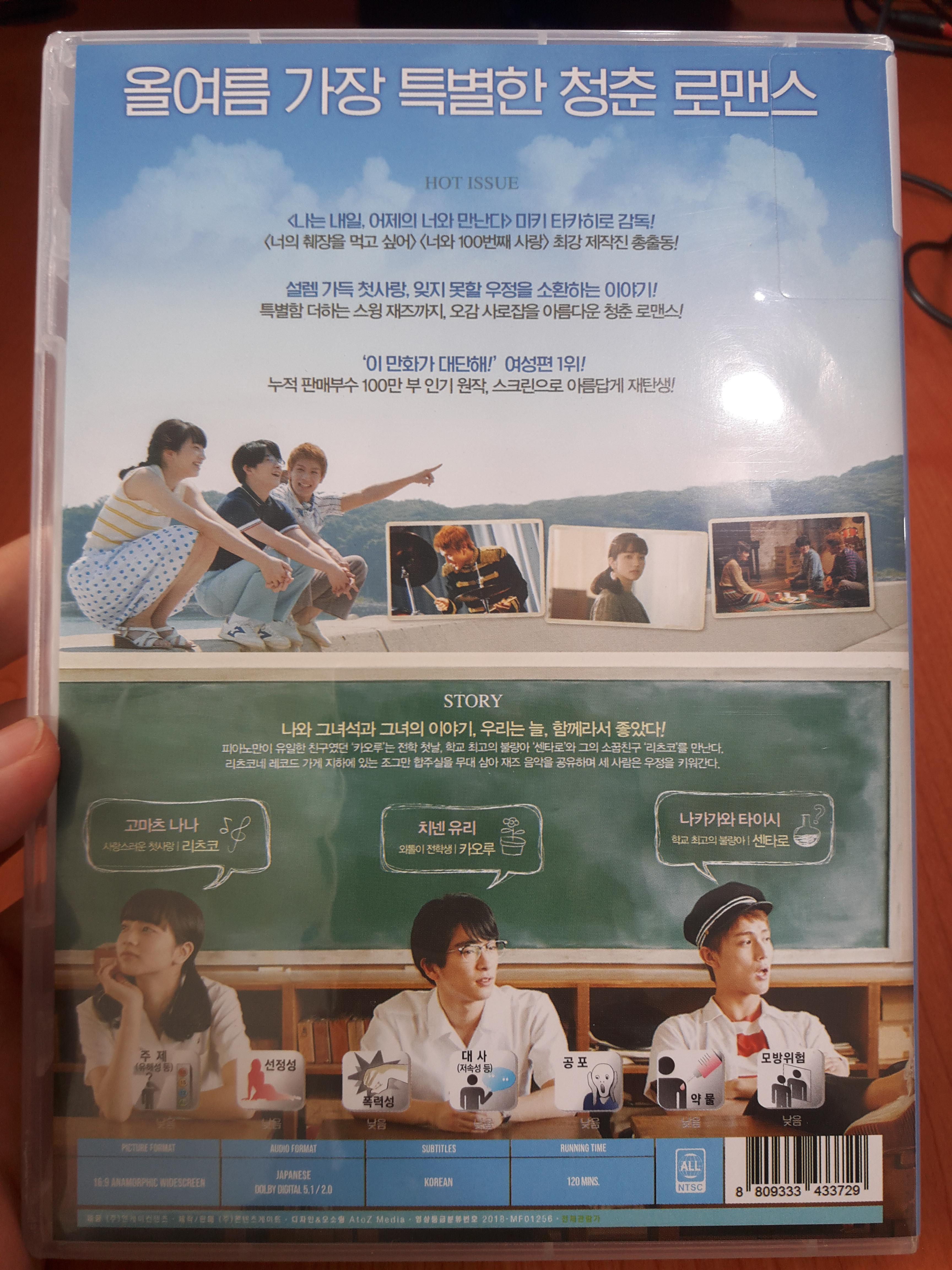 DVD로 시청했어요. 러닝타임은 120분정도, 청소년 우정 이야기에요. 누적 판매부수 100만부의 인기만화를 영화화 했나봐요.