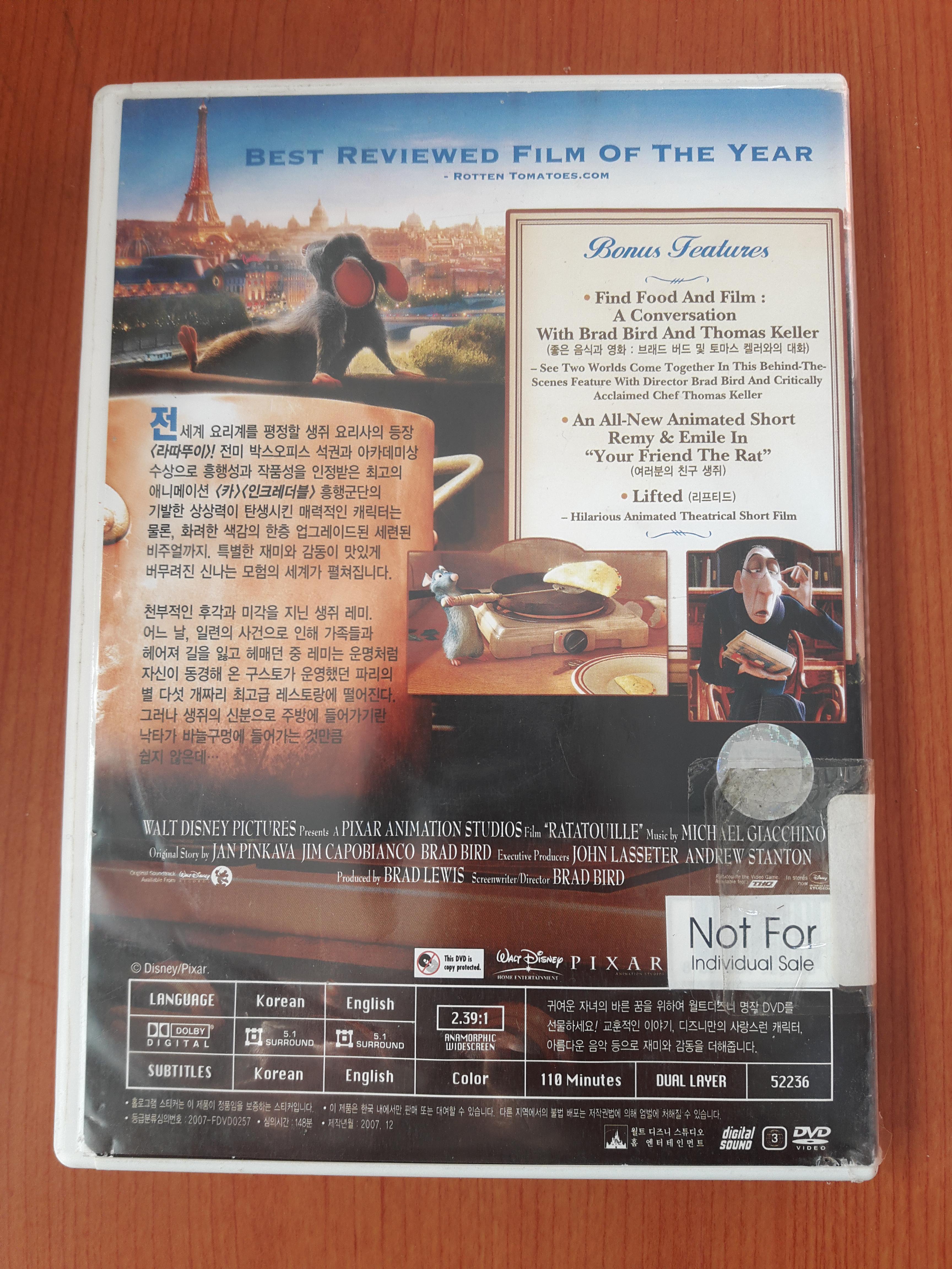 DVD에 보너스 영상으로, 좋은 음식과 영화, 그리고 여러분의 친구 생쥐라는 영상이 포함되어 있어요.