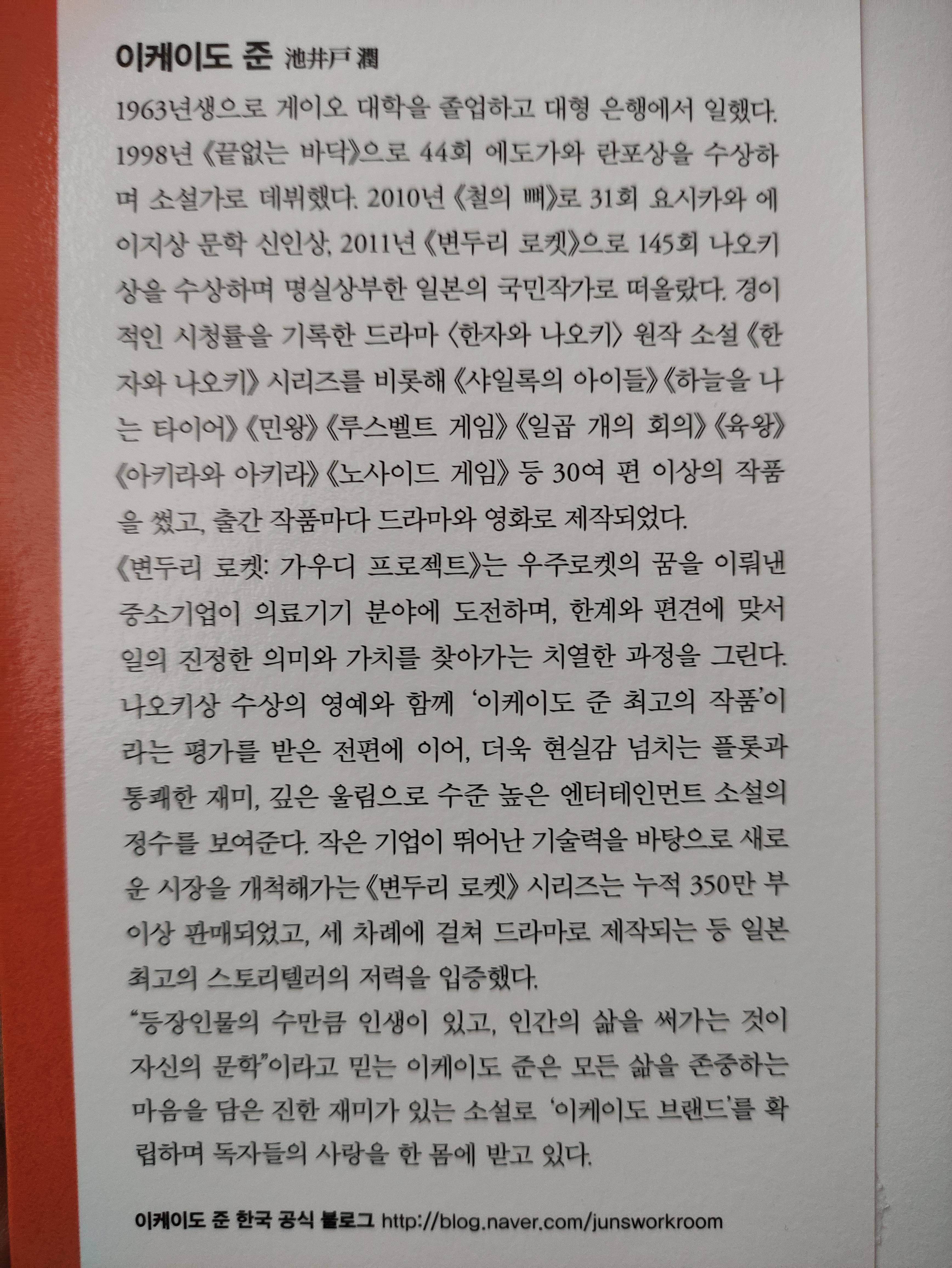 변두리로켓 가우디 프로젝트는, 나오키상 수상작인 이케이도준이 쓴 변두리로켓의 후속작입니다.