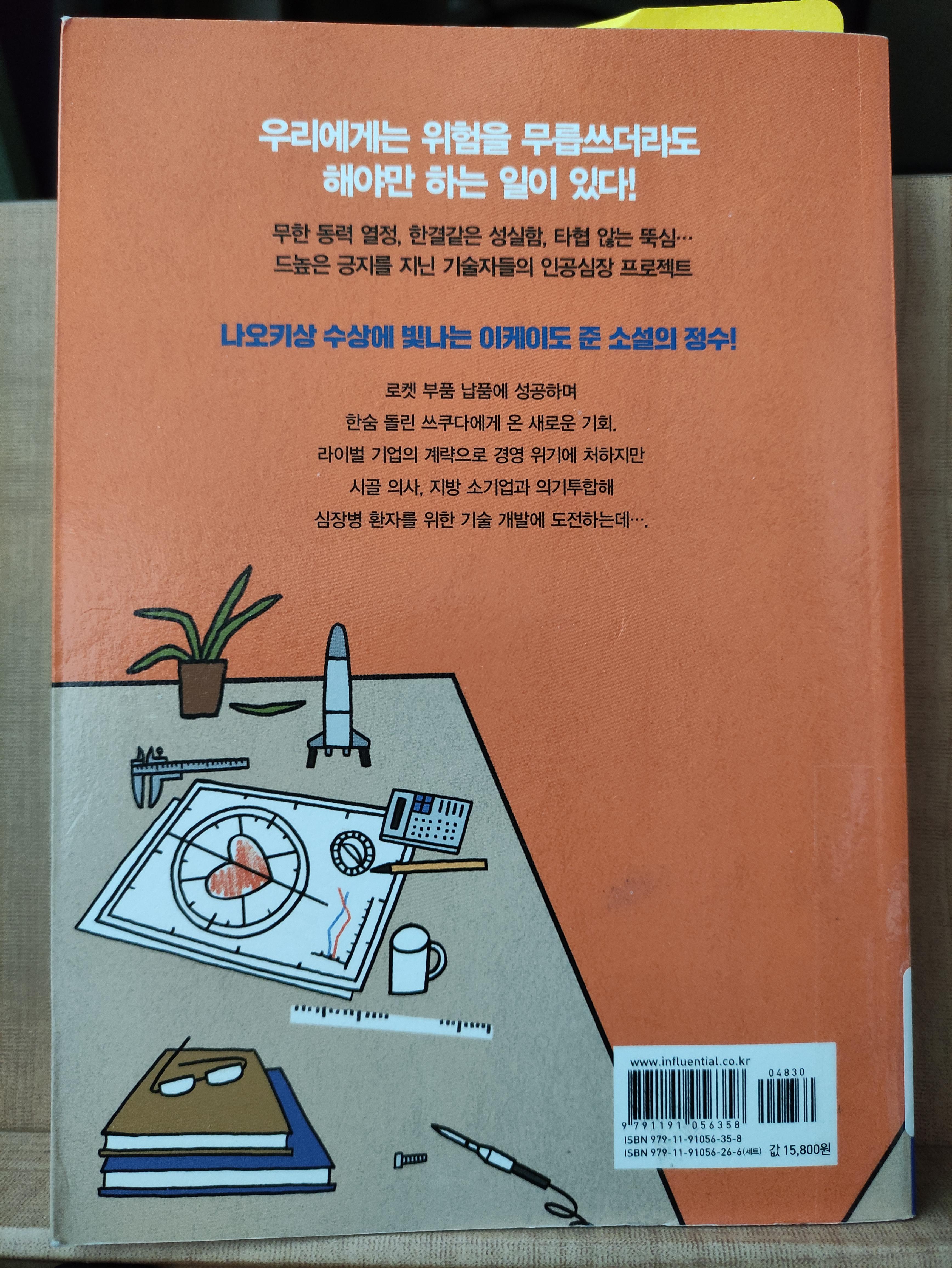 전작과 비슷하게 왜 이 일을 해야하는가에 대한 동기, 그리고 직장인이 가져야할 덕목등에 대해 책을 통해서 자연스레 느끼게되는점이 있어서 개인적으로 참 재밌고 교훈으로 남는게 많은 소설입니다. 모진고난과 암투속에서 원칙과 신뢰를 앞세워 이겨내는 쓰쿠다제작소의 의지를 볼 수있습니다. 1편못지않게 재밌었습니다. 좋은소설 추천해요.