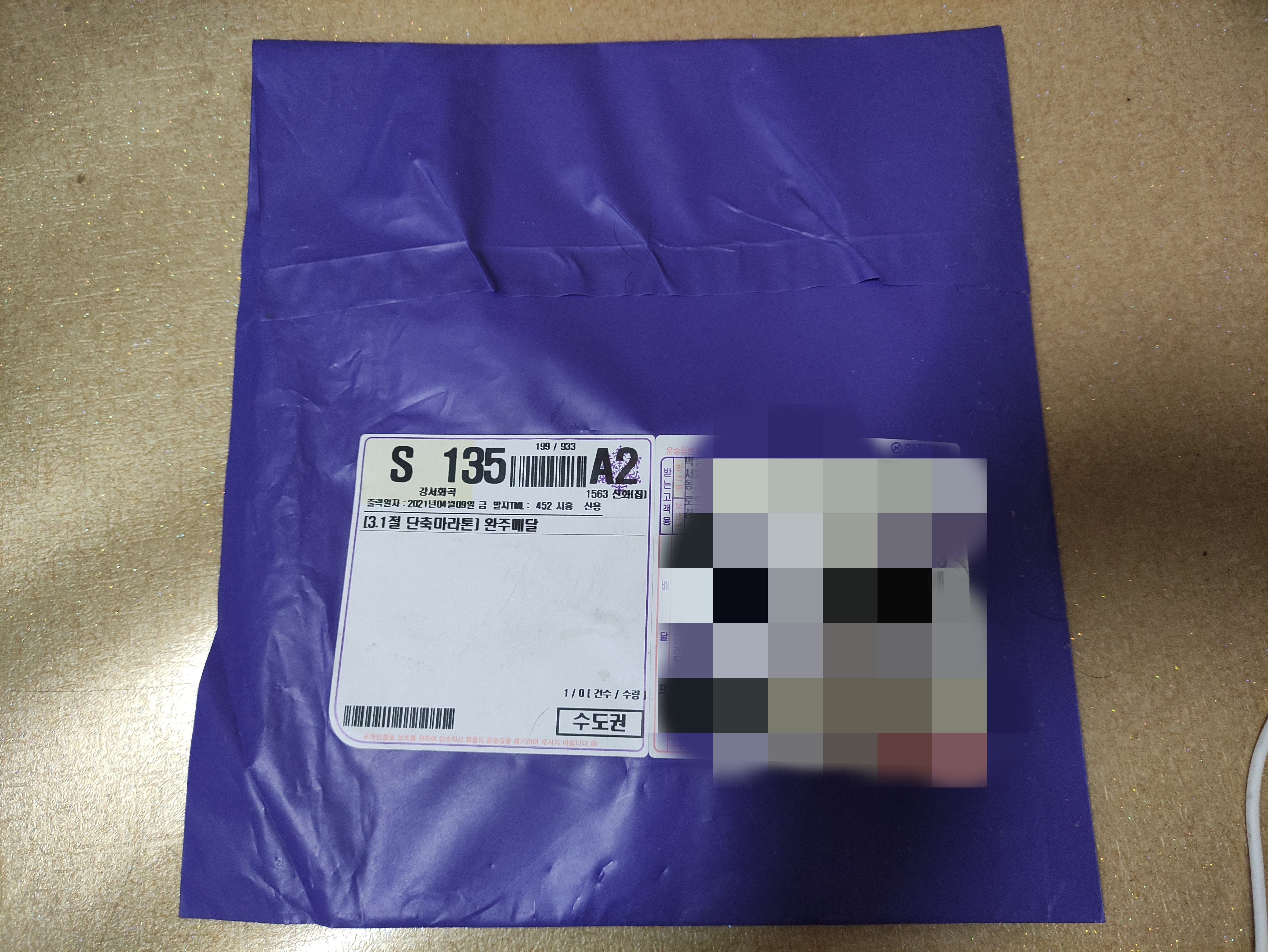 완주하고 잠시잊고 있었는데 어느날 우편이 와서 보니 완주메달이네요.