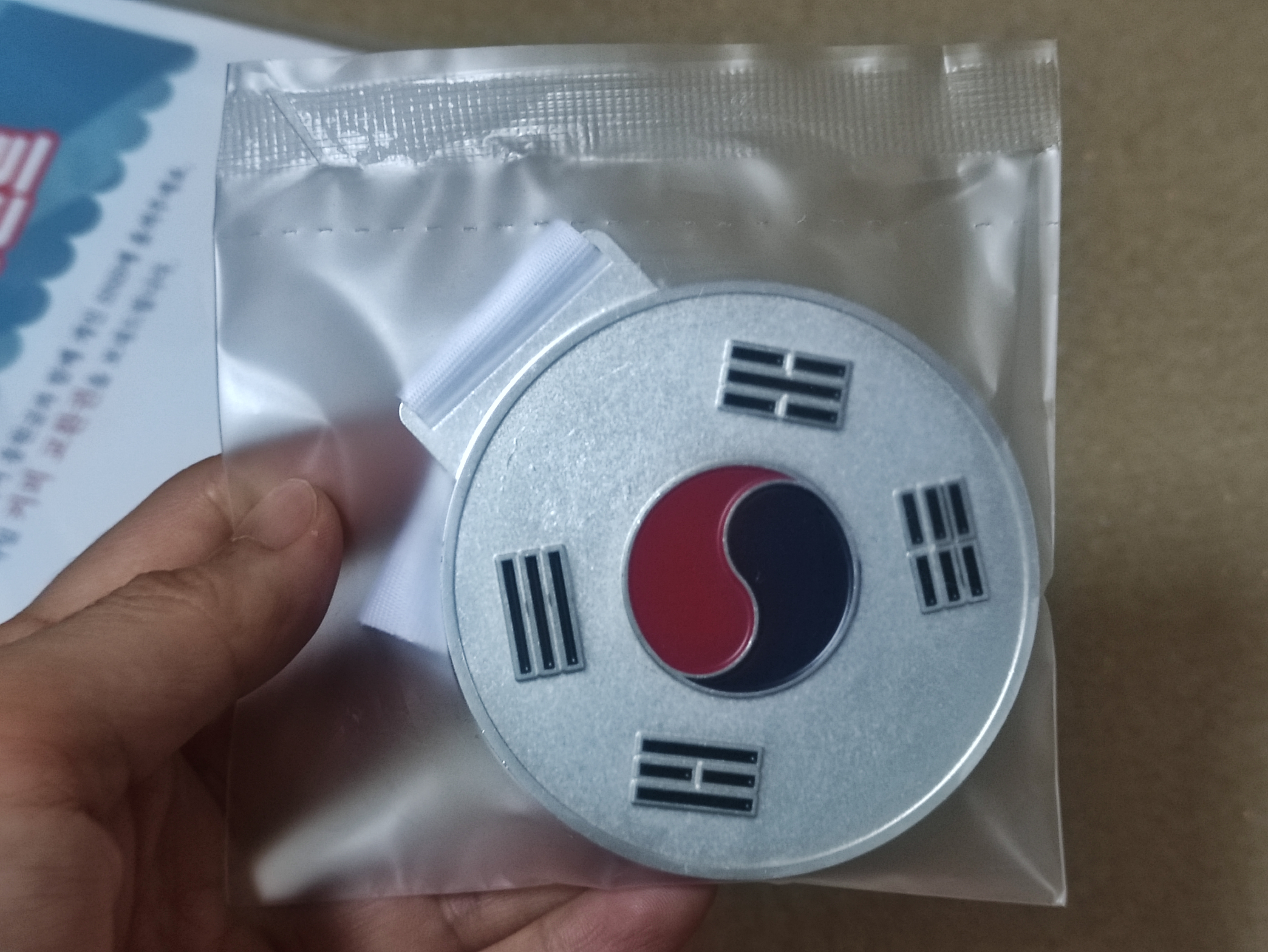 앞면은 피니셔 글자가 쓰여있고 뒷면은 태극기모양입니다. 메달 이쁘네요.