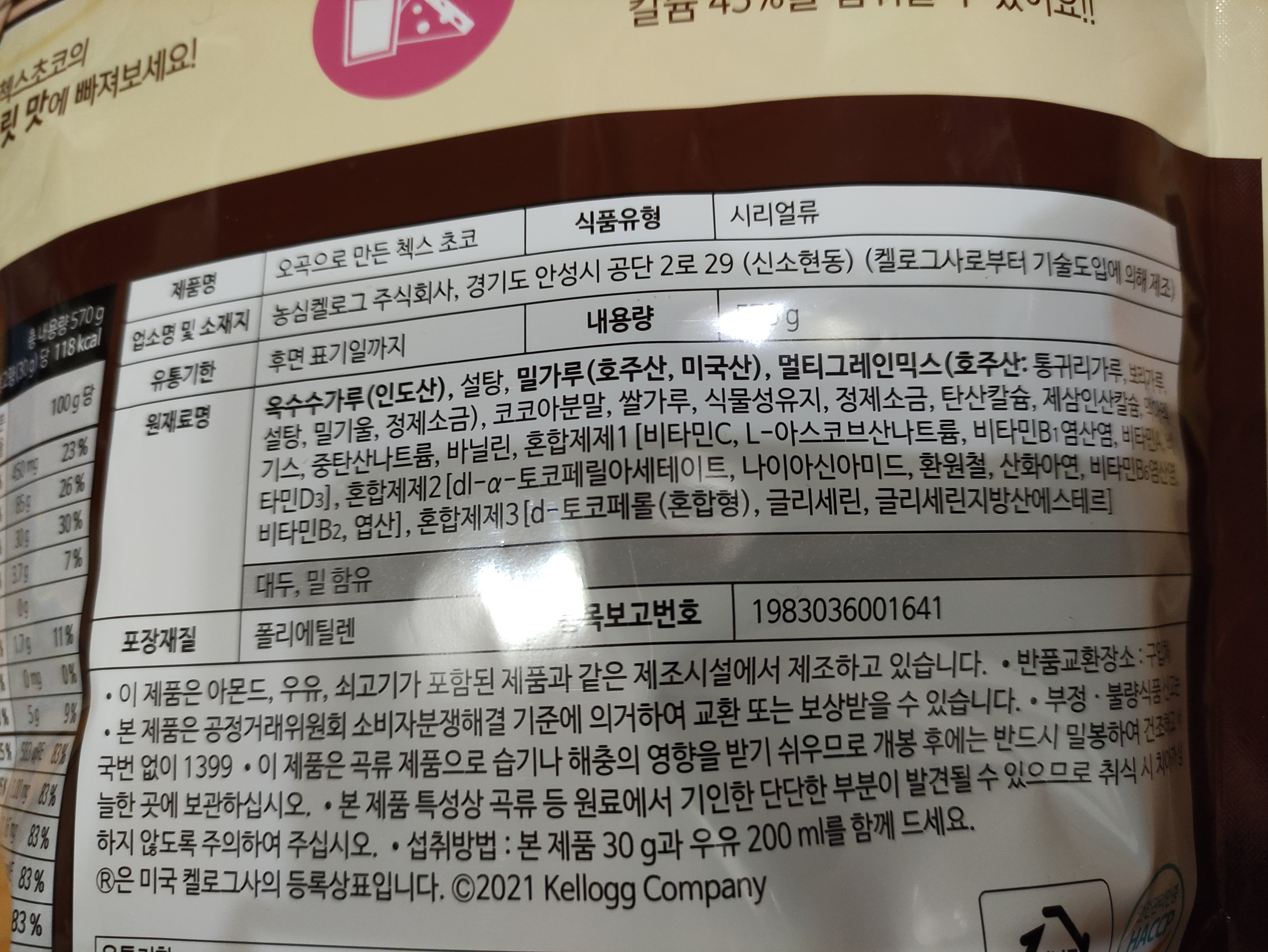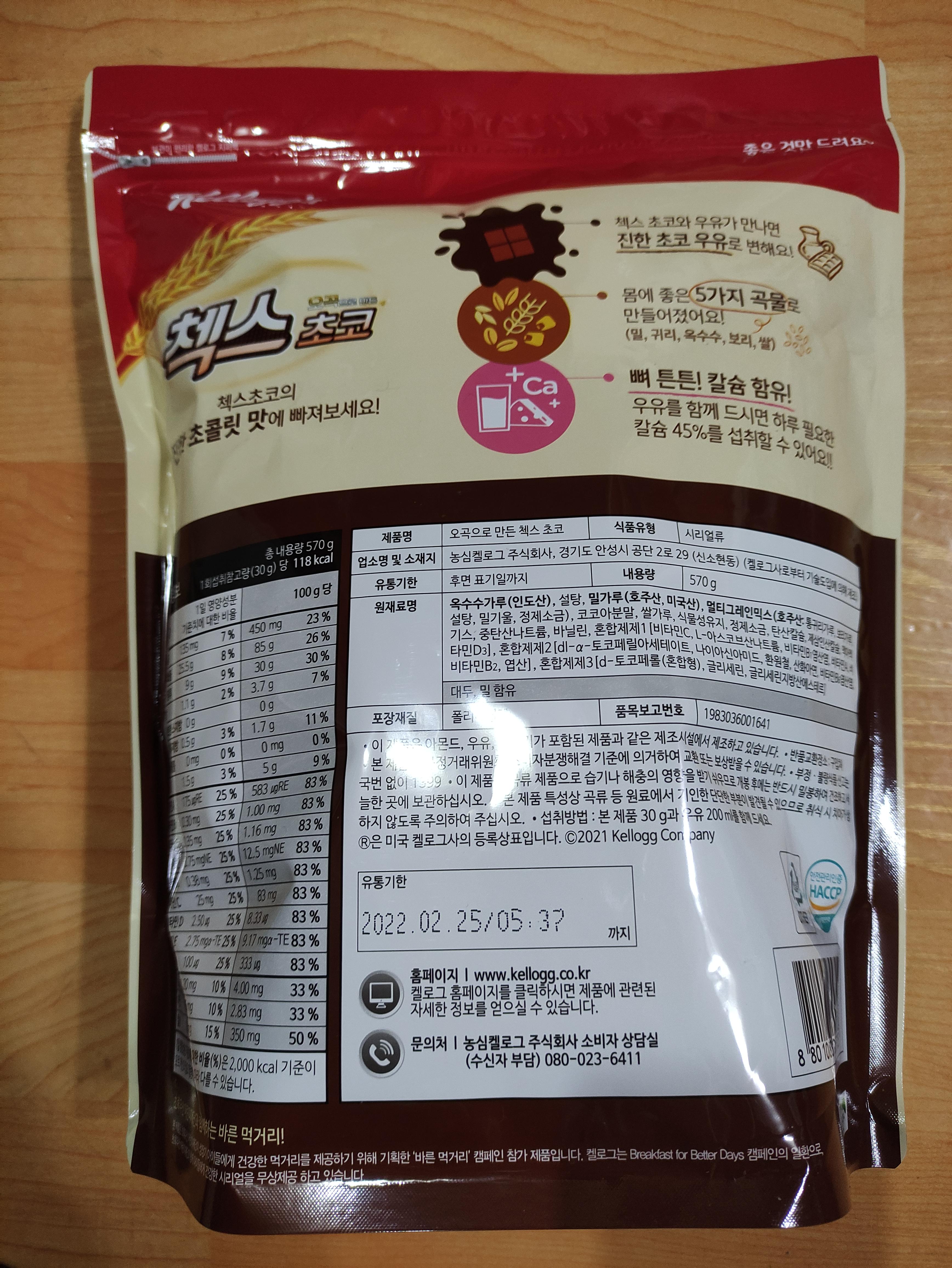 총내용량은 570g이에요. 여담이지만 라이벌제품인 포스트 코코볼이 570g으로 나와요. 누가 먼저인진몰라도 용량이 같은게 우연은 아닐거란 생각이 드네요.