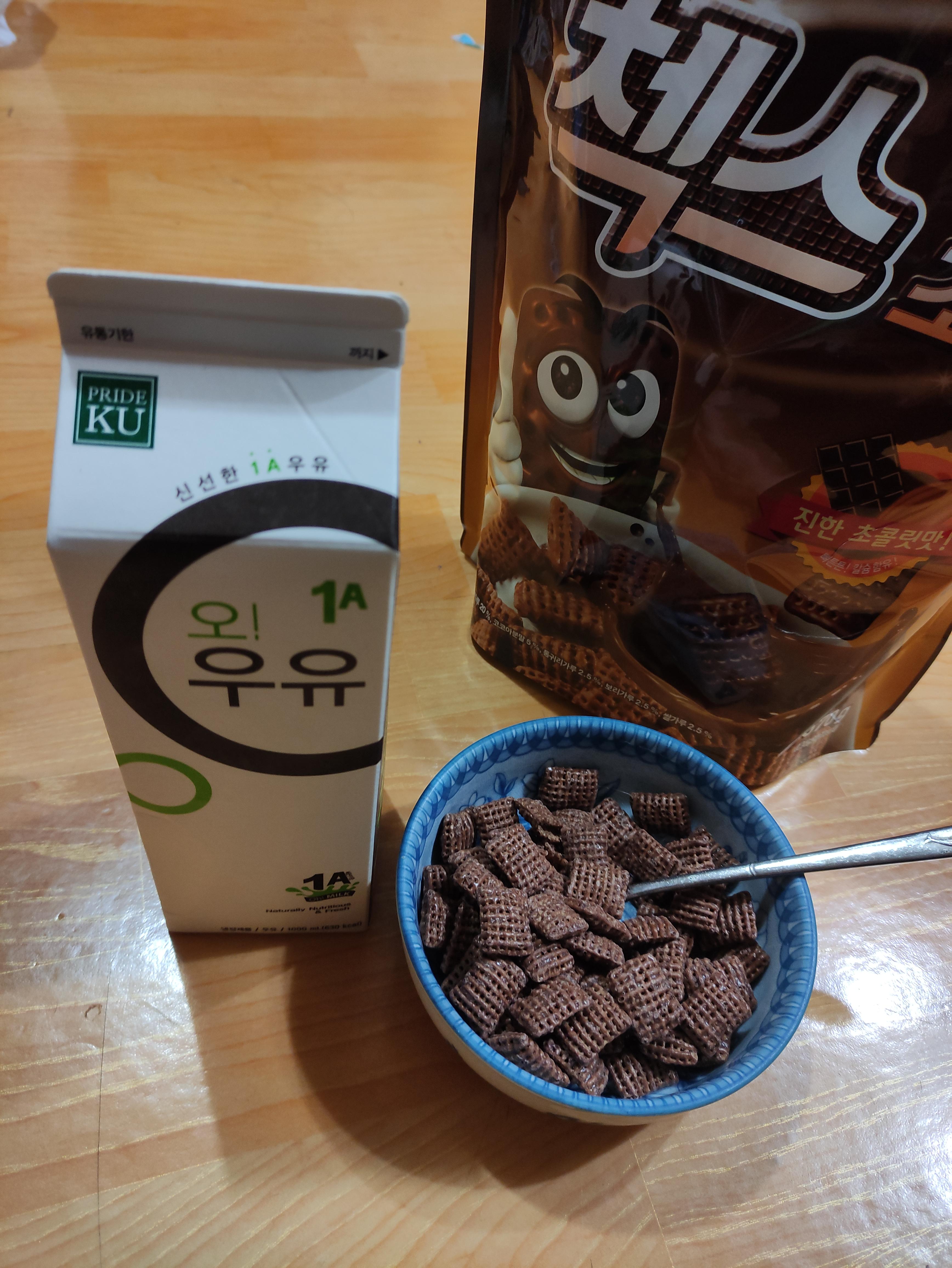 맛있게 시리얼을 건져 먹다보면 어느새 우유가 점점 초코색이 됩니다. ㅎㅎ 첵스 씹히는 식감도 좋고 맛도 좋네요. 가끔 마트에서 할인해줘서 종종 사먹고 있습니다. 맛있게 든든하게 잘 먹었습니다.