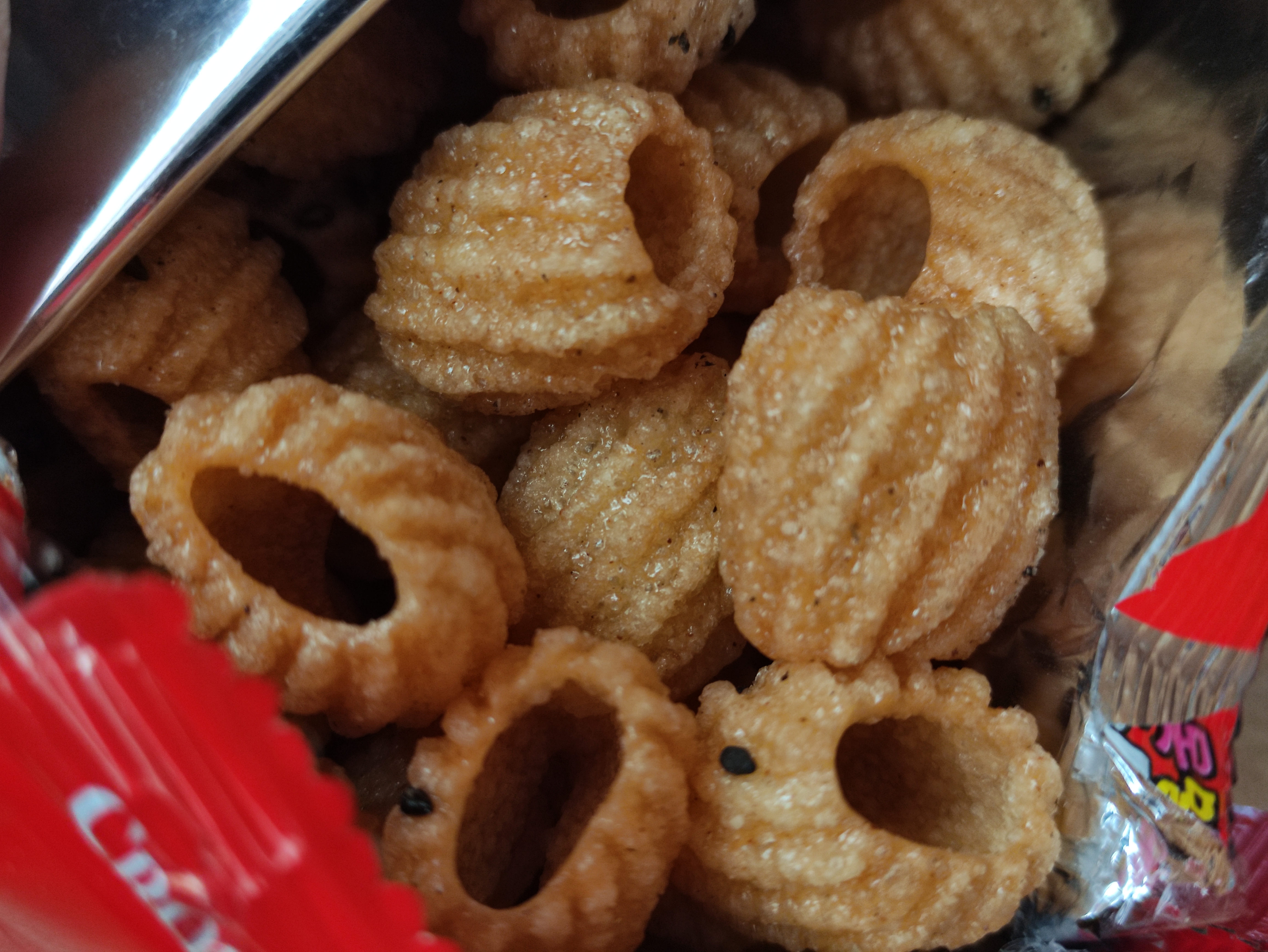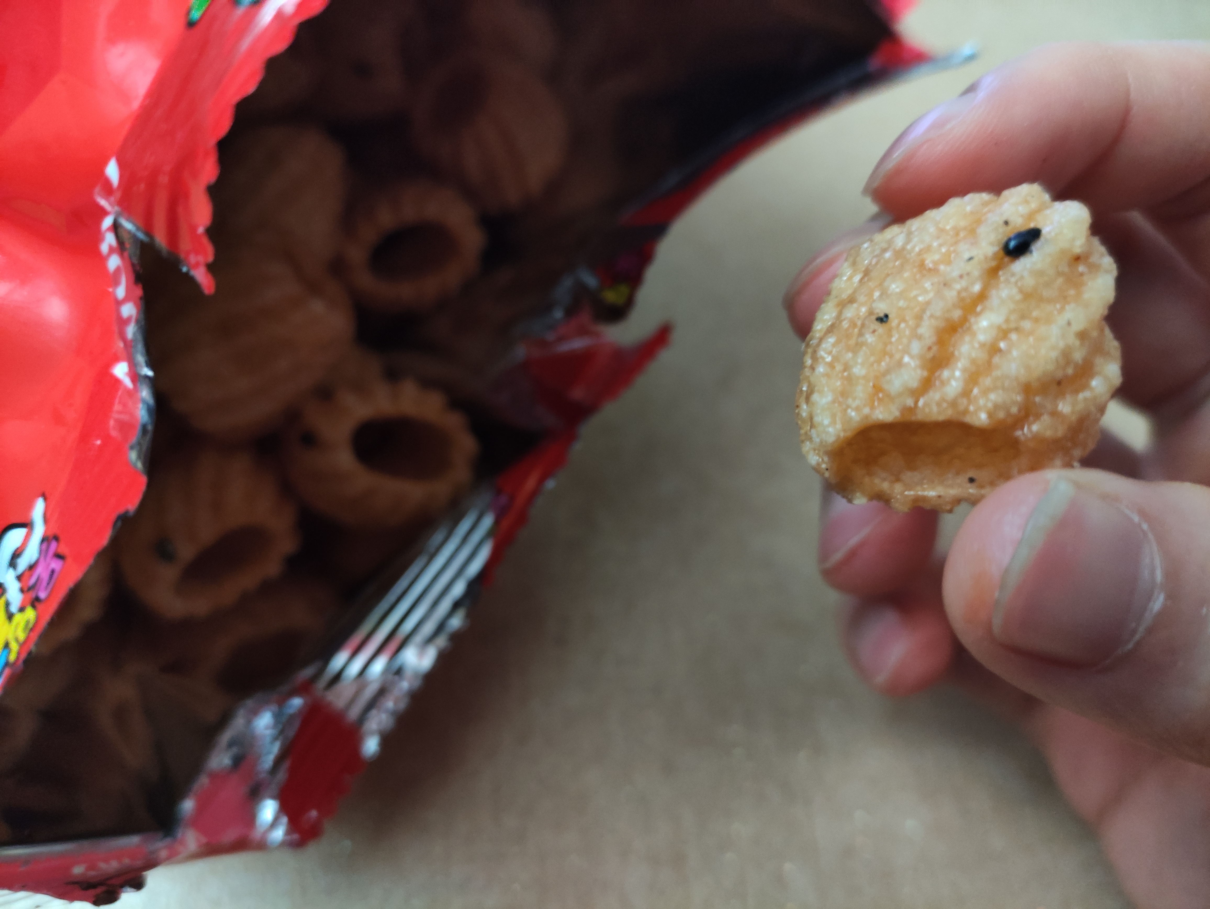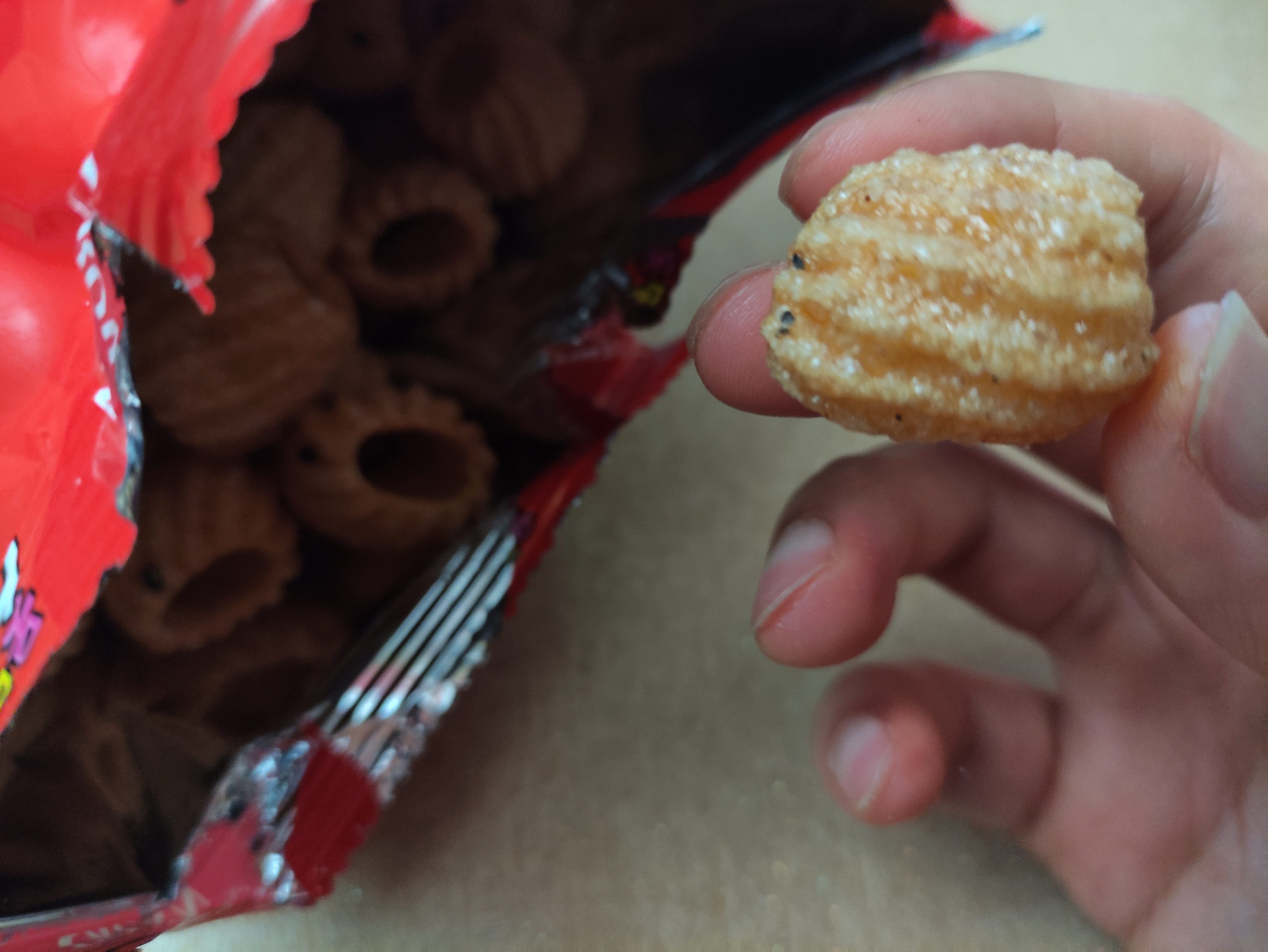 과자는 이렇게 생겼어요. 겉에 주름이 있고 안쪽은 빈공간이에요. 과자가 제법단단해서 바삭한식감보다는 오독한식감쪽에 가까워요. 달달한맛이 참 좋은 과자 입니다. 넉넉하게 들어있어서 한번에 다먹으면 배가 많이부르고, 두번에 나눠서 먹기 좋아요. 이번에도 추악의 과자 맛있게 잘 먹었습니다.