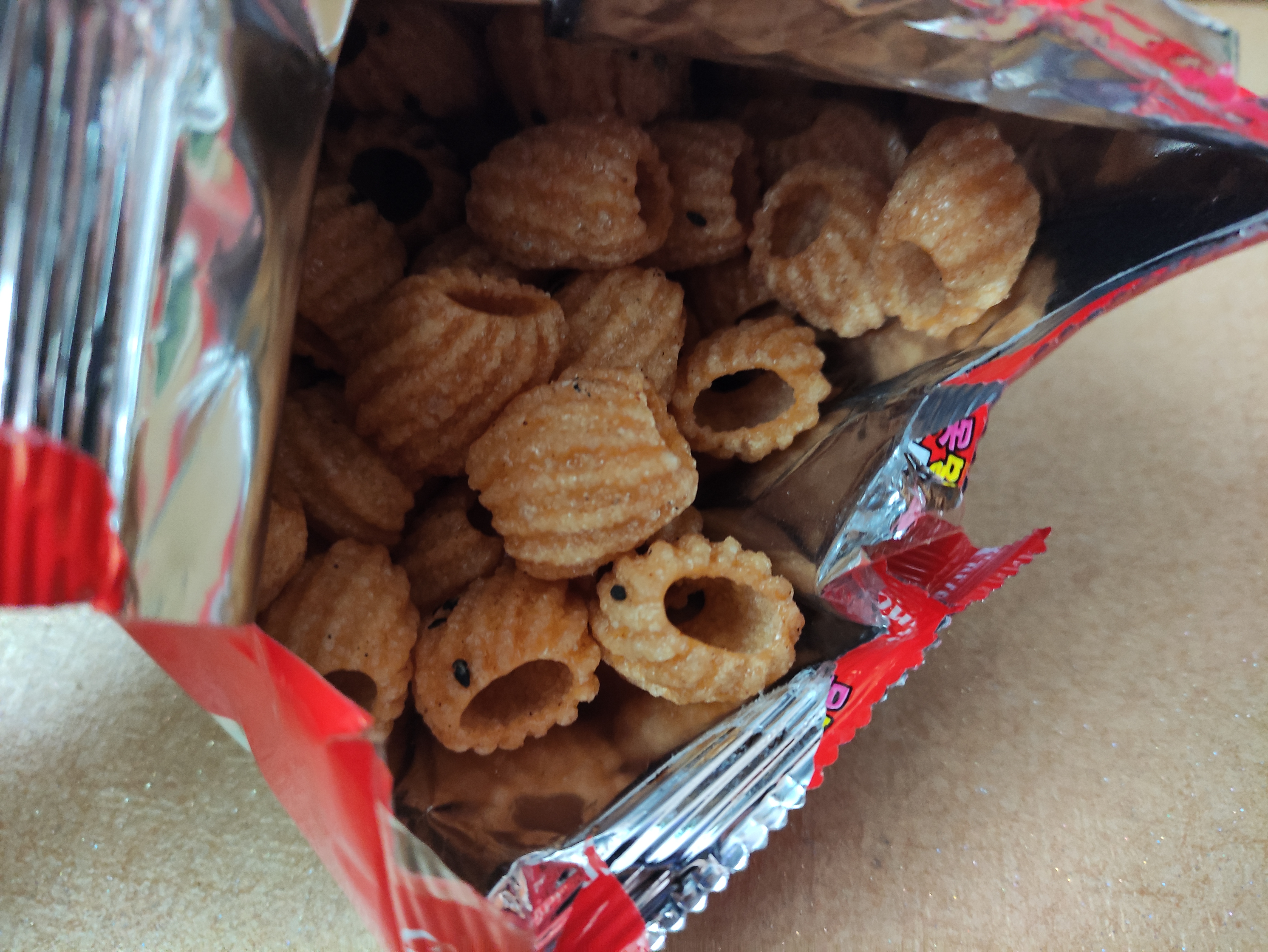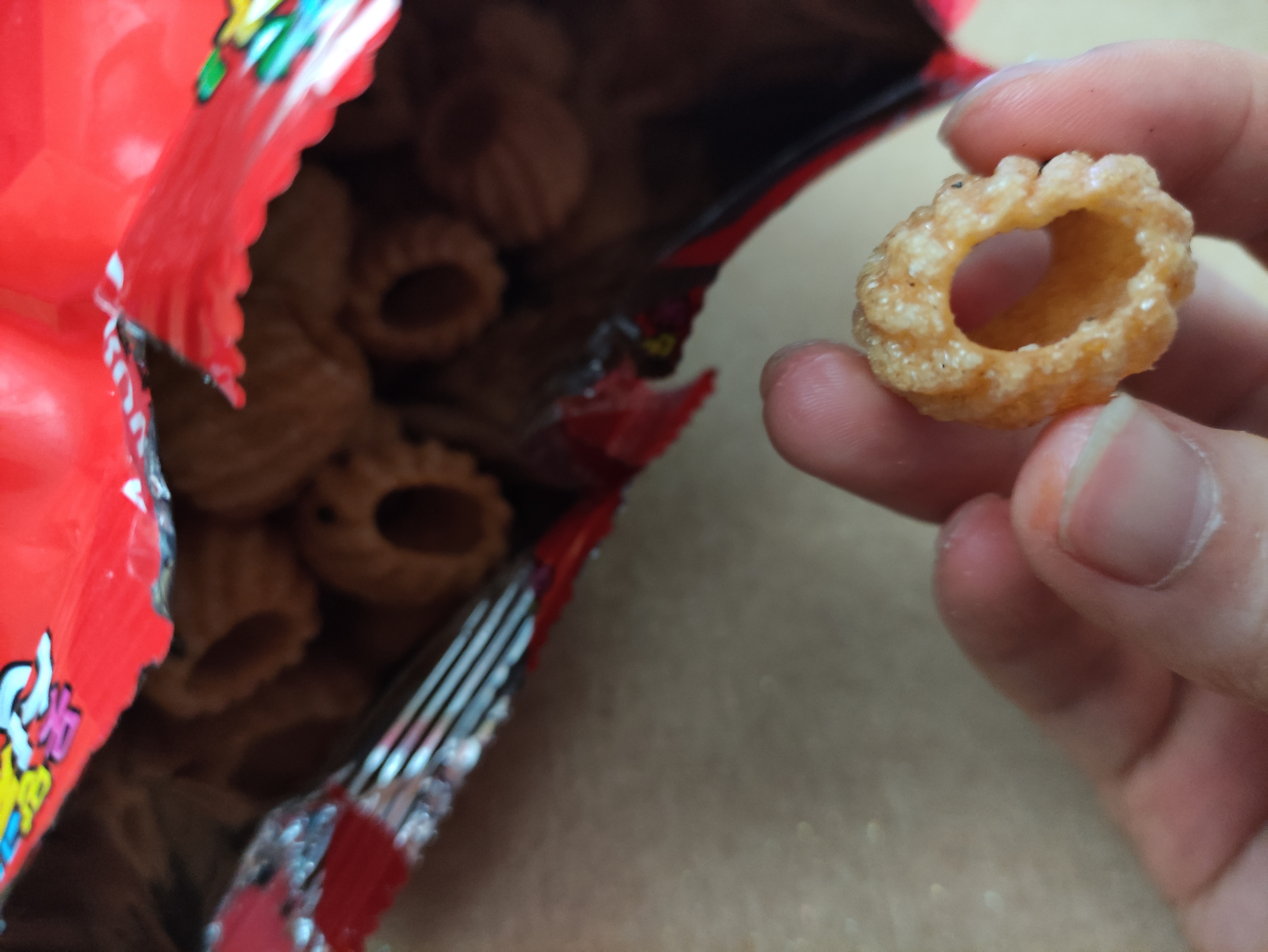 봉투를 열면 이렇게 독특한모양의 가운데가 뚫려있는 과자가들어있어요. 가격대비알차게 들어있어 가성비가 참 좋아요. ㅎ