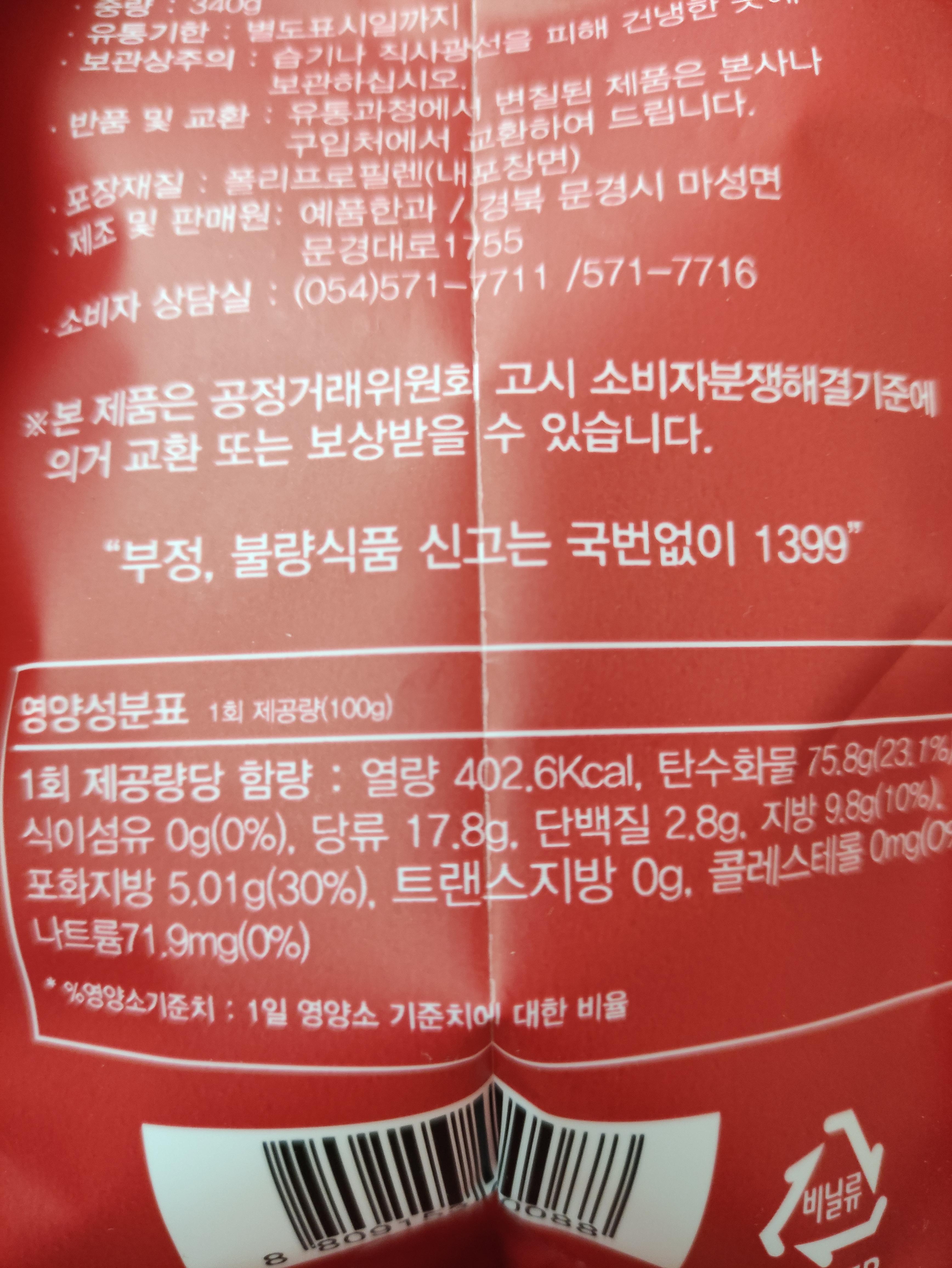 제조는 경북 문경시에 위치한 예품한과에서 만들고 판매해요.
