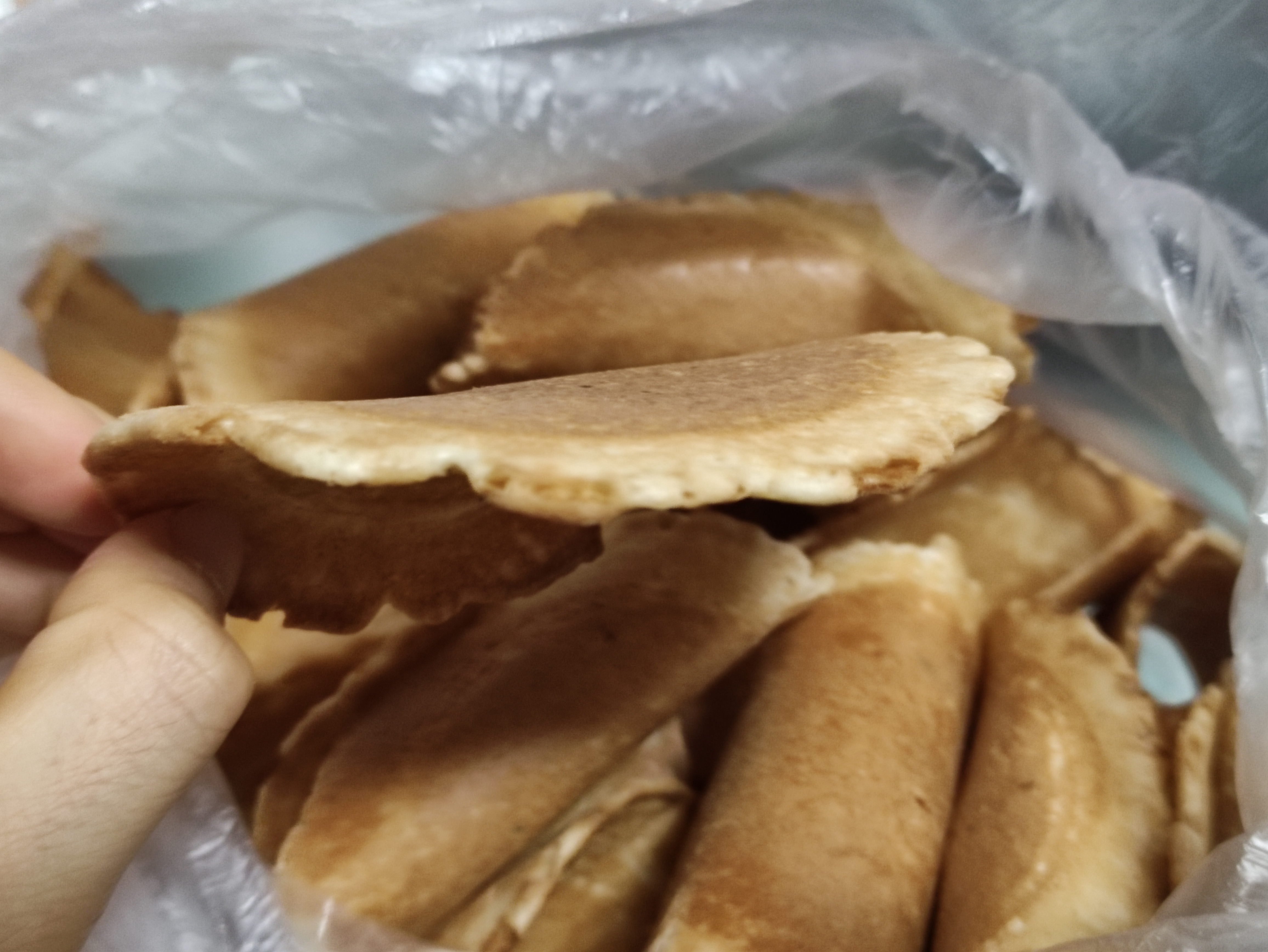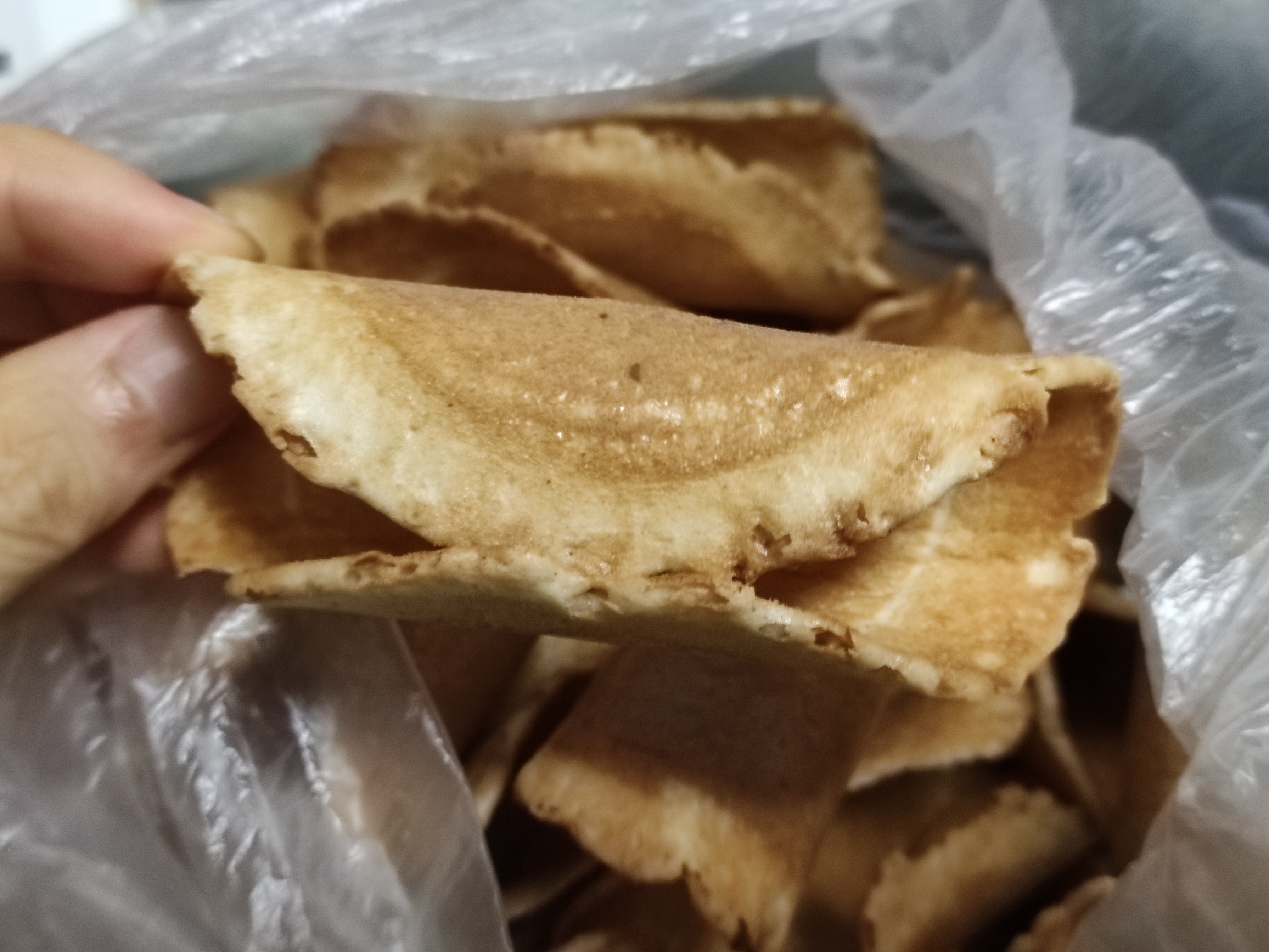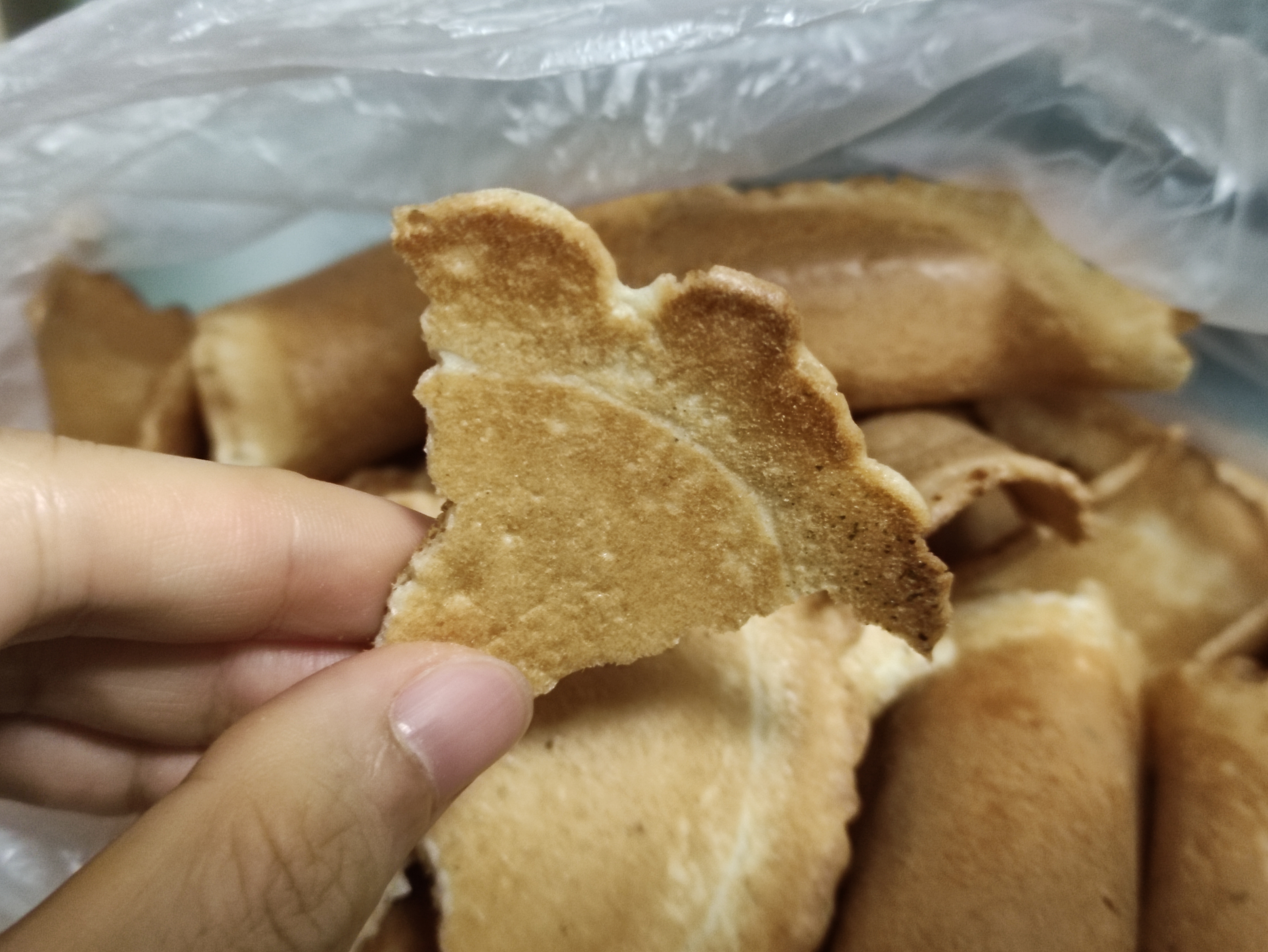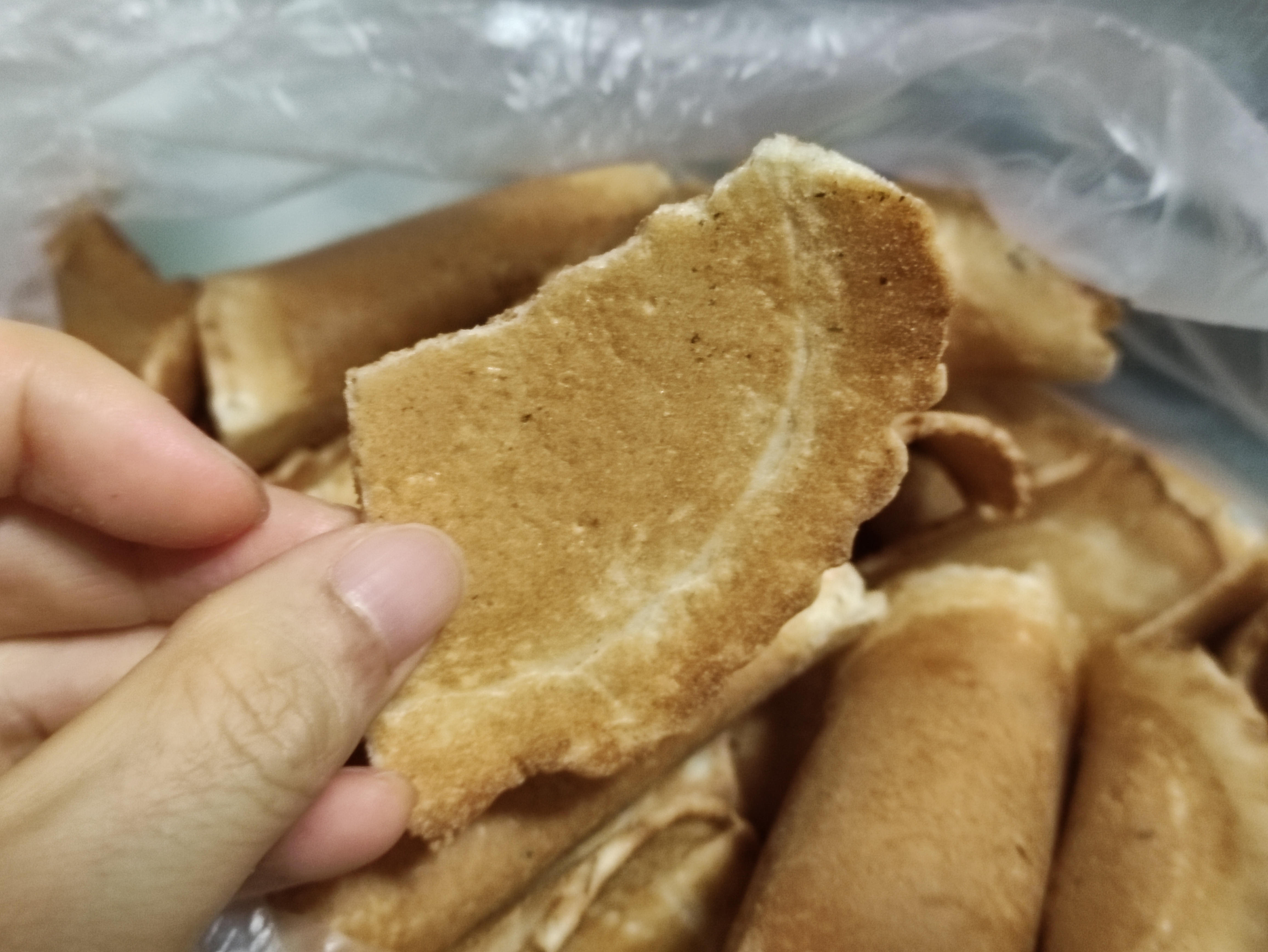 이렇게 한입먹음 반으로 갈라져요. 바삭하긴한데 두께가 있어서 바삭오독? 중간 느낌 ㅎㅎ