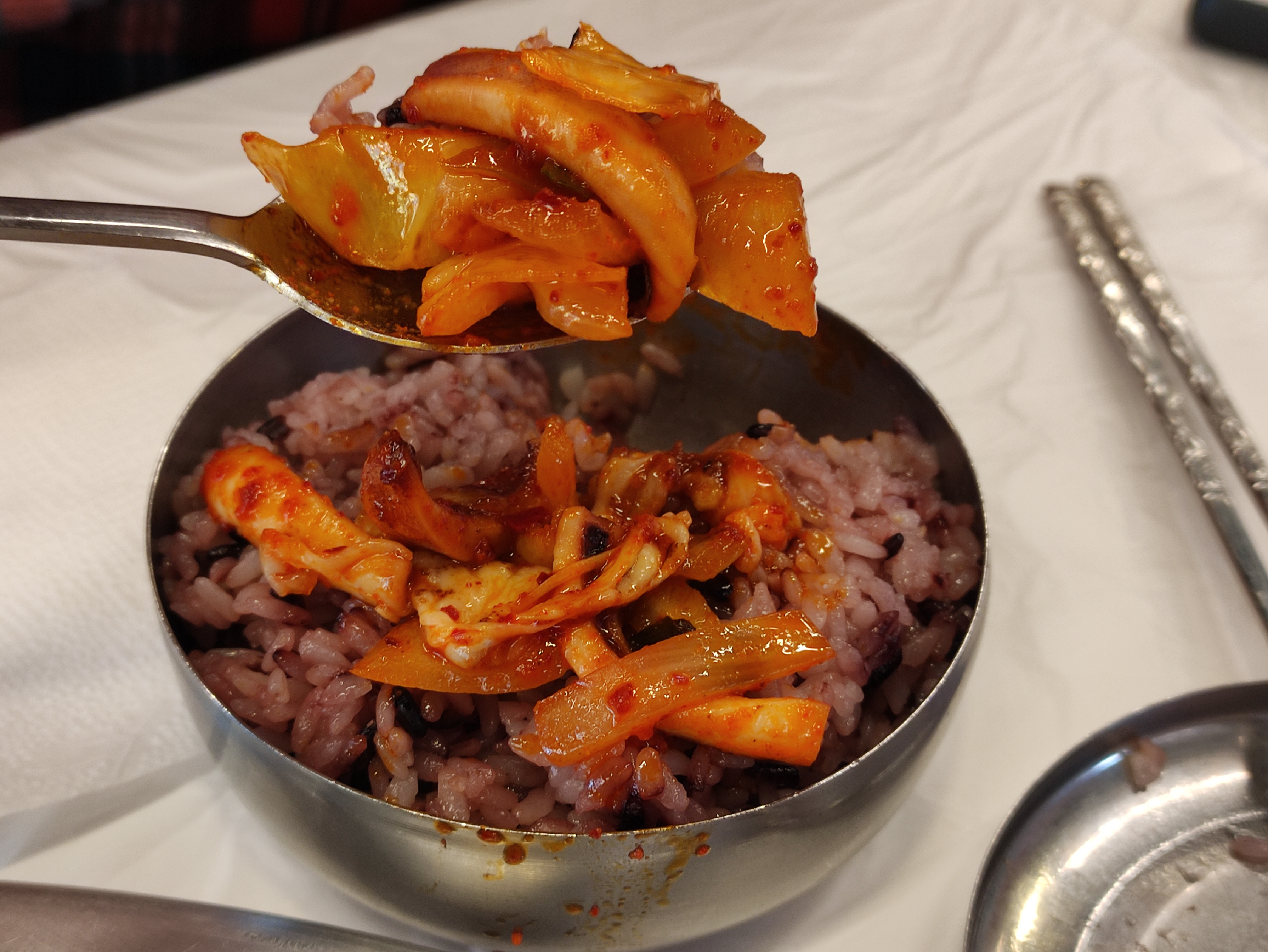 매운걸좋아하심 치즈는 패스하고 이렇게 밥위에 오징어볶음을 올려서 먹으심 제대로된 오징어볶음맛을 느낄수있습니다.