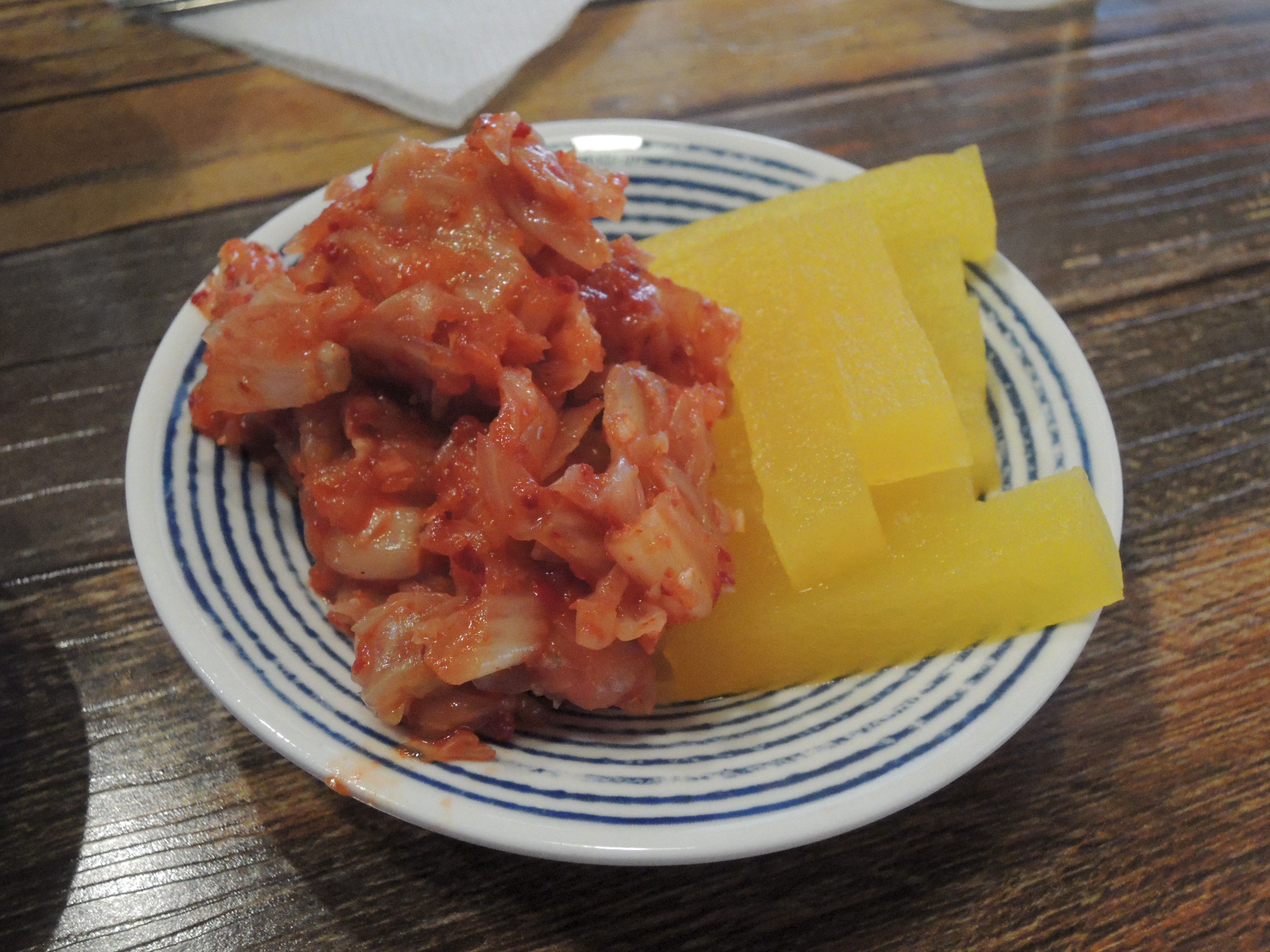 밑반찬인 단무지와 김치는 샐프바에서 가져다 먹을 수 있어요.