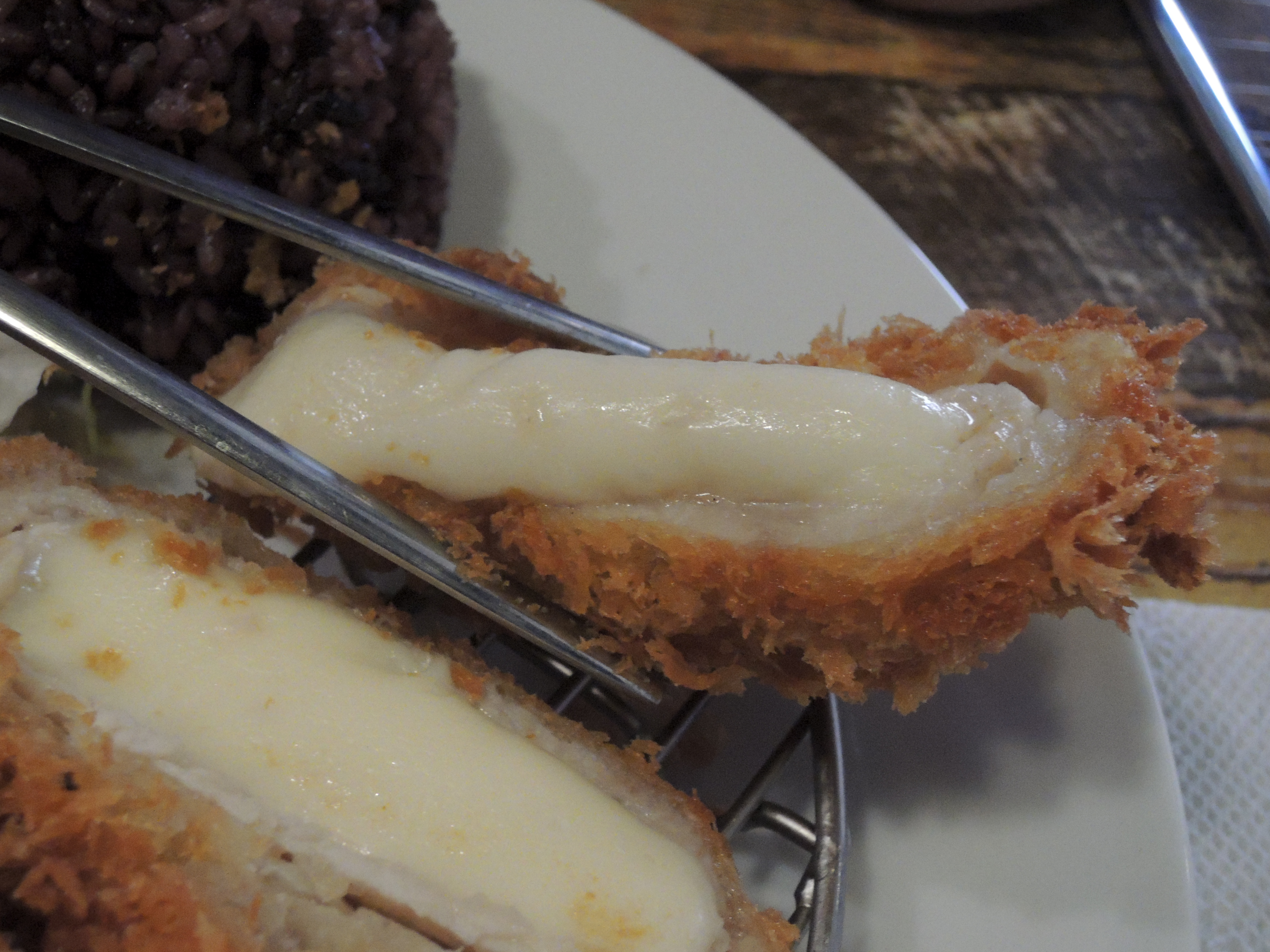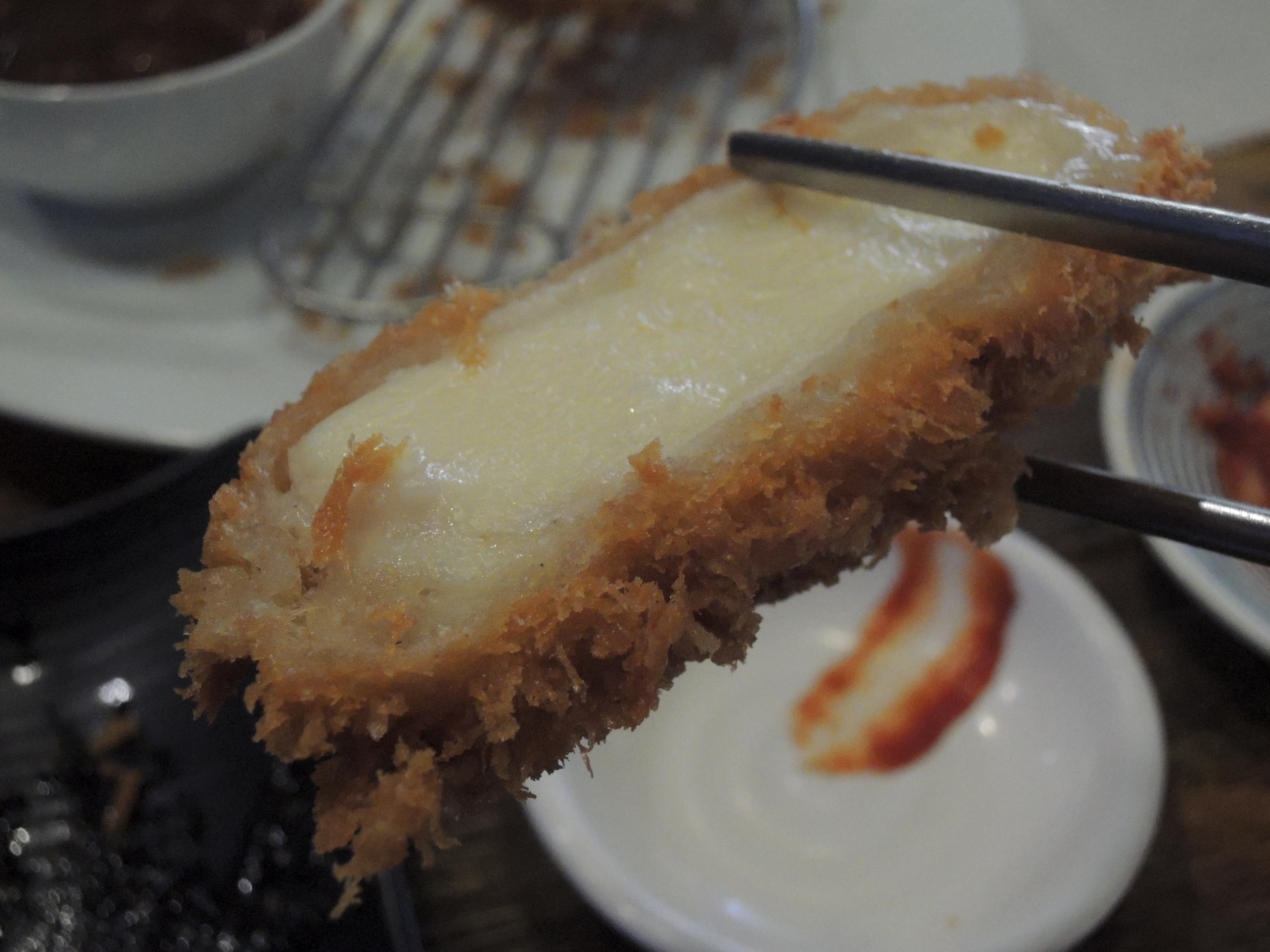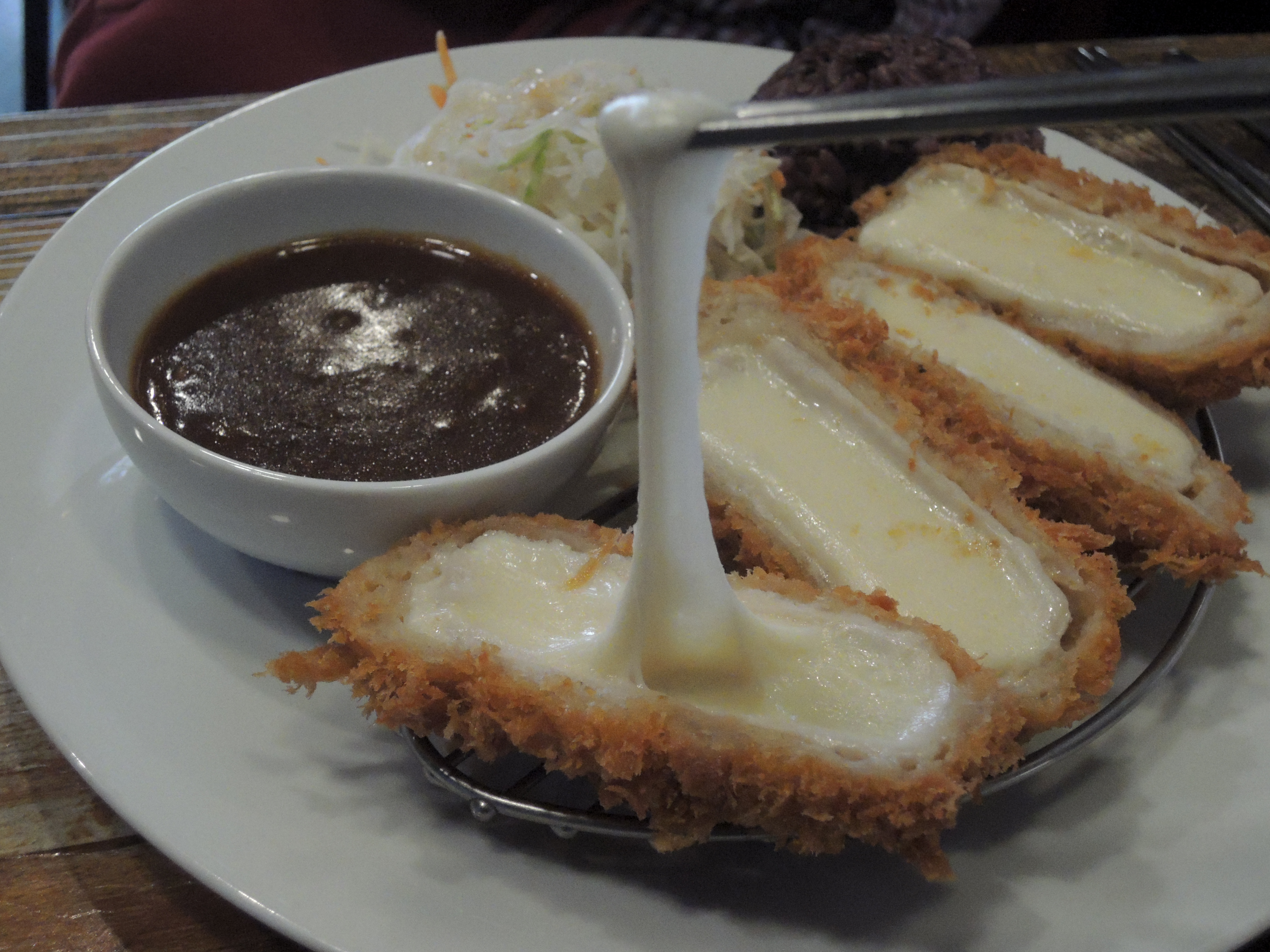 치즈돈까스도 튀김옷은 바삭, 치즈는 쫄깃합니다. ㅎㅎ