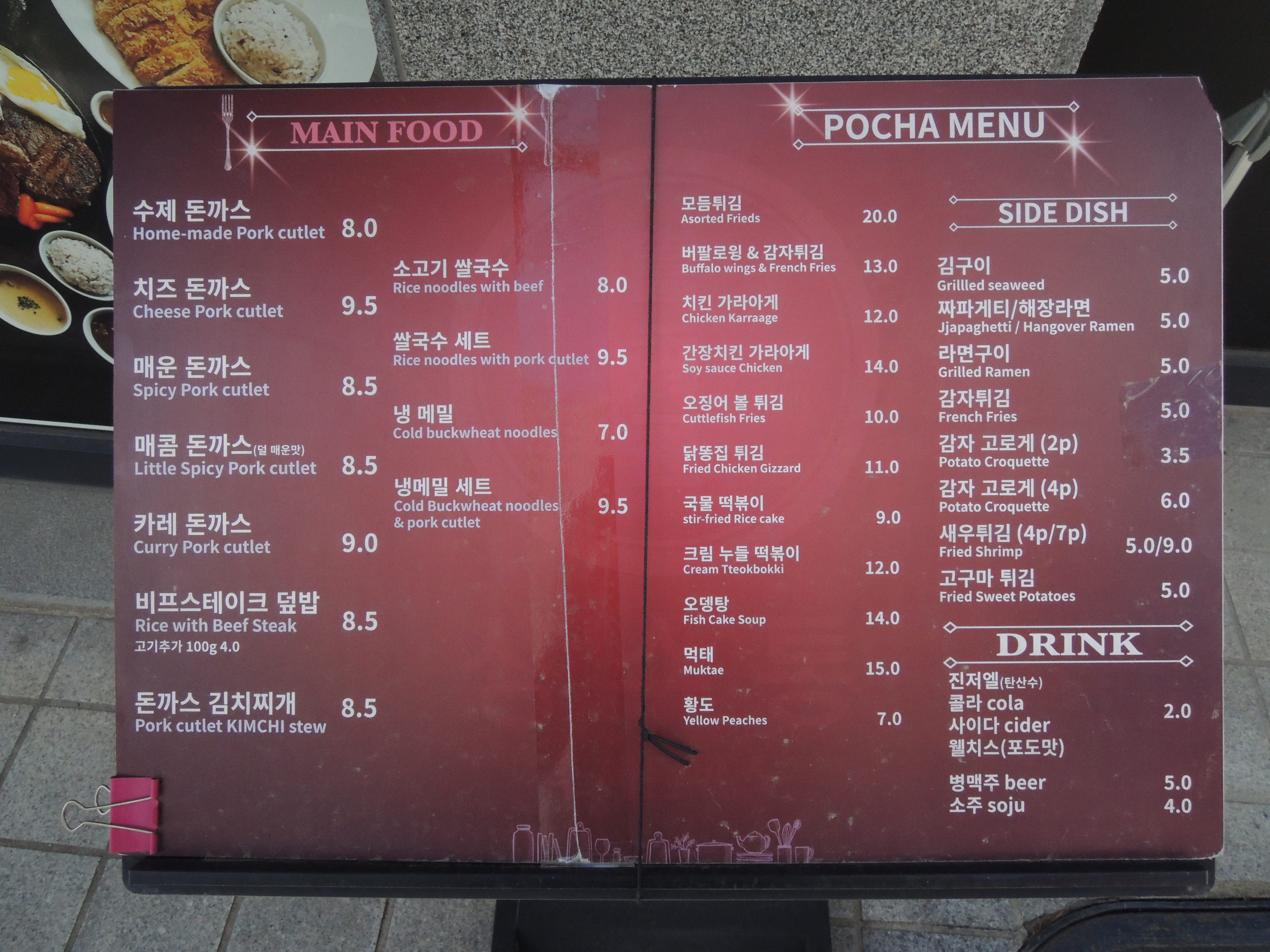 다양한 돈까스와 쌀국수, 그리고 포차메뉴가 있어요.