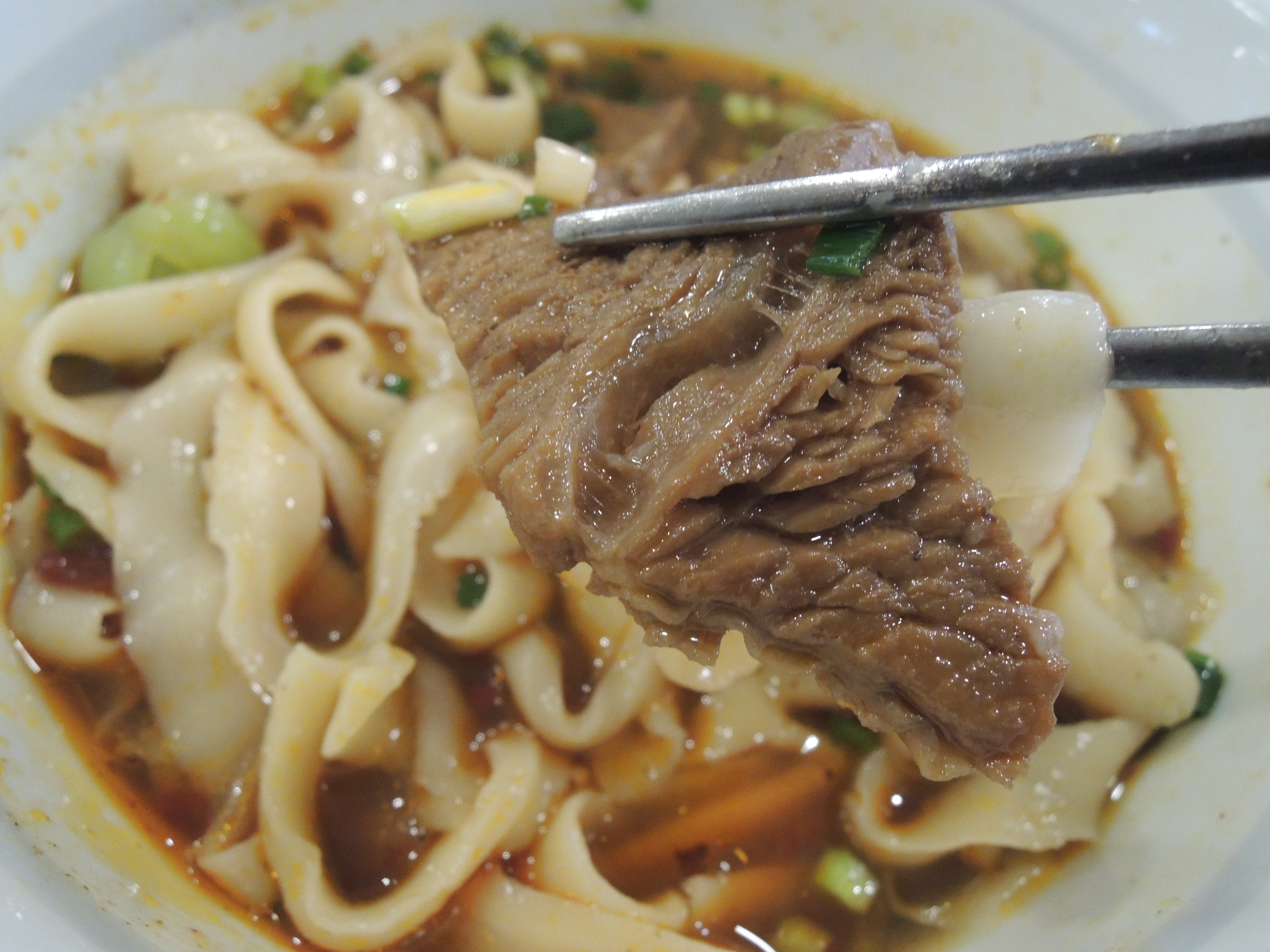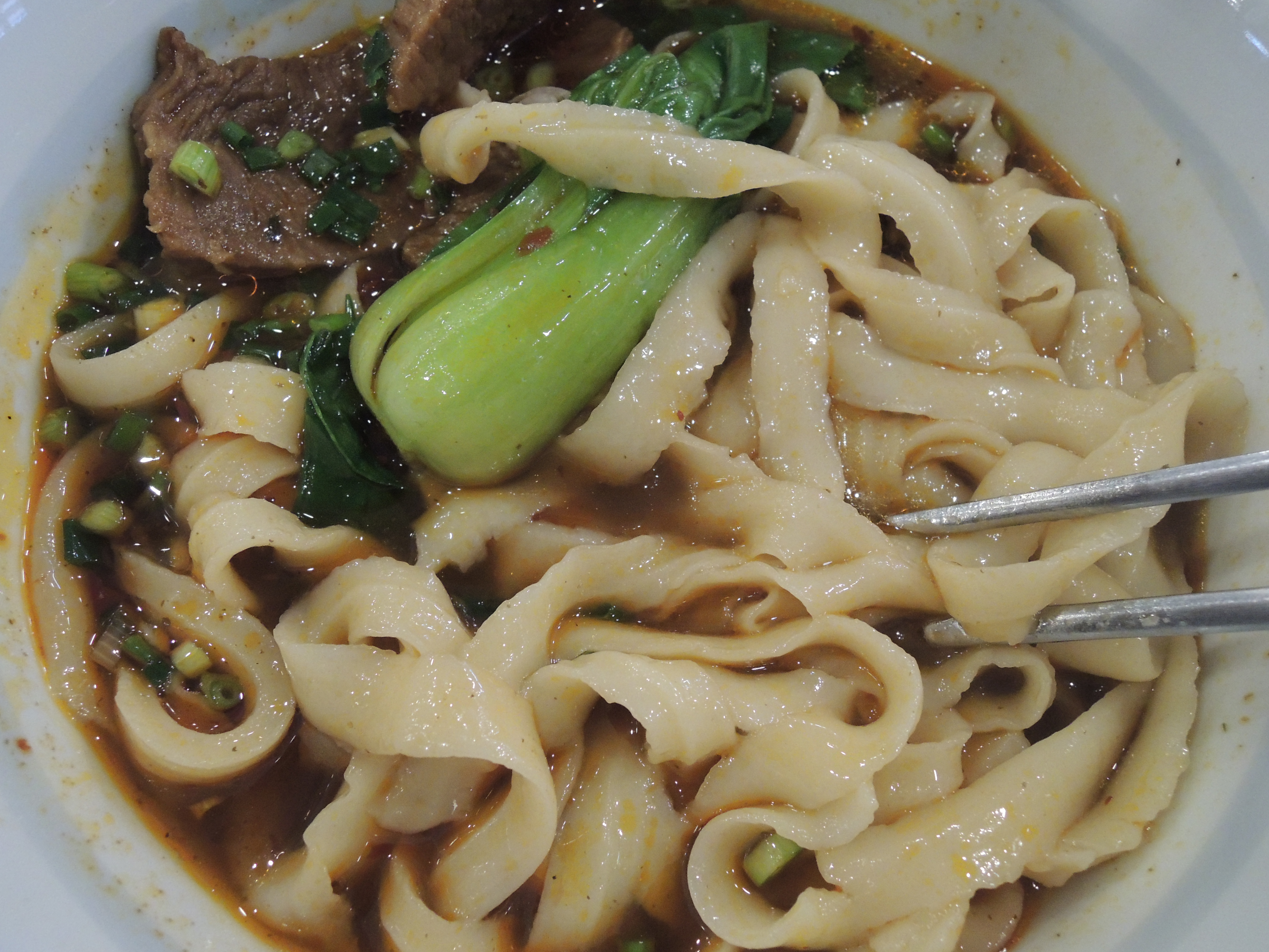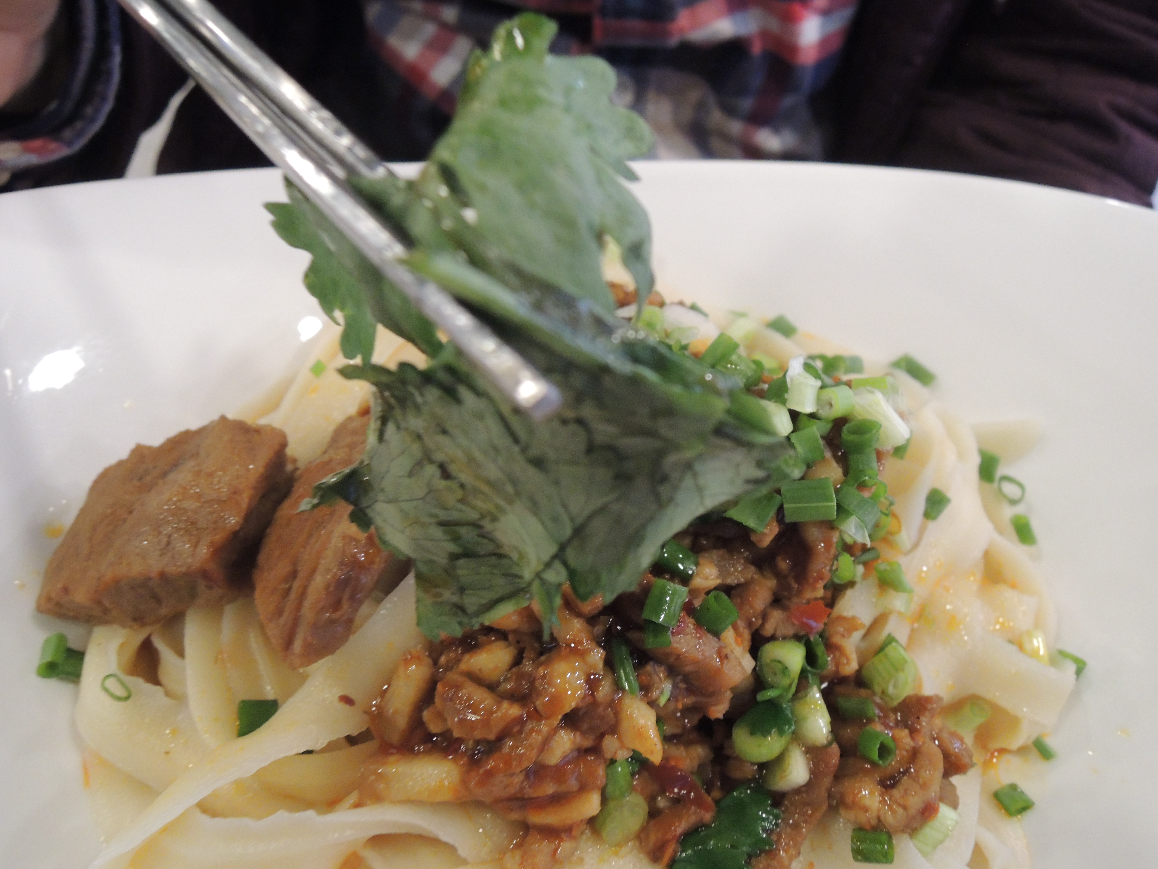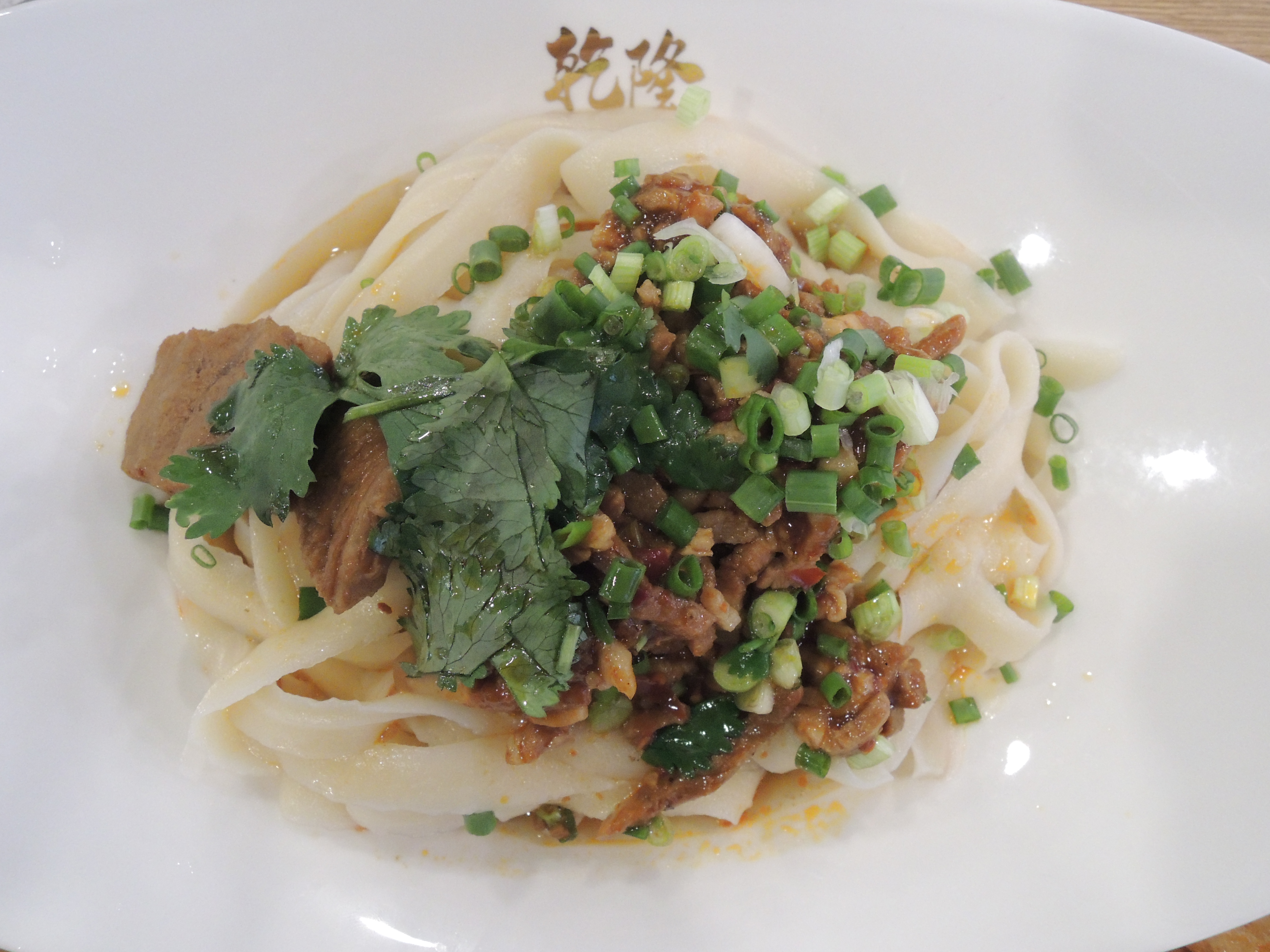 샤오지도삭면? 국물이 자작한 비빔면 스타일의 도삭면이에요. 국물이 없어서 깔끔하게 먹을 수 있다는 장점이 있어요.