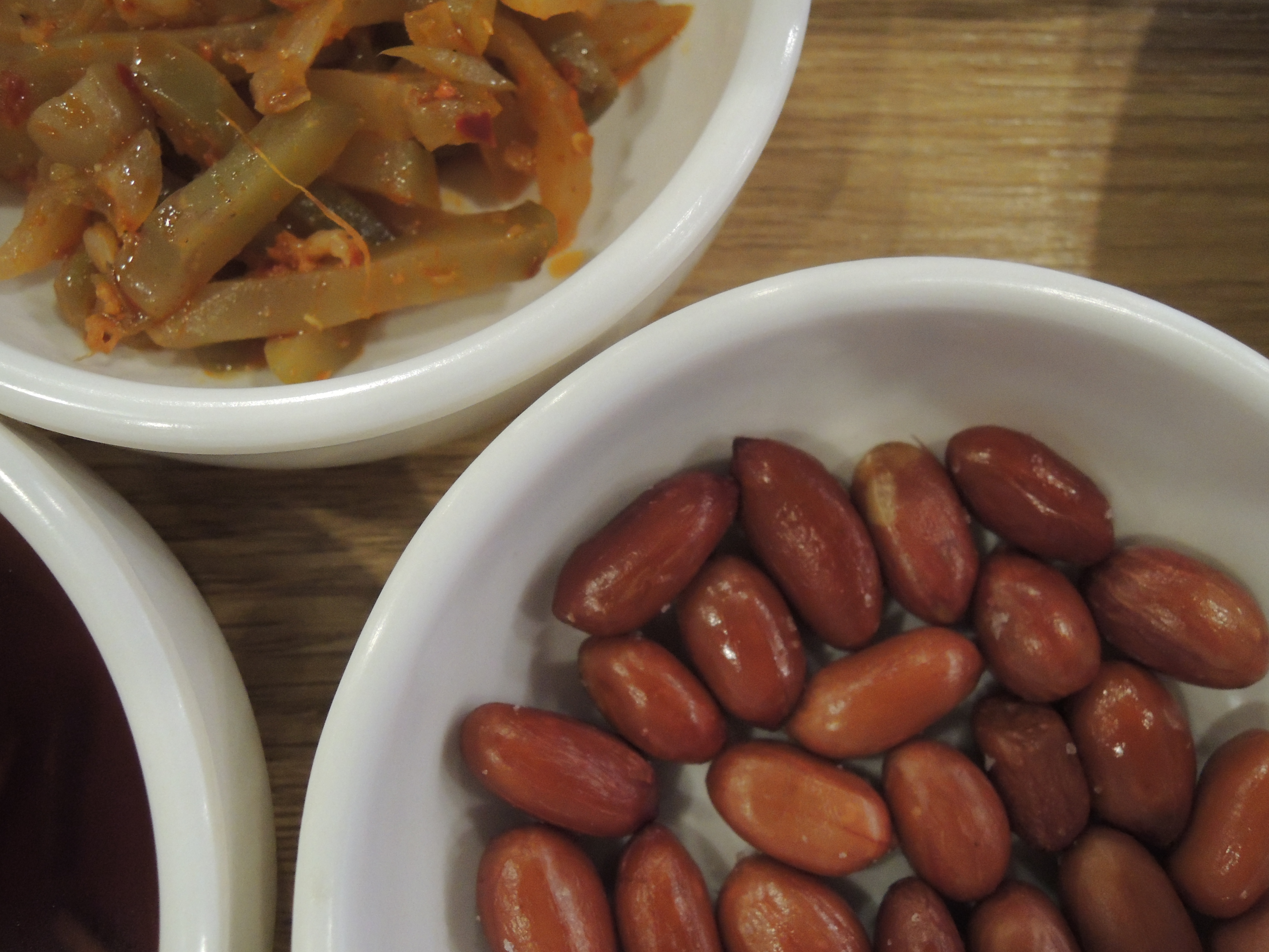 기본반찬으로 땅콩과 짜사이가 나옵니다.