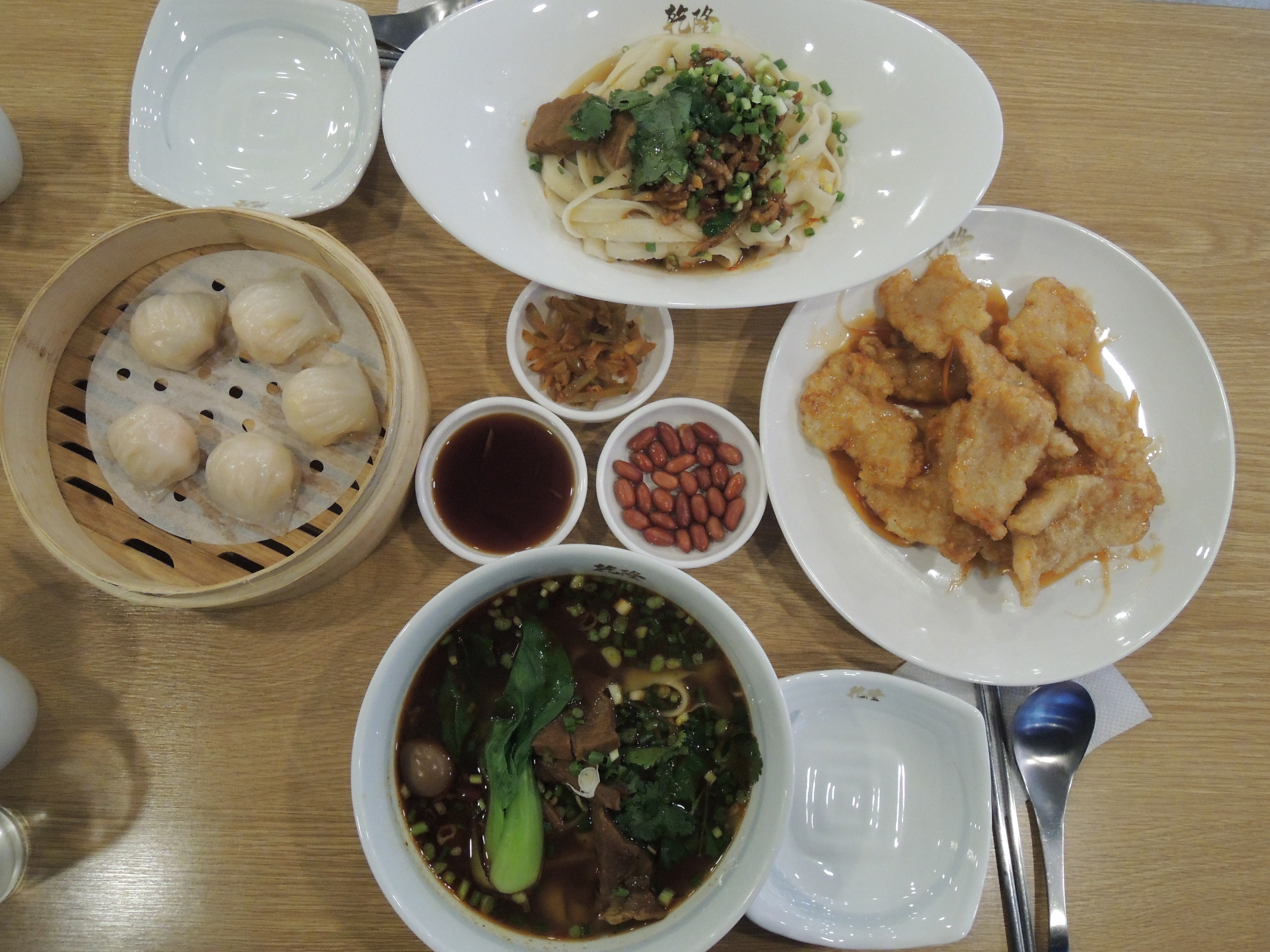 면이 납작하고 독특한점이 가장 눈에 띄네요. 딤섬도 먹음직스럽고, 꿔바로우는 가위로 손질해서 먹는데 겉바속촉해서 맛있었어요.