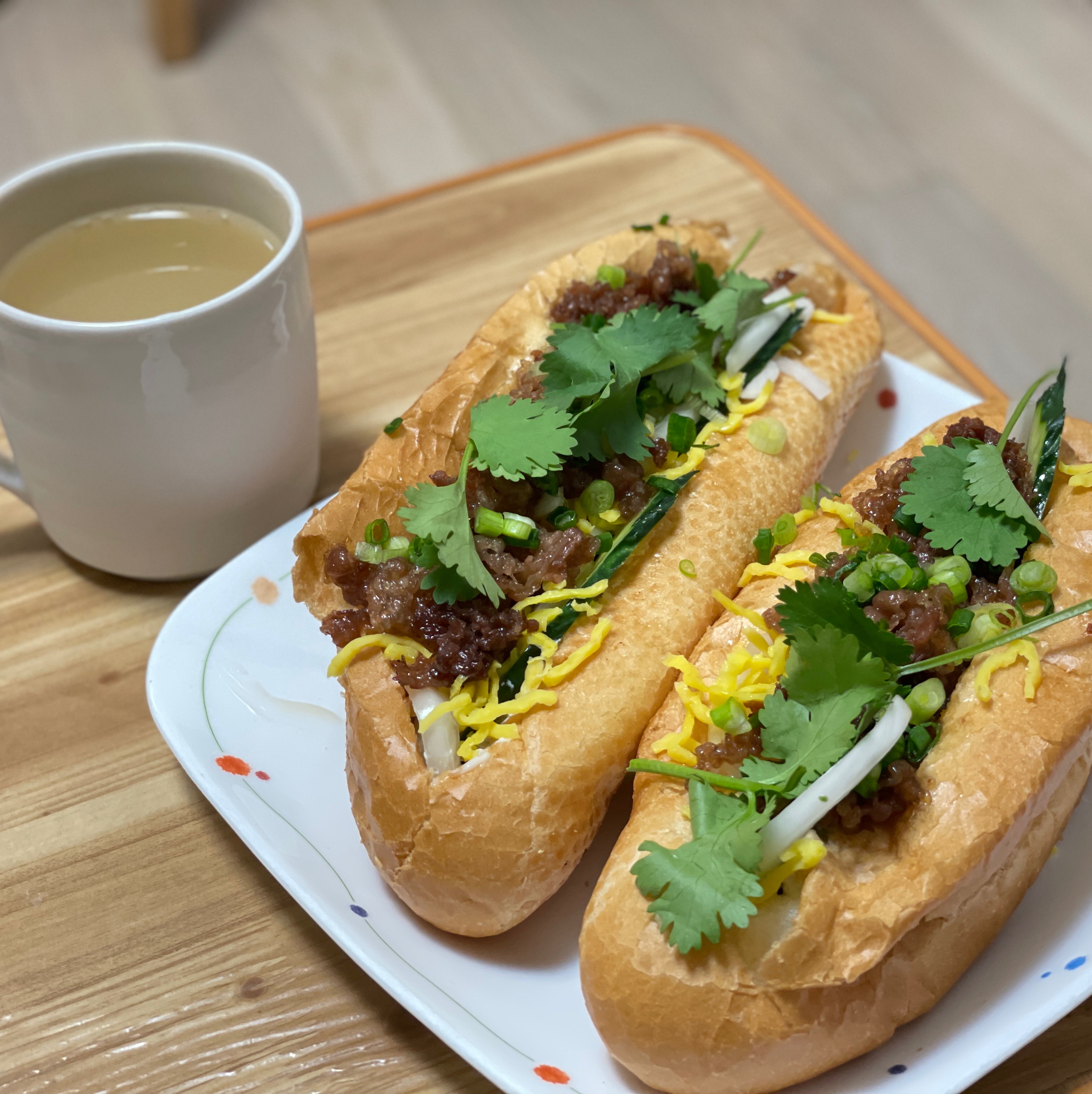 반미샌드위치는 이렇게 고수와 양파, 고기 등 속재료가 풍부하게 들어있어요. 넘 맛있겠죠. ㅎㅎ