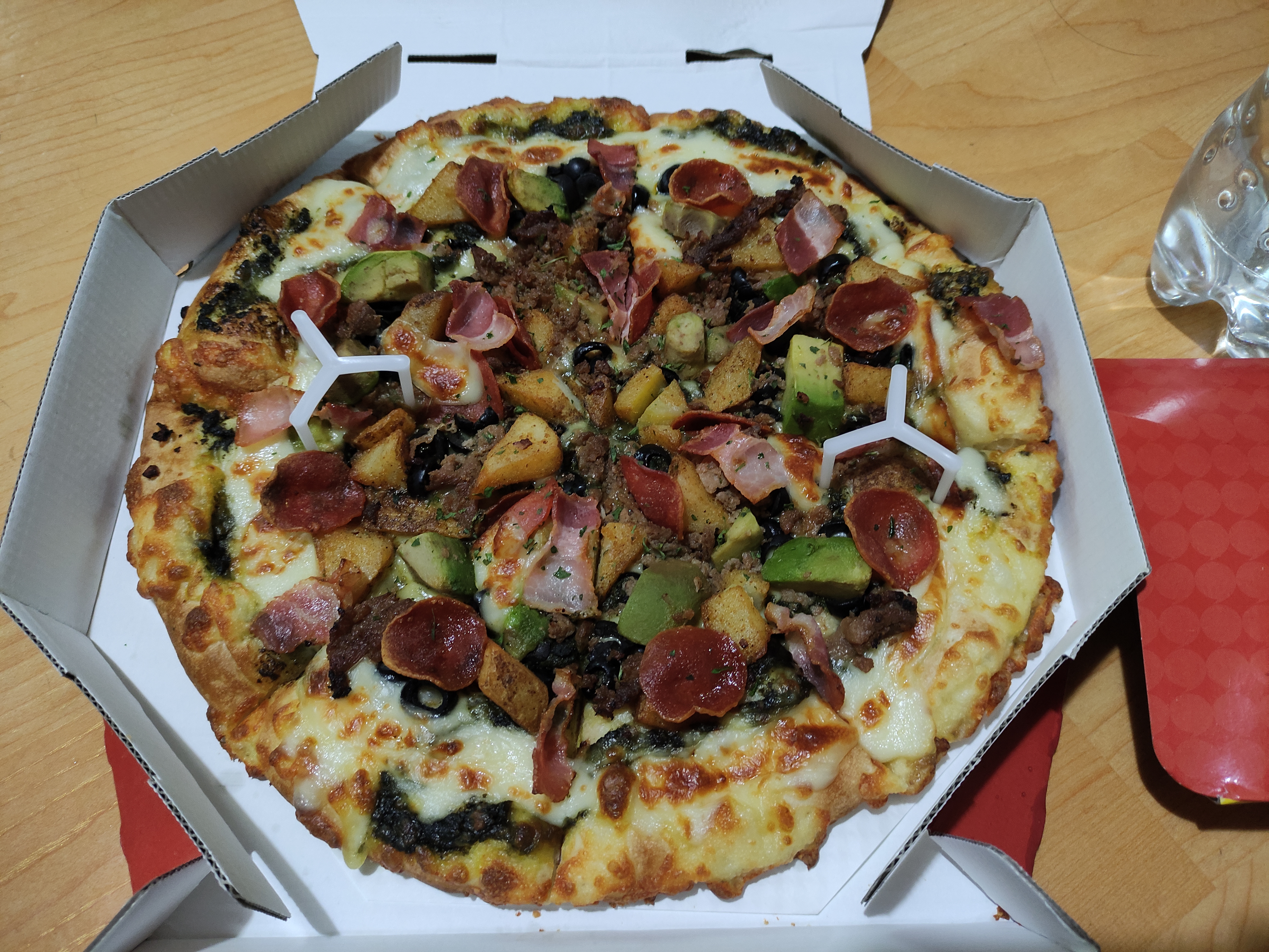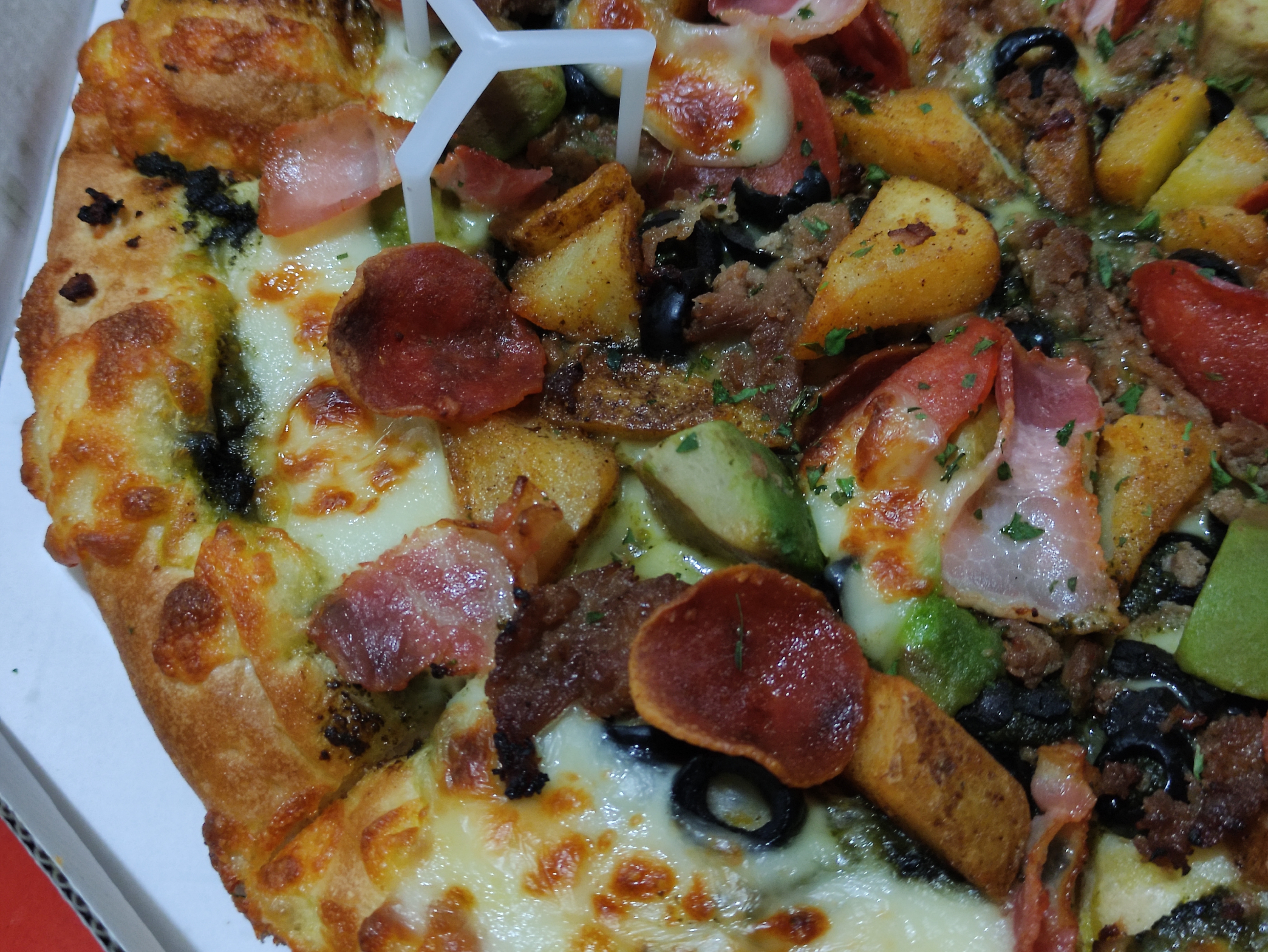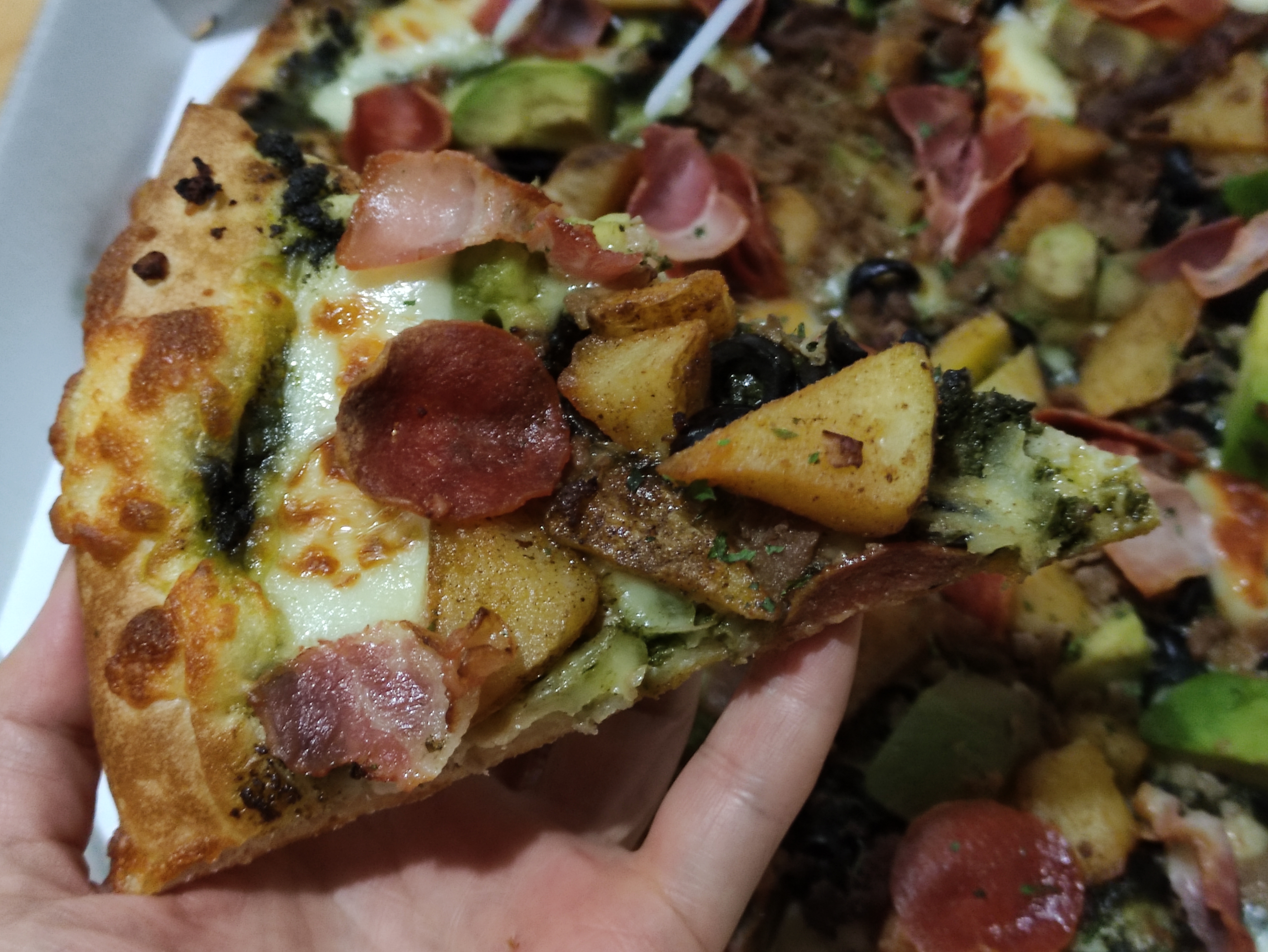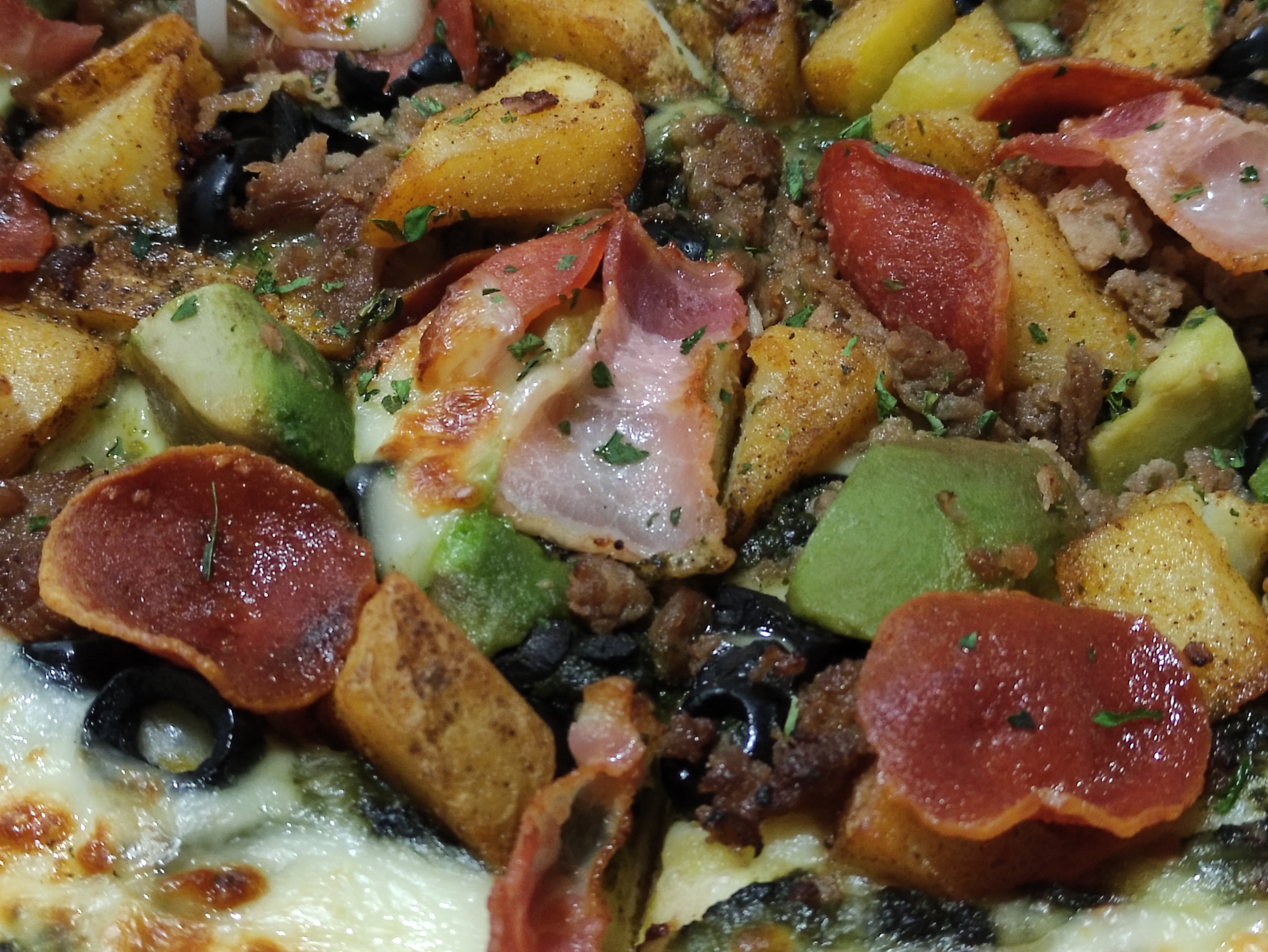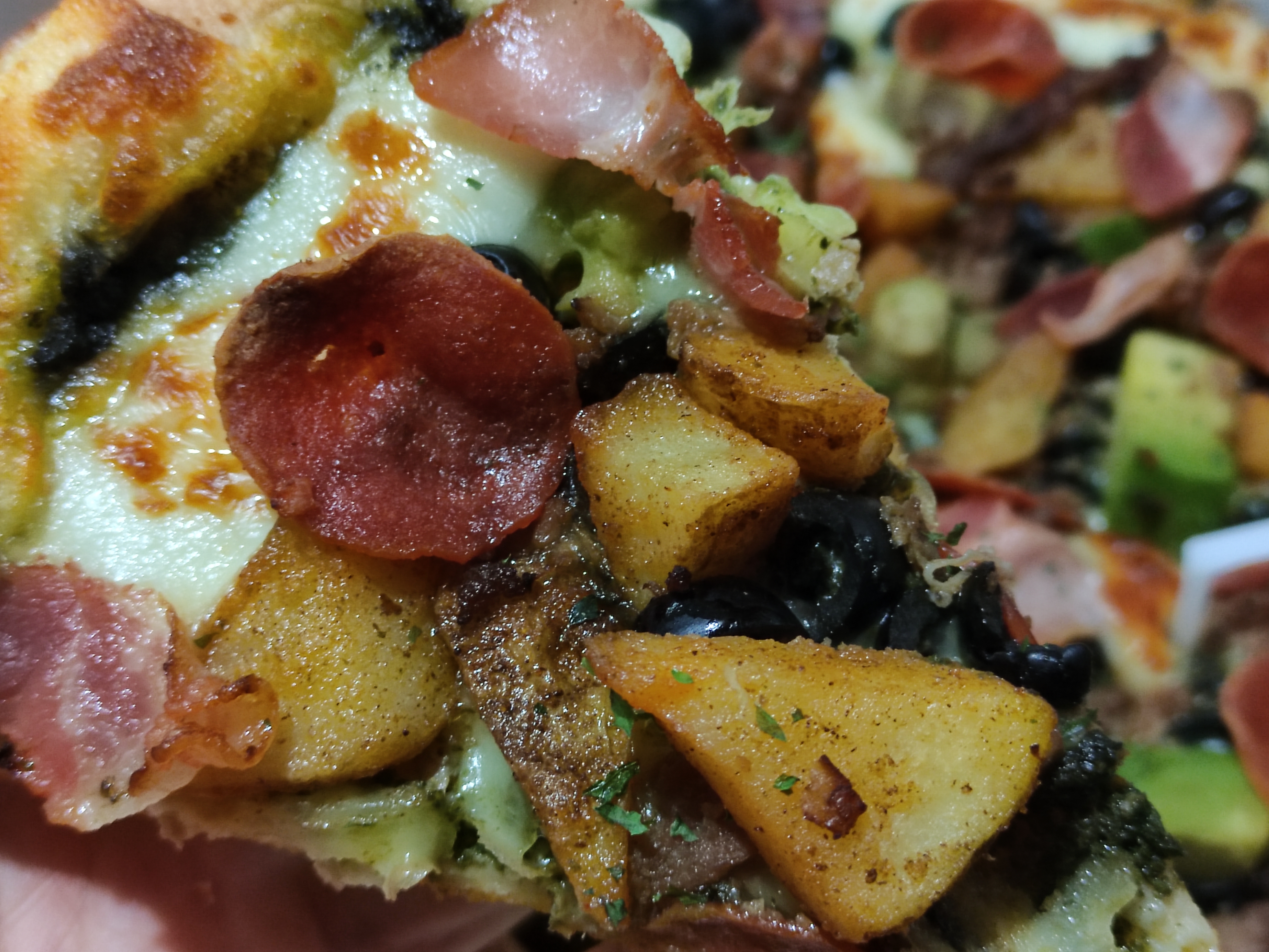 나만의 피자입니다. 베이컨과 페퍼로니 아보카도 그리거 양념감자까지 다양하게 토핑이 올라가있어요. 아보카도가 올려진 피자는 이곳에서 처음 먹어봅니다.