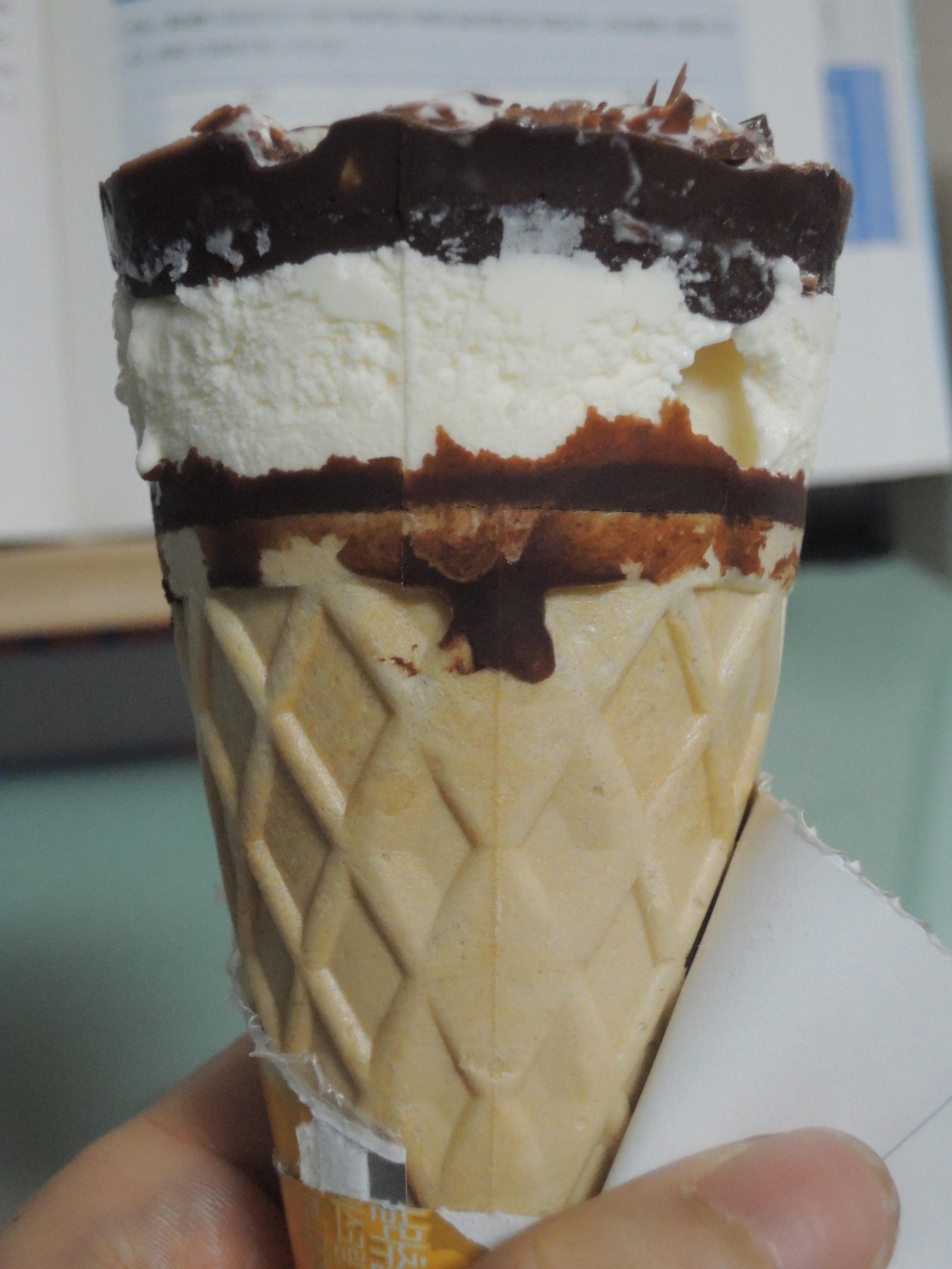 잘보시면 콘과 바닐라 사이에 얇게 초코렛 층이 있습니다.