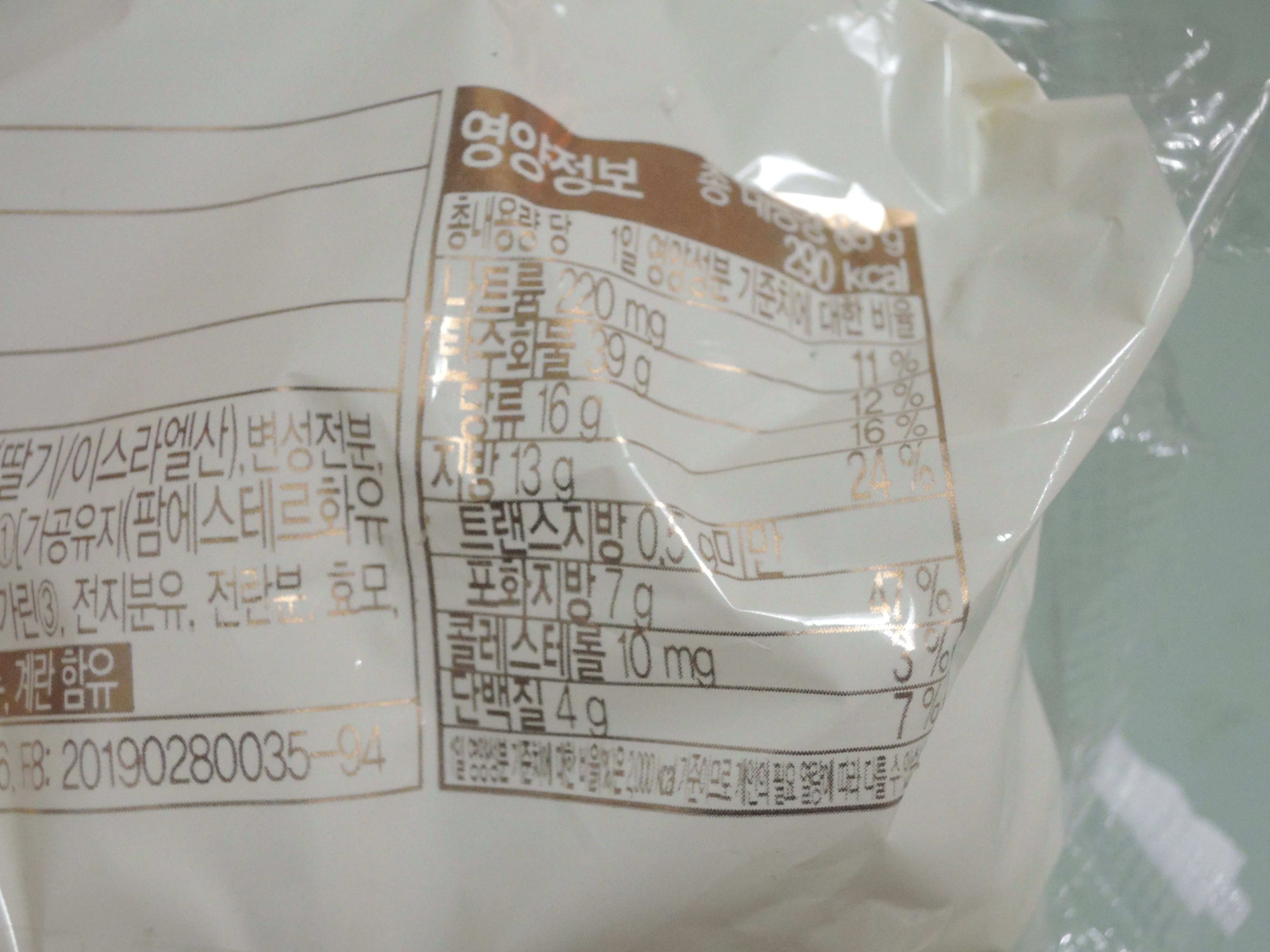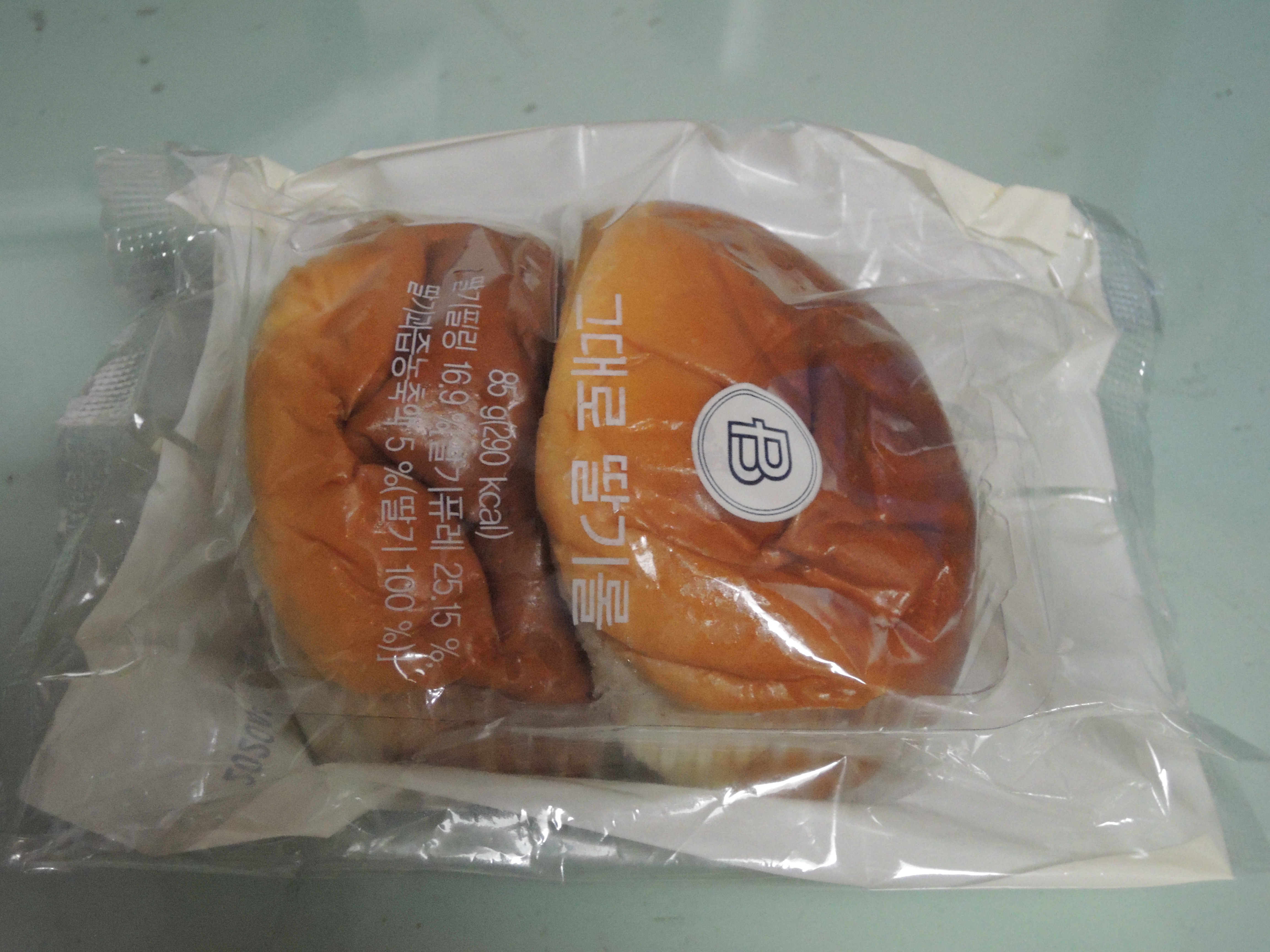 이름이 참 재밌네요. 그대로 딸기롤 ㅎㅎ 85g 290kcal이며 딸기필링이 안에 들어있는 빵입니다.