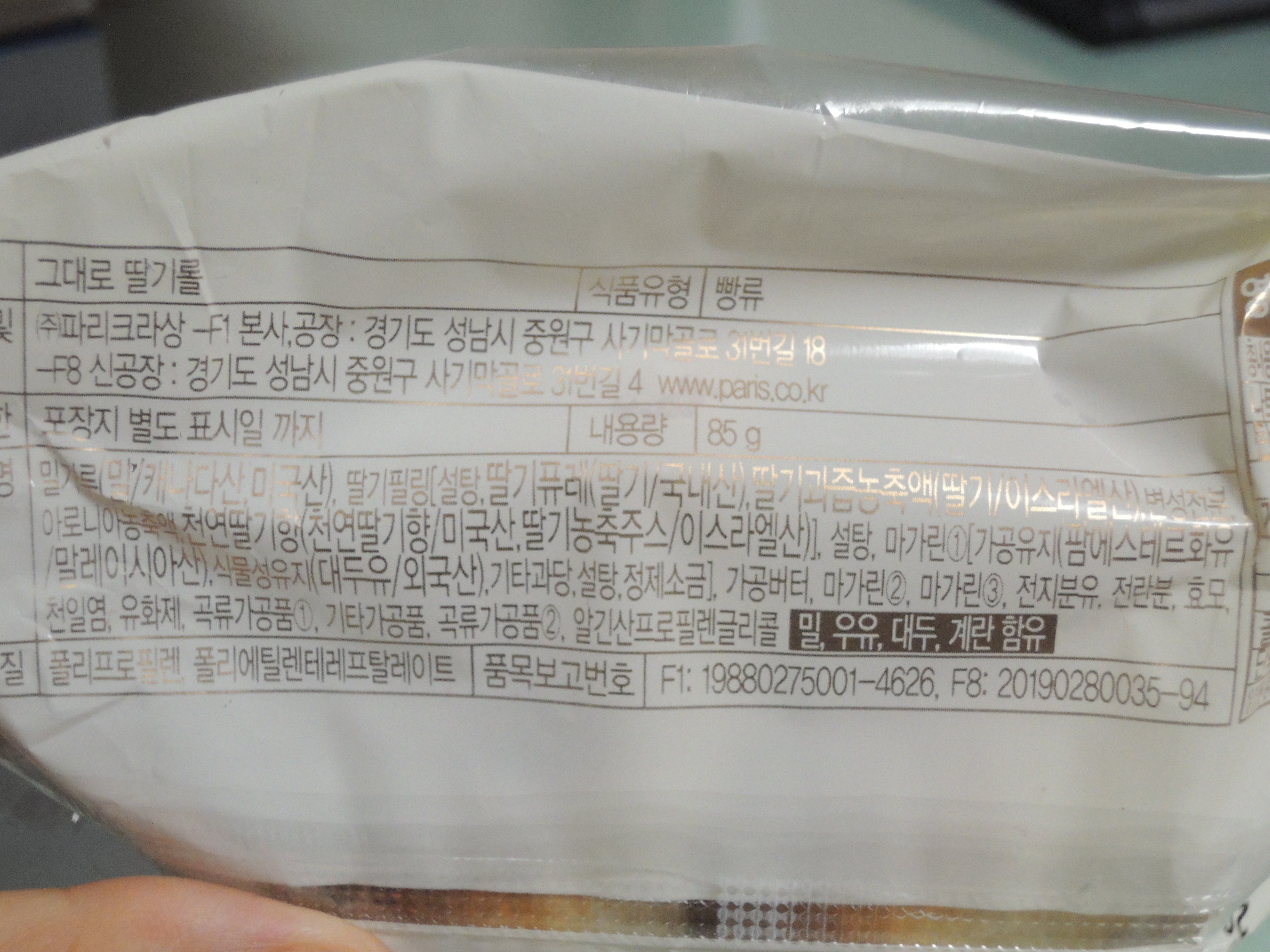 경기도 성남시 파리크라상 공장에서 만들며, 밀가루와 딸기필링, 식물성유지, 천연딸기향 등이 들어갑니다.
