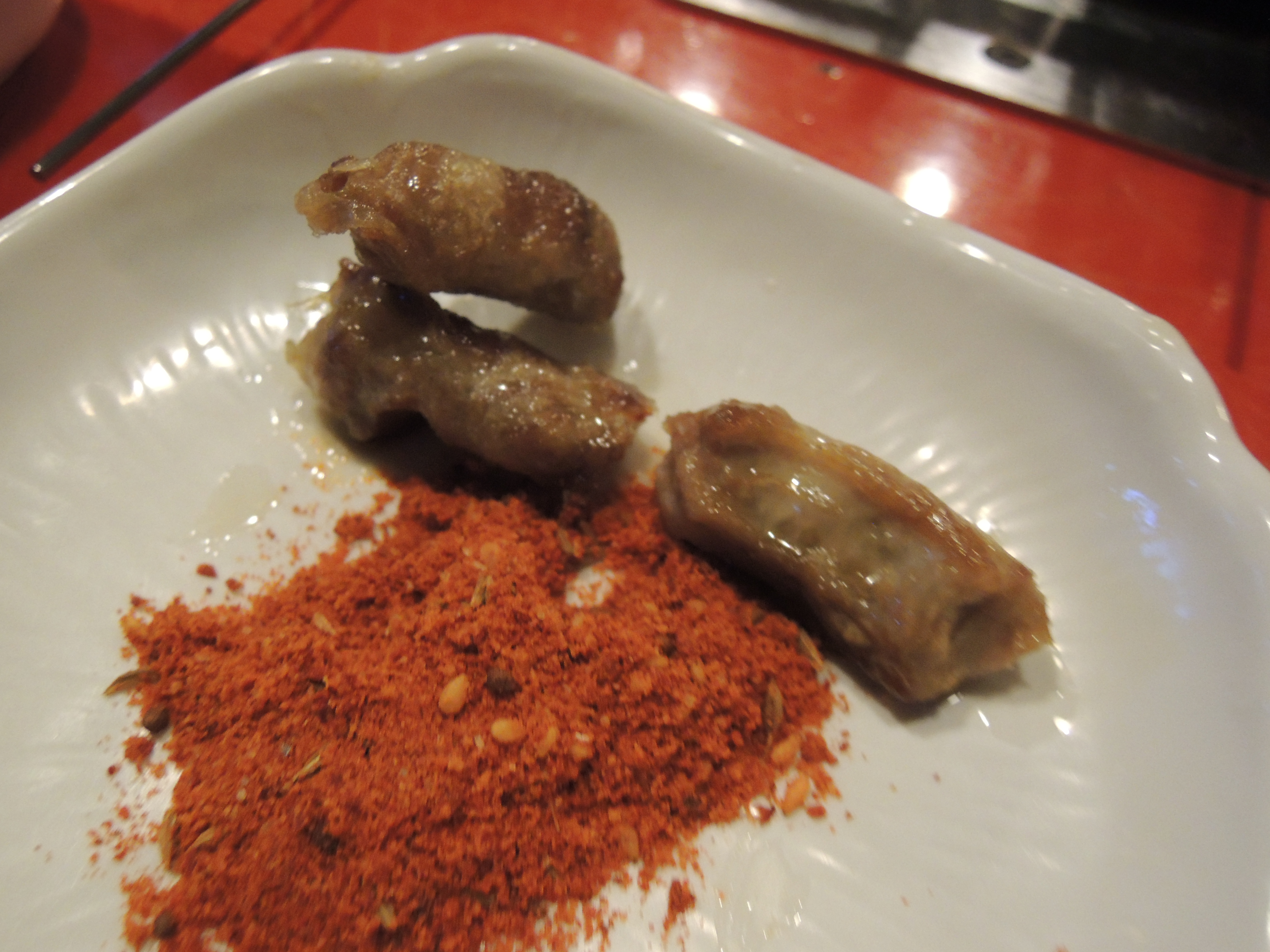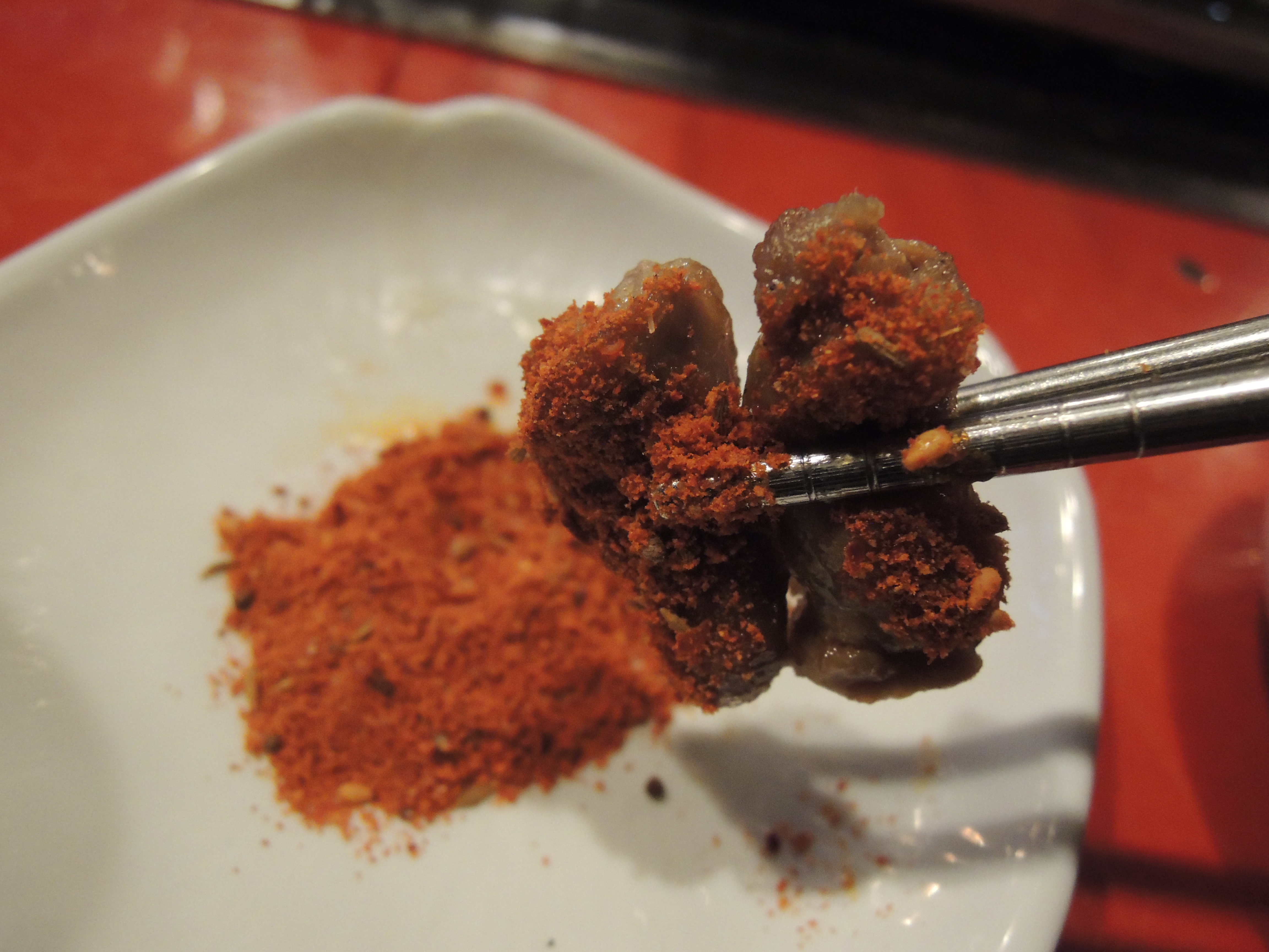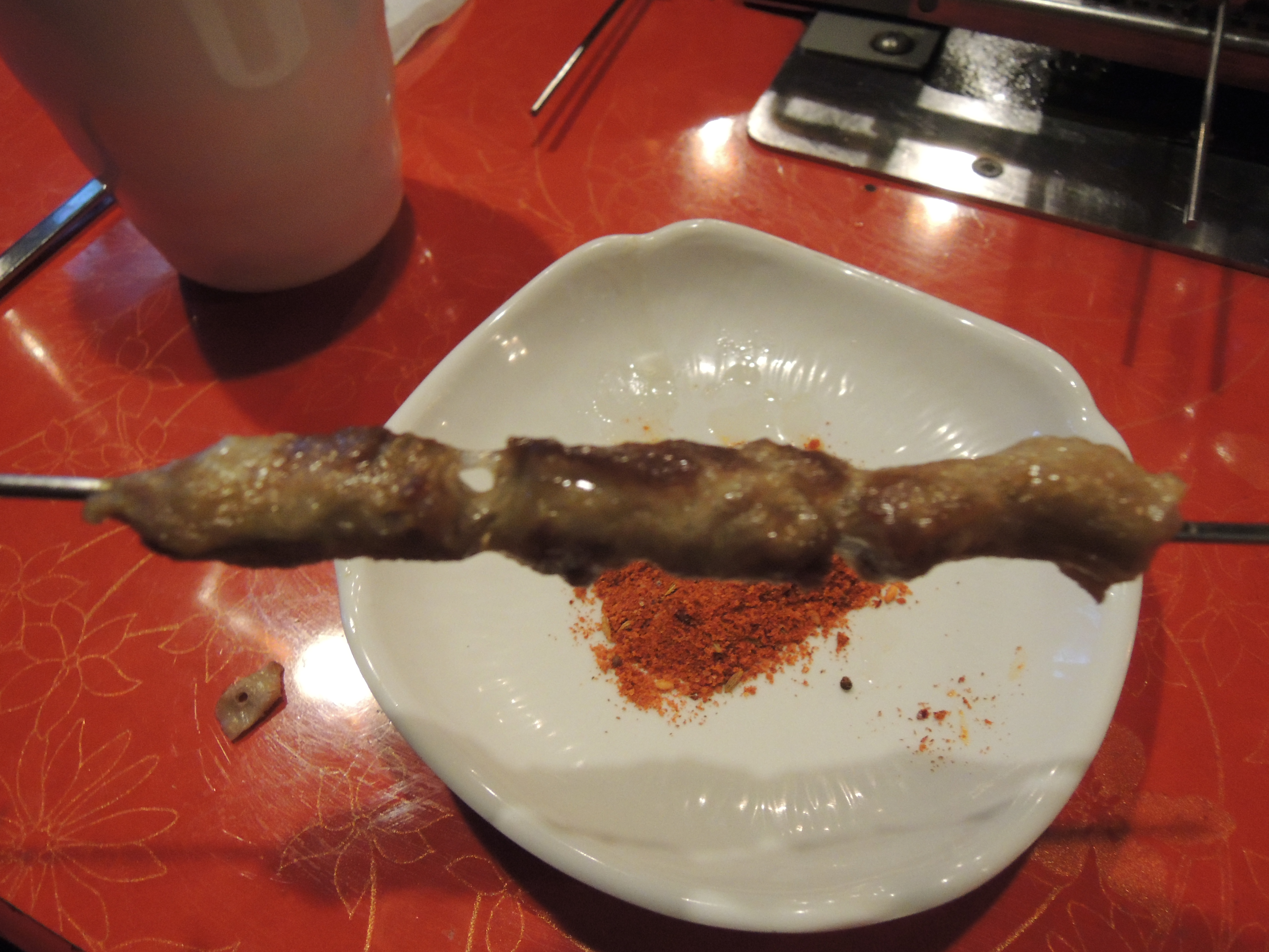 양꼬치를 쯔란? 향신료에 찍어먹습니다. 고기가 부드럽고 맛있어요.