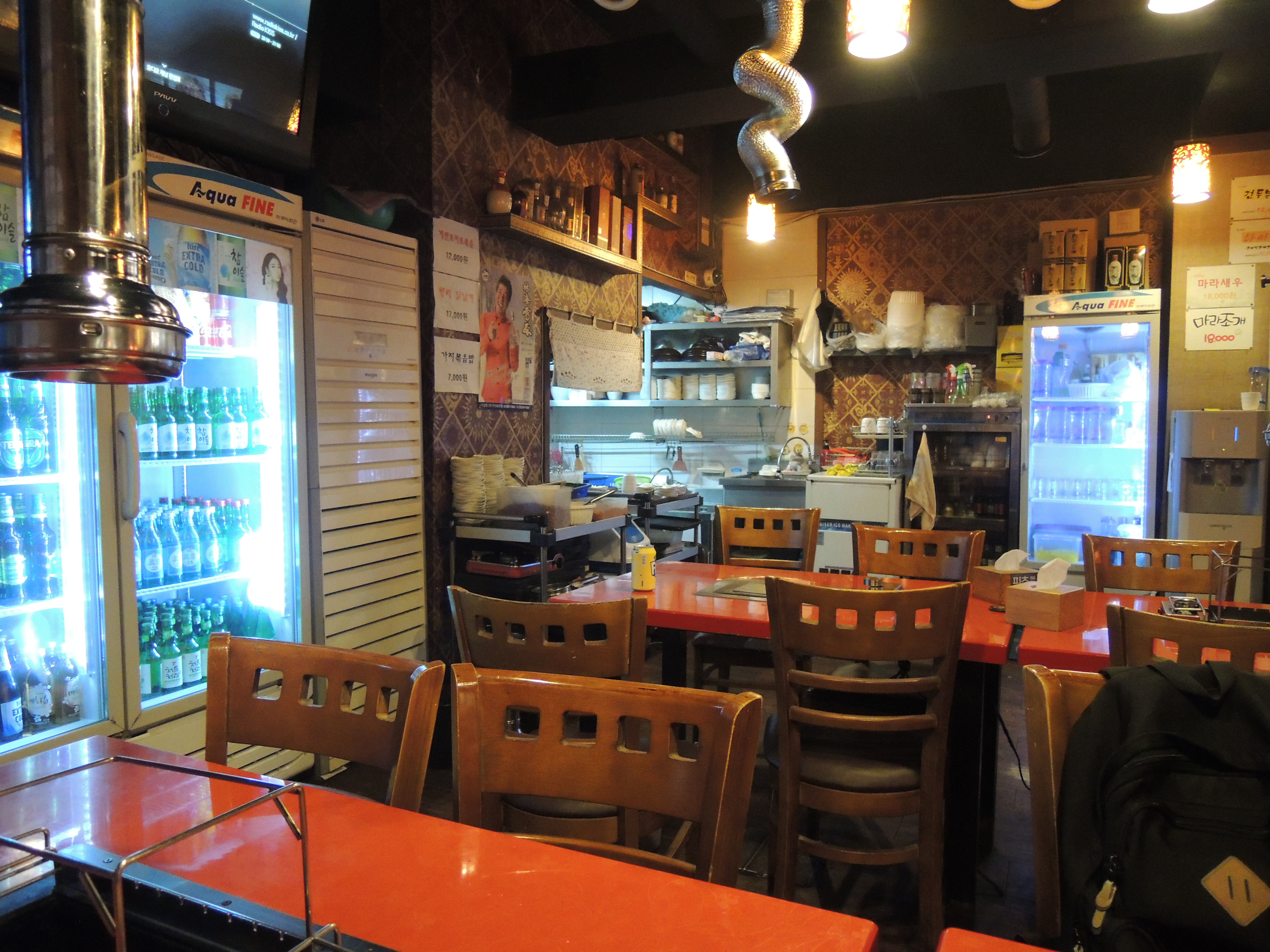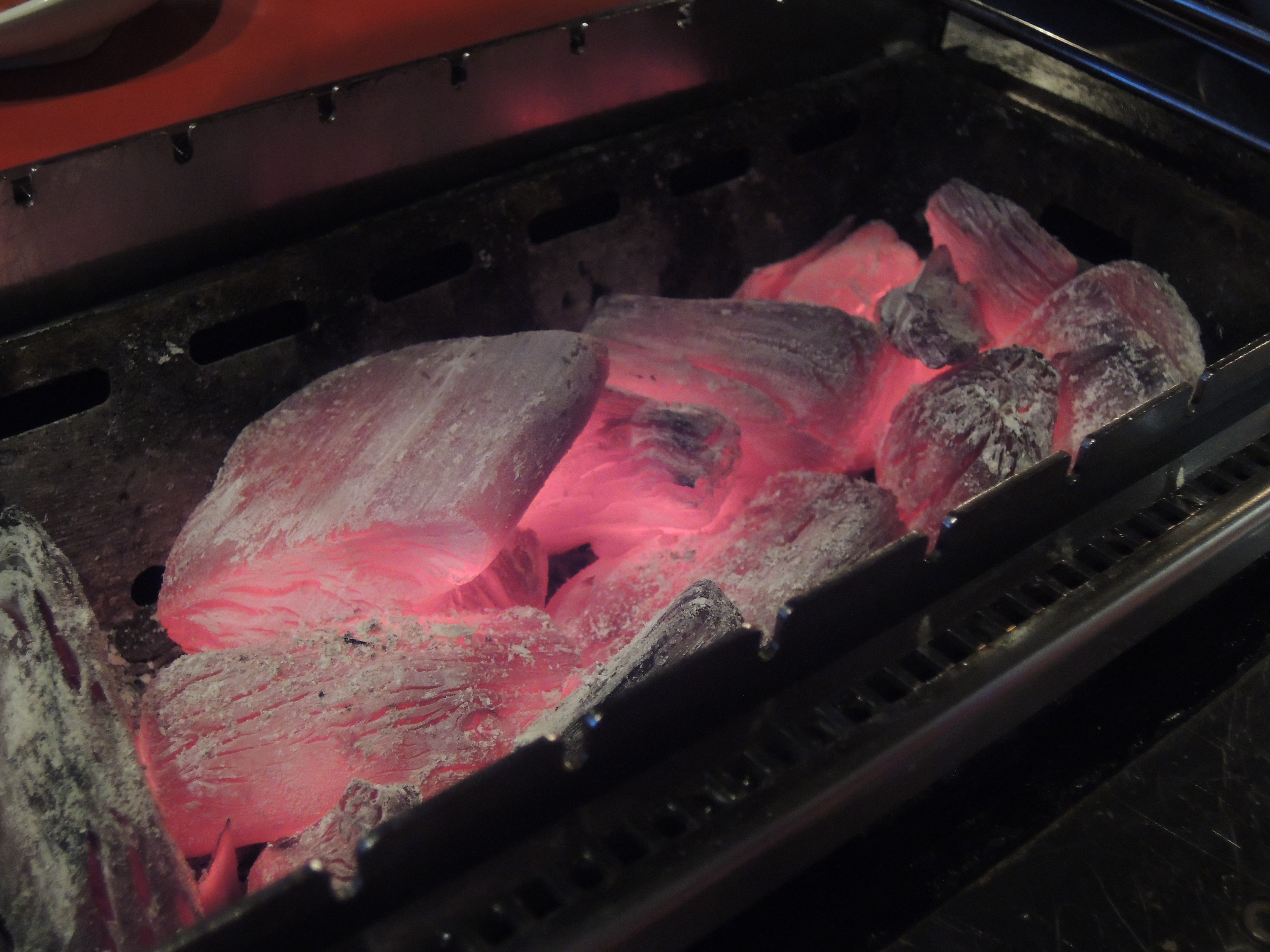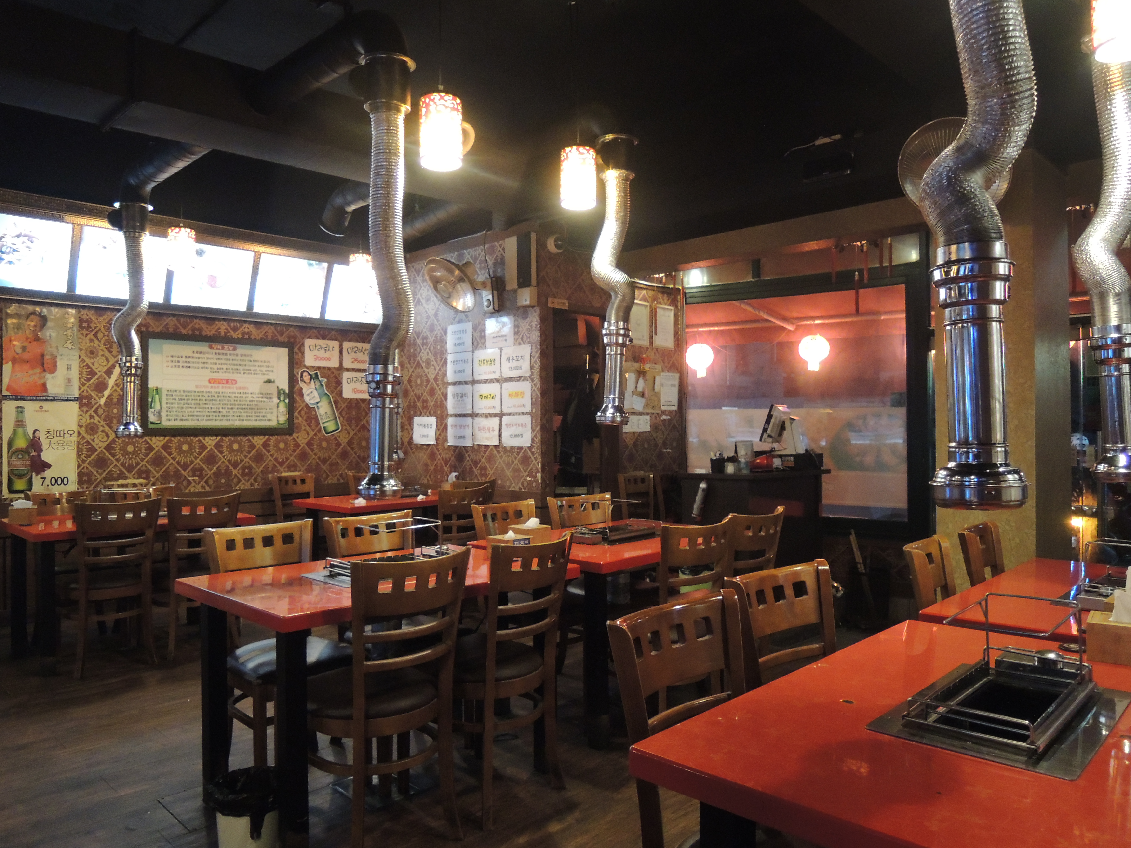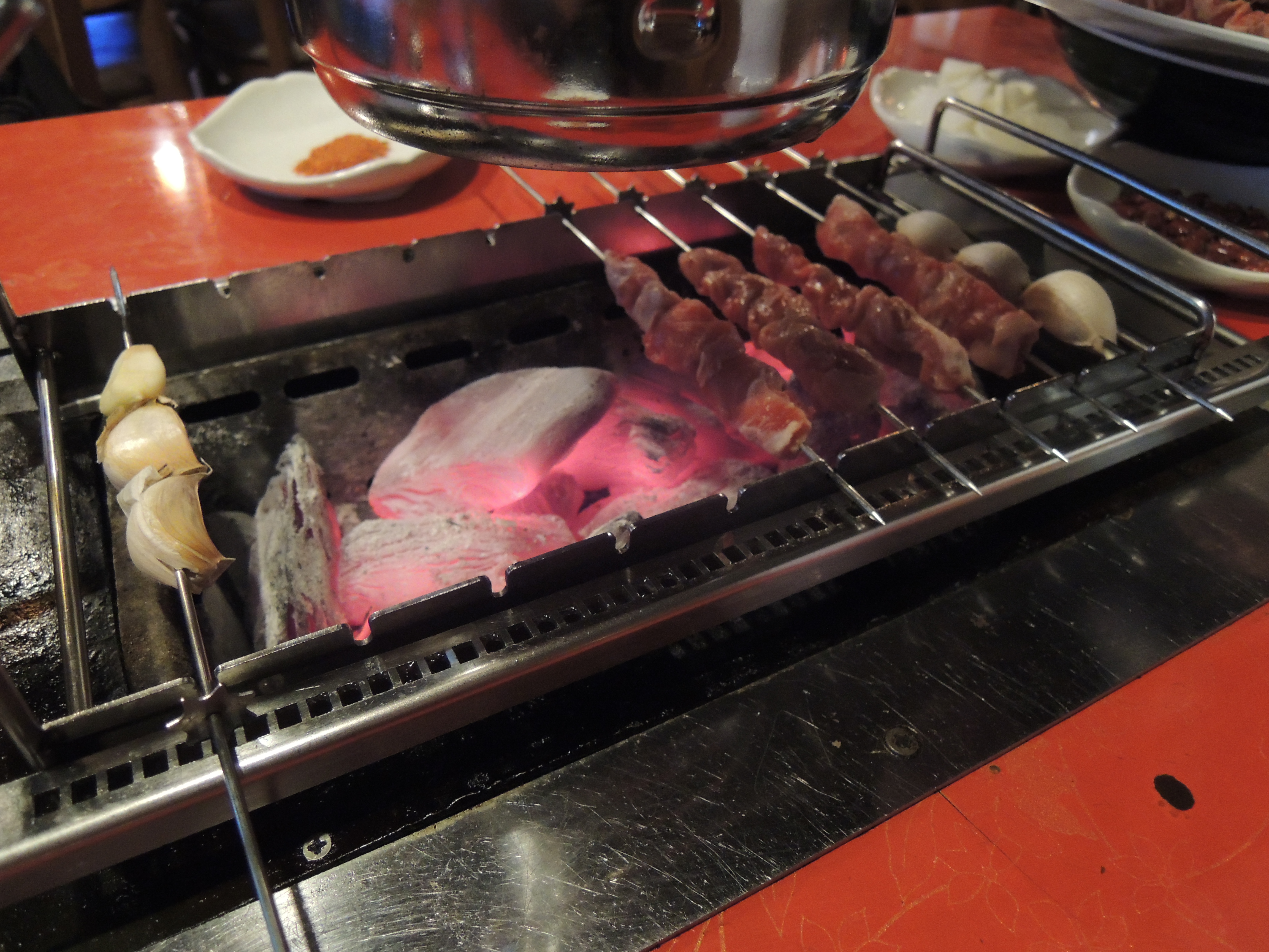 테이블중앙에 양꼬치굽는곳이 있고, 연기가 빠져나가는 배연설비도 잘 되어 있어요.