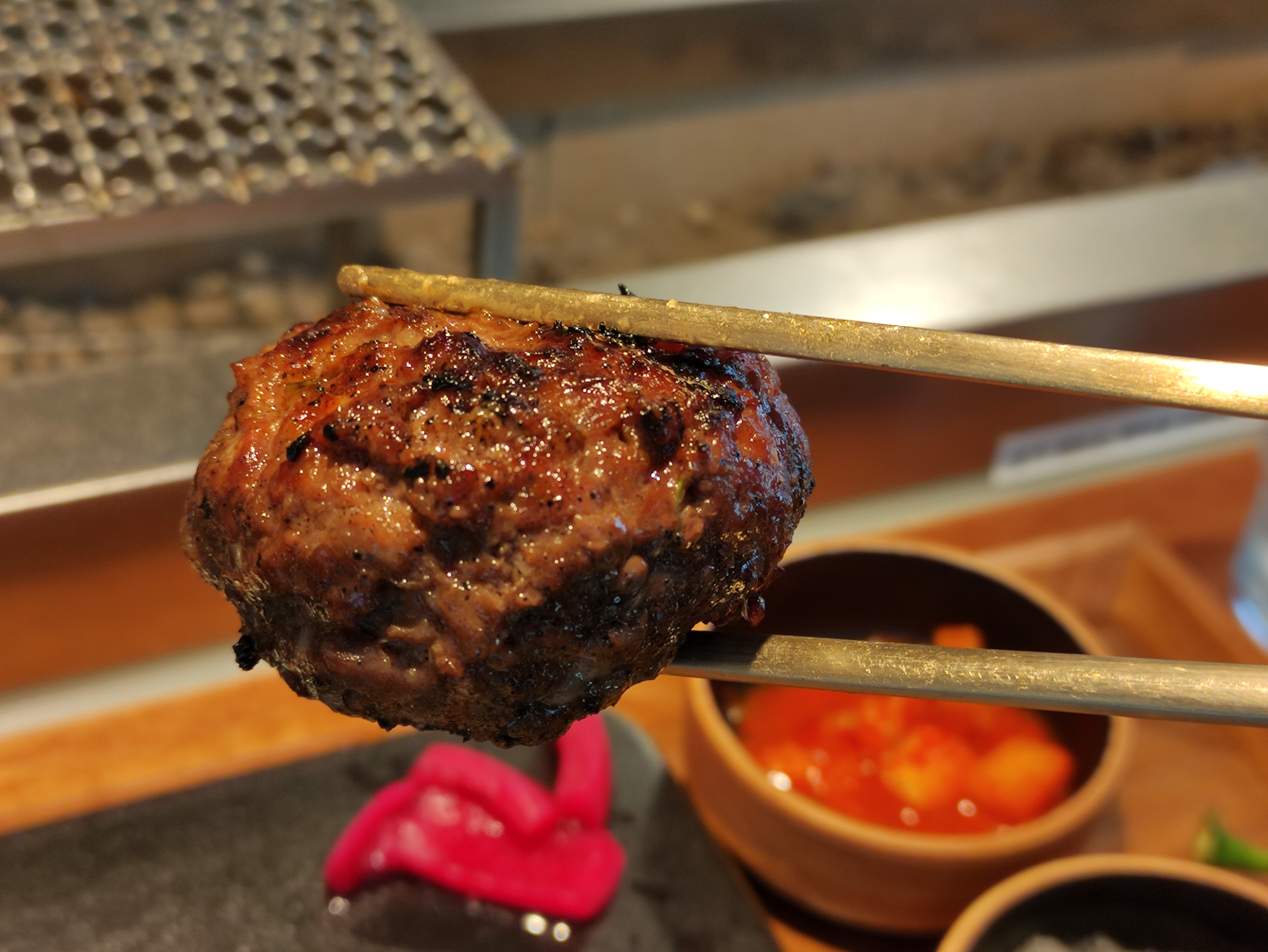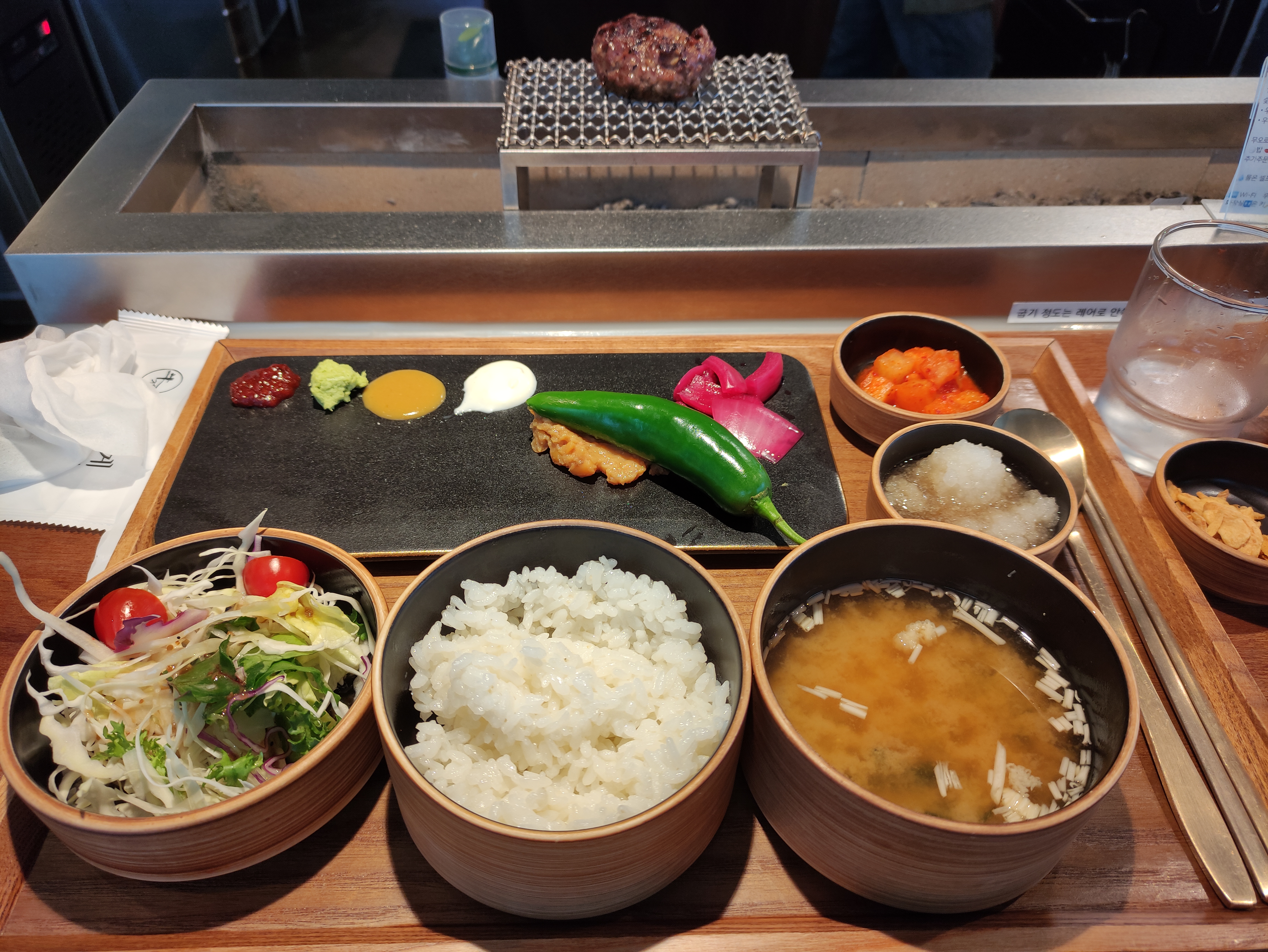가운데에 떡갈비를 굽는 그릴이 있고 거리서 쉐프님께서 직접 떡갈비를 구워주세요. 다 구운 떡갈비는 위 사진처럼 개인 그릴에 하나씩 올려주십니다. 메뉴는 떡갈비정식이 주메뉴에요 떡갈비하나만 정직하게 맛있게 만들고자하는 사장님의 의지가 보입니다.