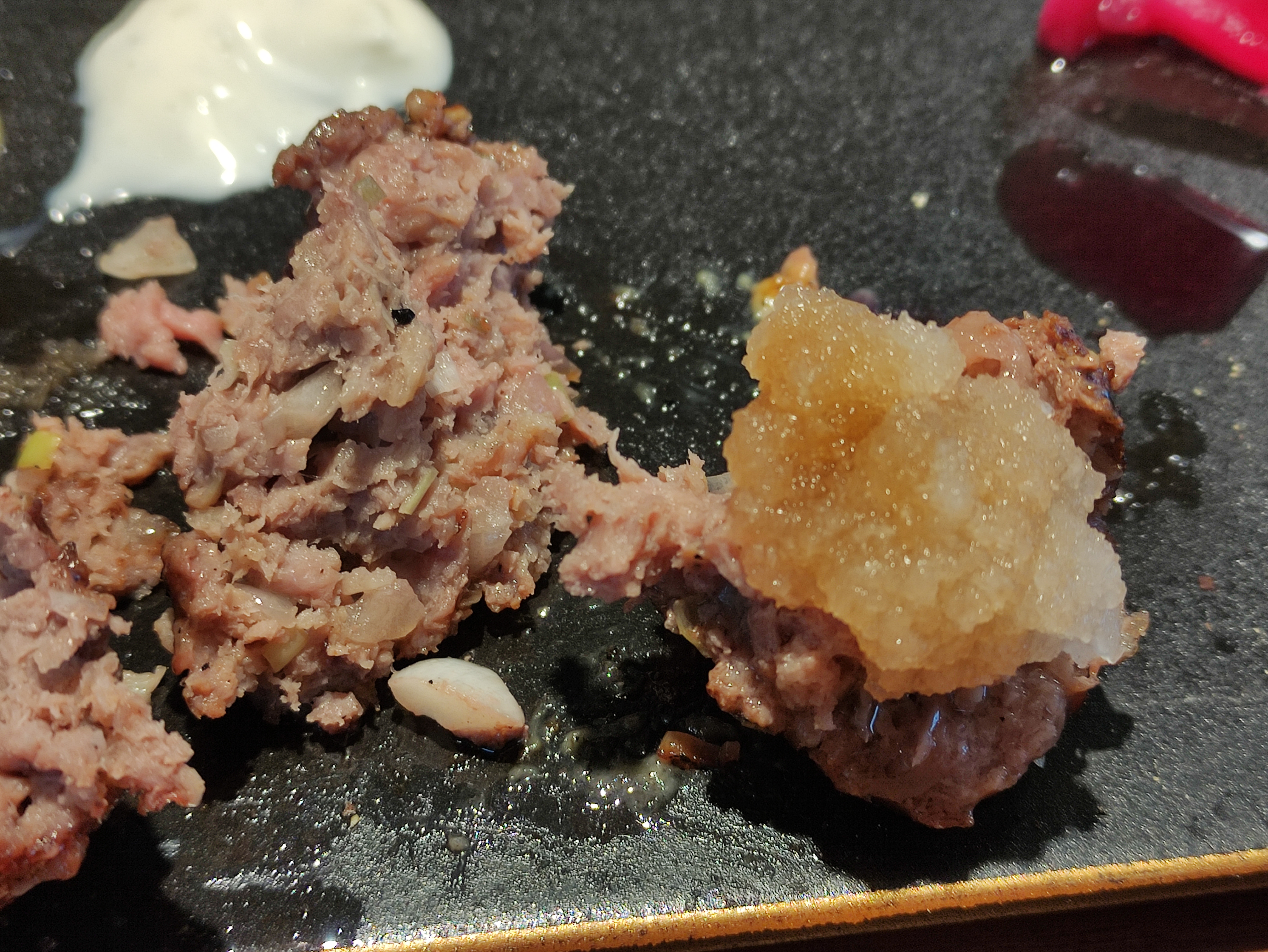 떡갈비를 같이주는 무우즙을 올려서 먹음 맛있게 즐길수있어요. 기본적으로 간이 되어 있지만 개인기호에 따라 개인자리에 있는 소금과 후추를 더 뿌려먹을수도 있습니다. 개인적으로 가운데 그릴에서 쉐프님이 직접 떡갈비를 구워서 각 좌석마다 하나씩 놓아주시는게 넘 인상적이고 좋았어요. 홍대에 오면 자꾸 떡갈비가 떠오를거같아요. 맛있게 잘 먹었습니다.