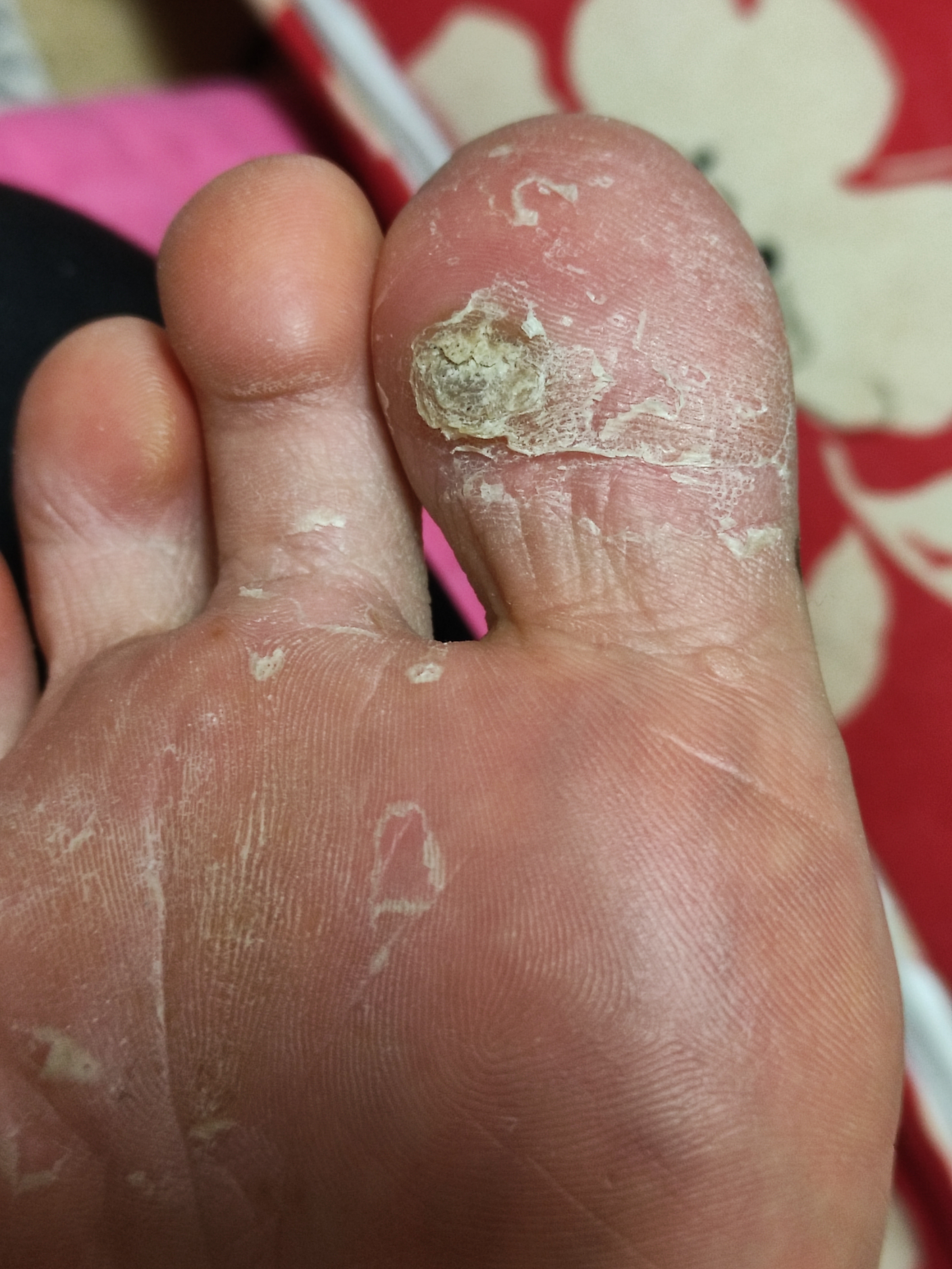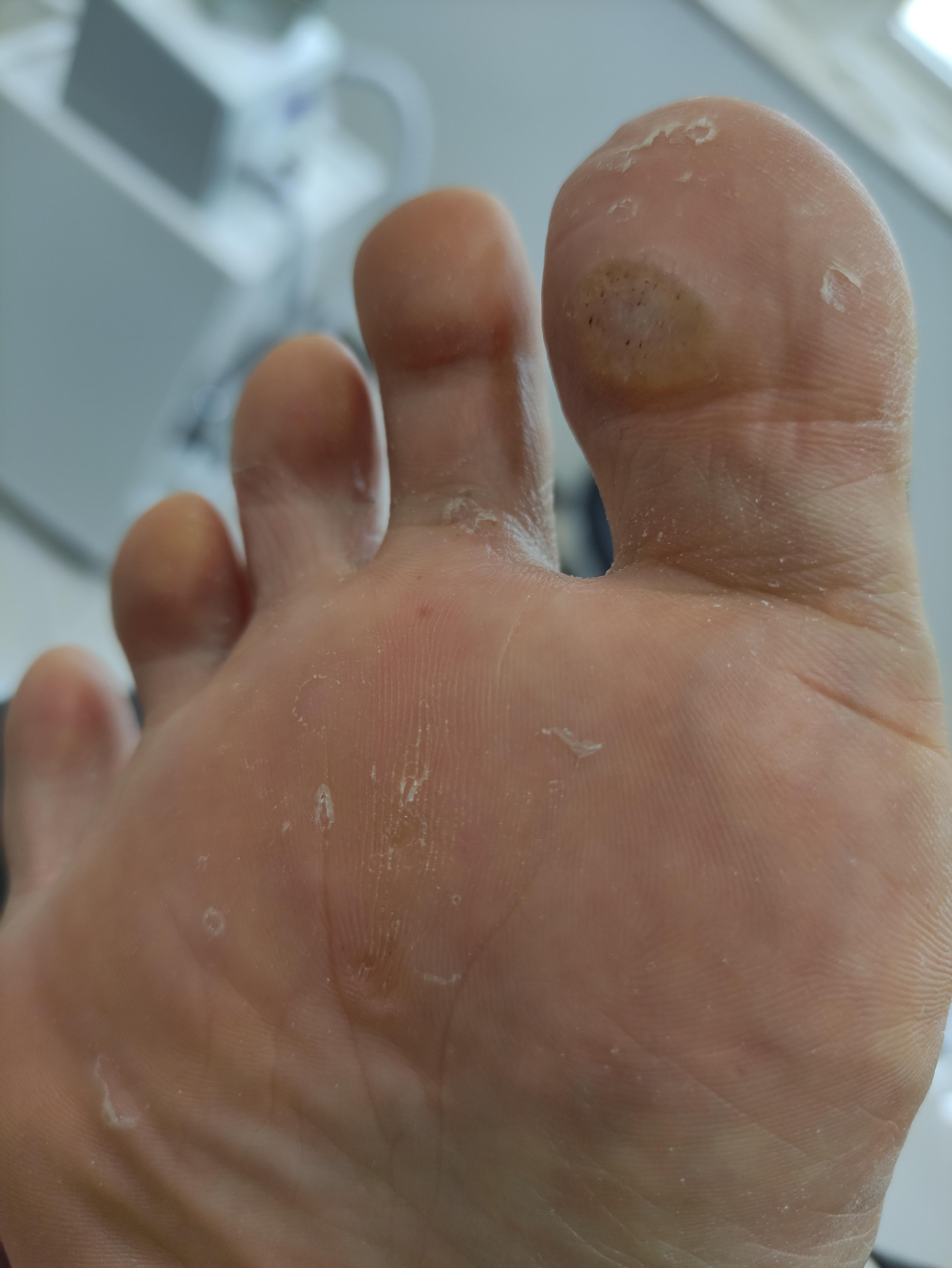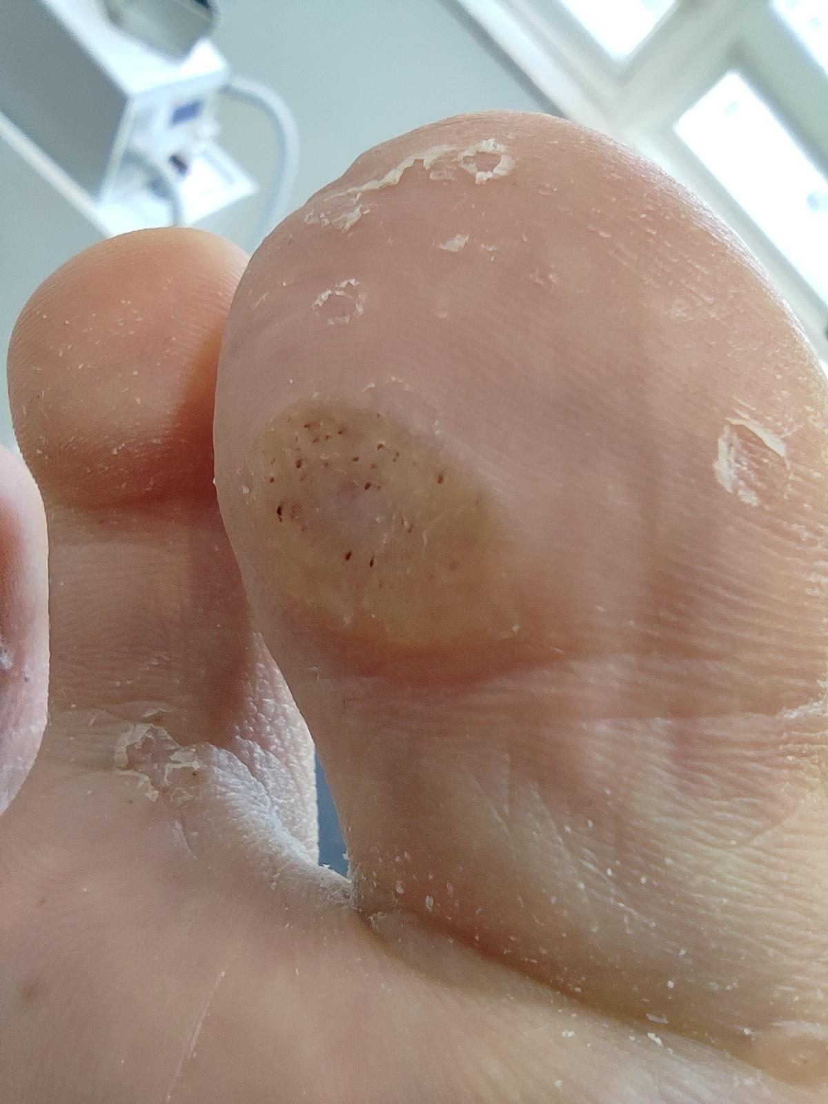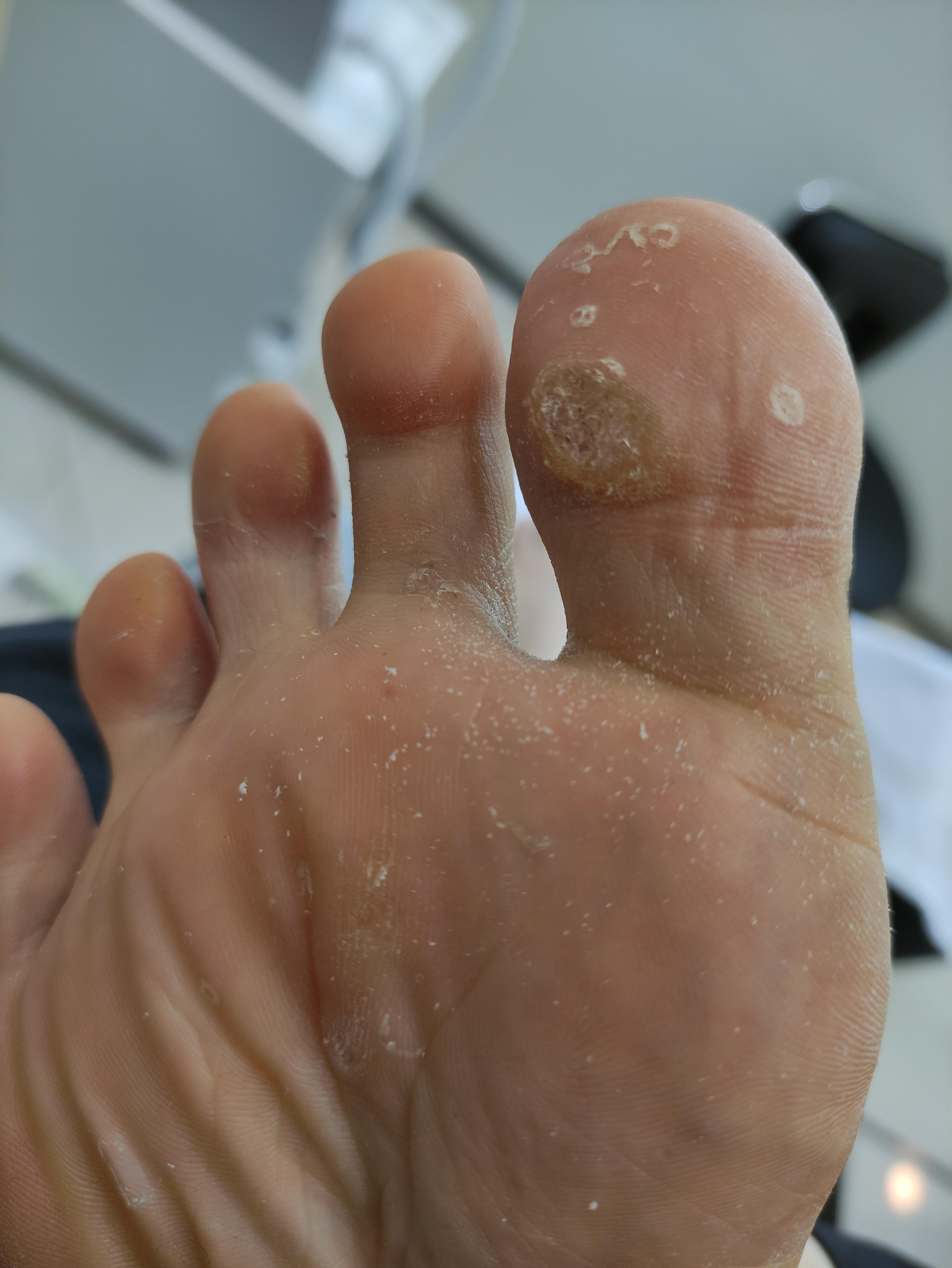 엄지발가락 티눈이라고 생각했죠. 근데 자꾸 굳은살이 올라오고, 떼려고 하면 통증이 있어서 안떼고 있다가, 피부과에 보여드렸더니 베루말용액?을 처방해주셨어요. 근데 바르고 나서도 굳은살이 더 심해지고 딱히 차도가 없어서, 저희동네에 발관리 전문점에 가서 굳은살부터 제거해야겠다고 마음먹었어요. 그래서 방문했죠.