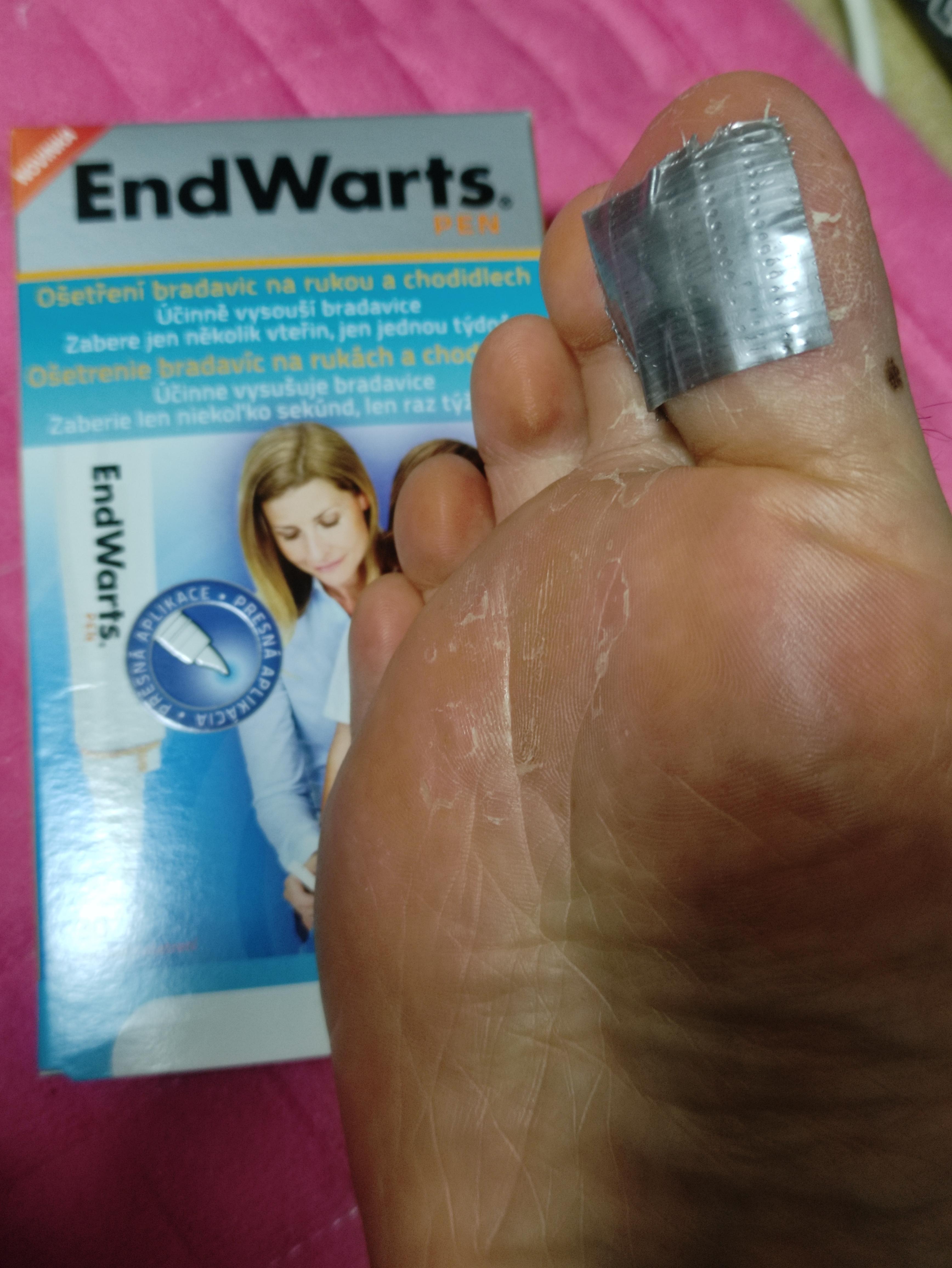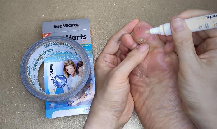 엄지발가락 사마귀에 엔드와츠를 바르는 모습이에요.