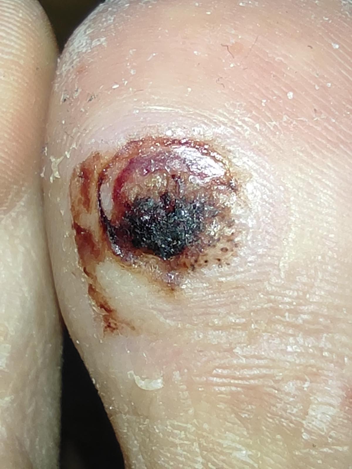 이 날 샤워를 하고 나와 엄지발가락을 보니 사마귀 부위가 저도 모르는 새 뚜껑이 열려있더라고요.