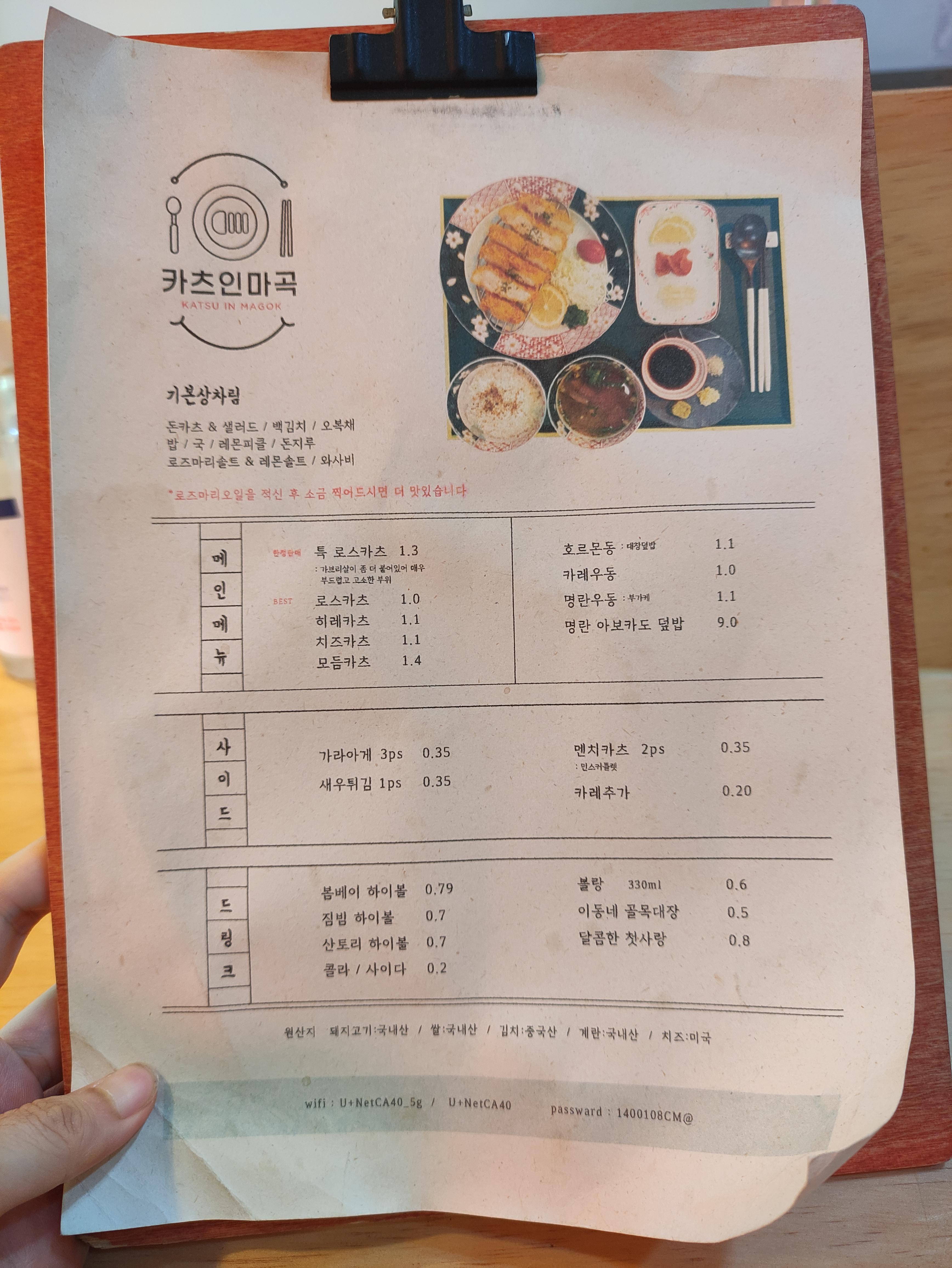 메뉴판입니다. 저는 등심카츠와 히레카츠, 그리고 사이드메뉴로 가라야게를 주문했습니다.