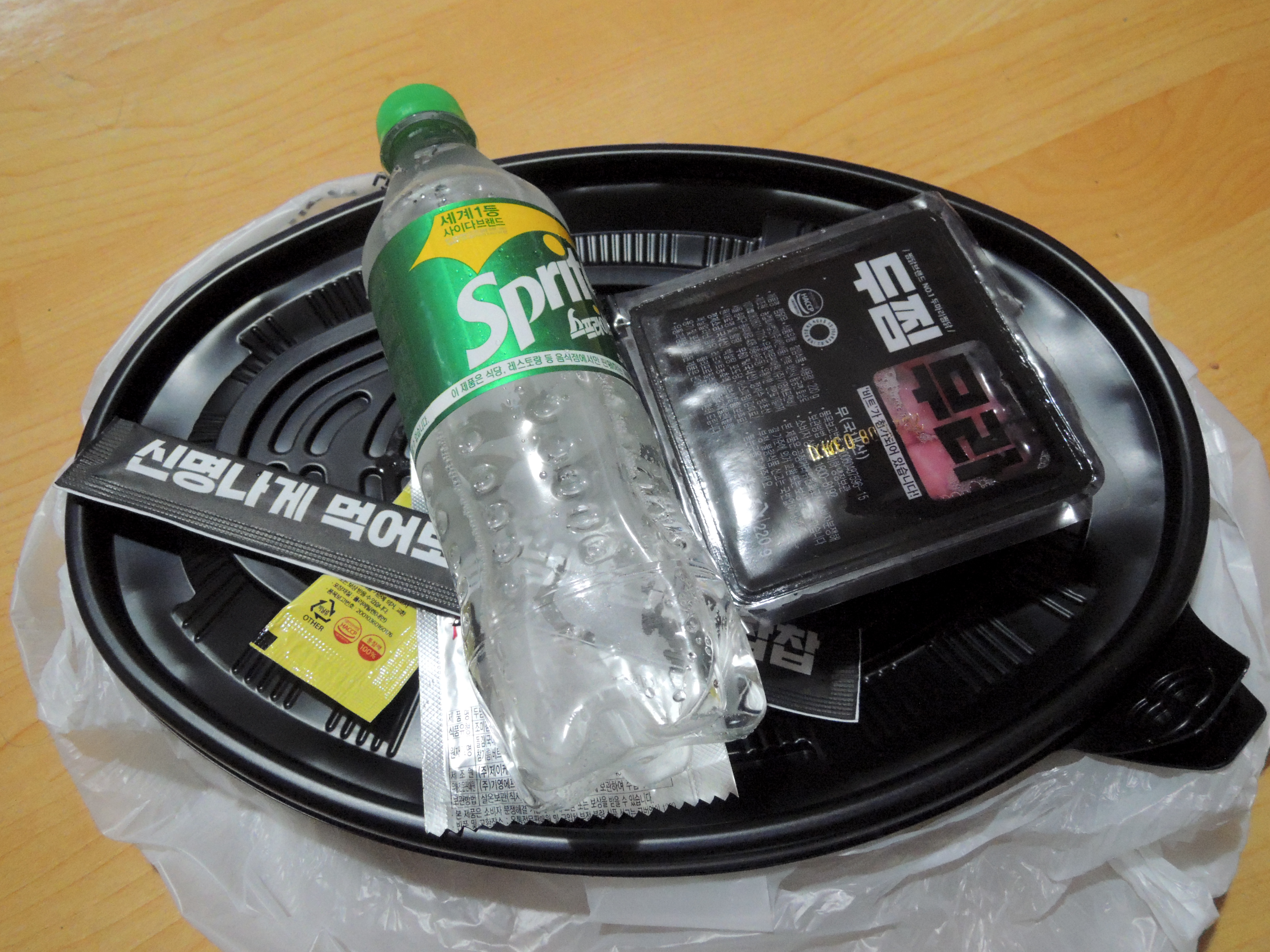 두찜에서는 찜닭무, 그리고 찜닭을 다 먹고 밥비벼먹을수 있게 김가루와 소스를 줍니다. 음료는 저는 사이다를 먹었어요.