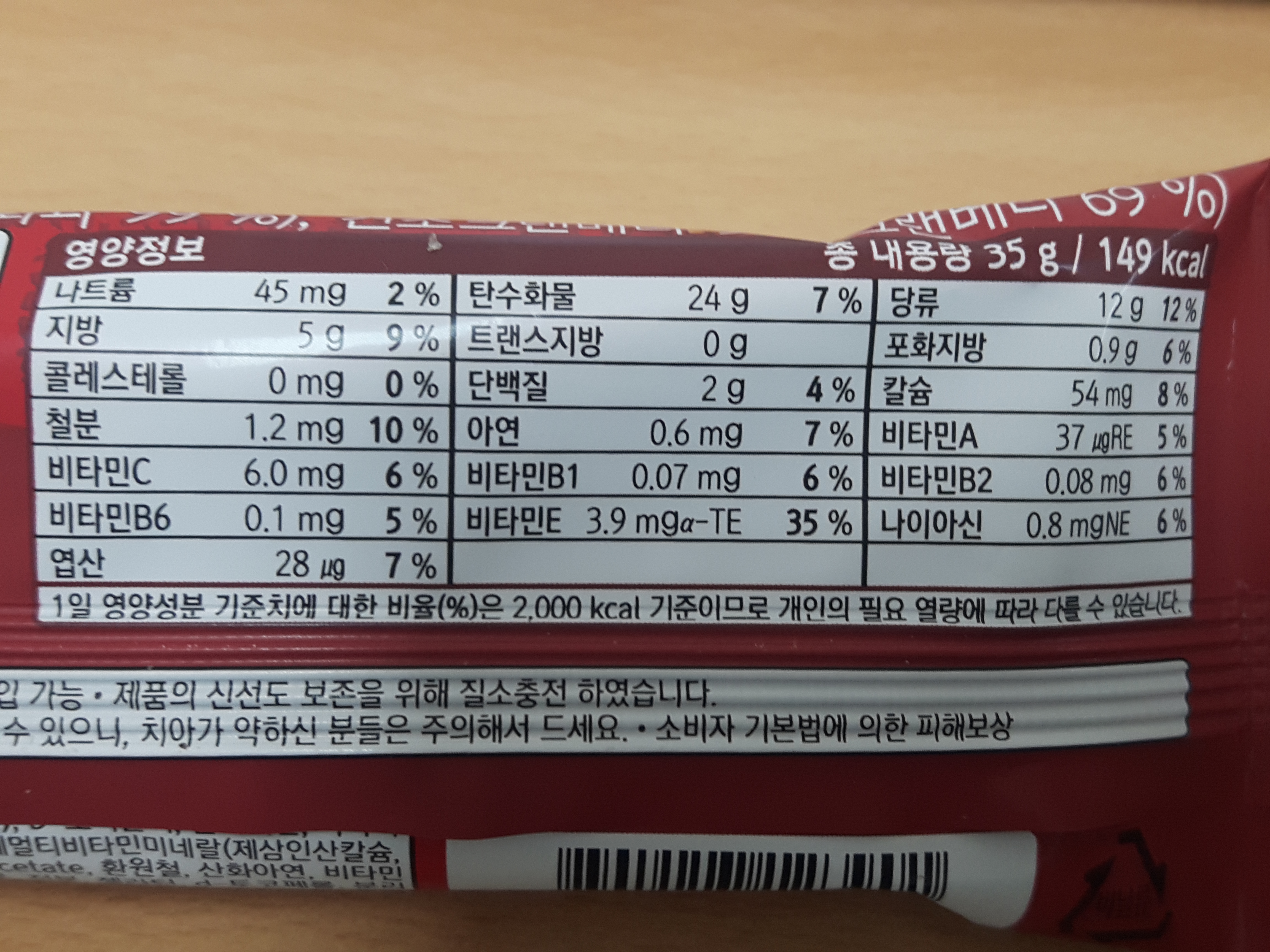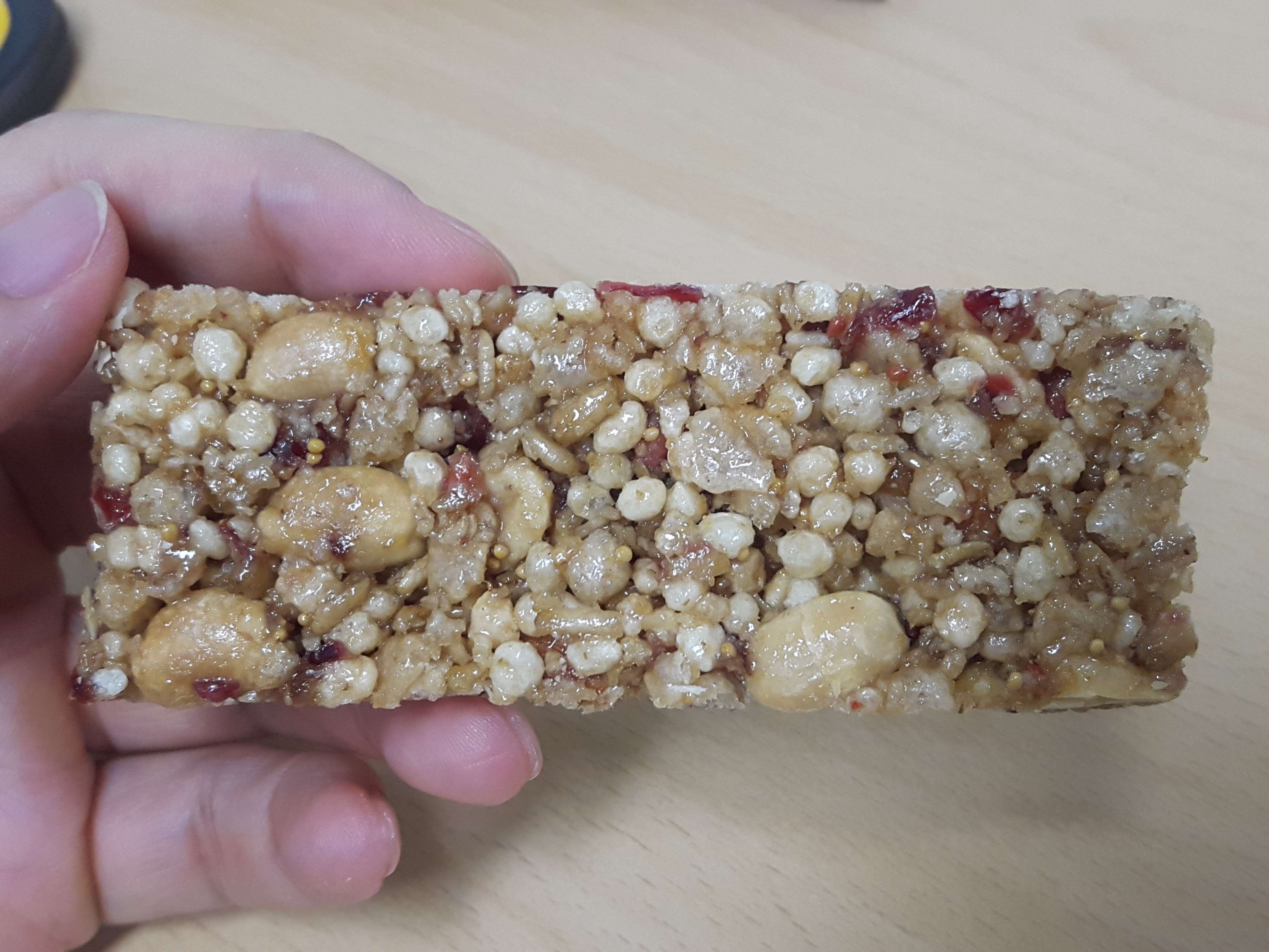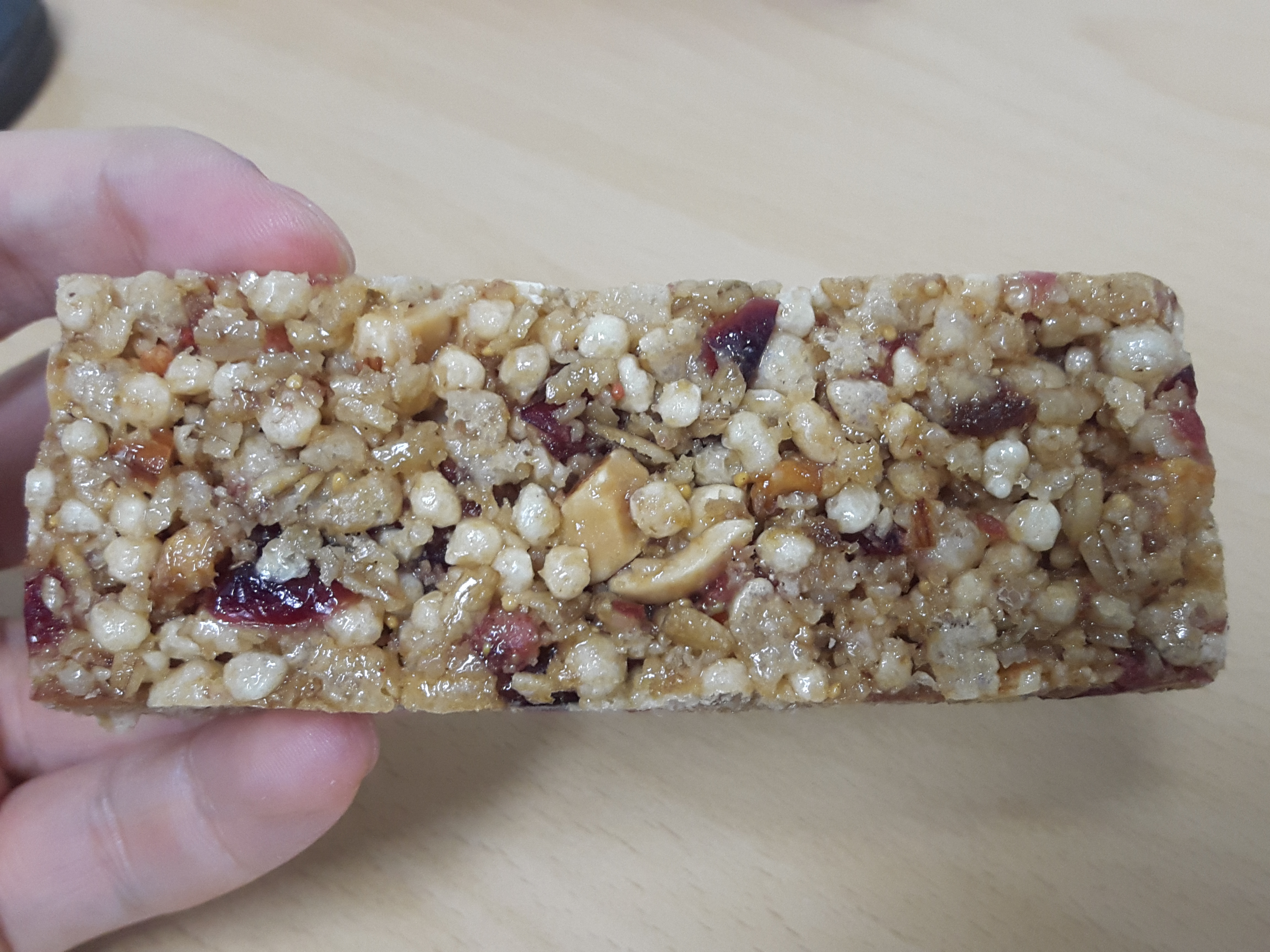 원재료는 크리스피오트, 올리고당, 건조크렌베리, 땅콩 등등 입니다.