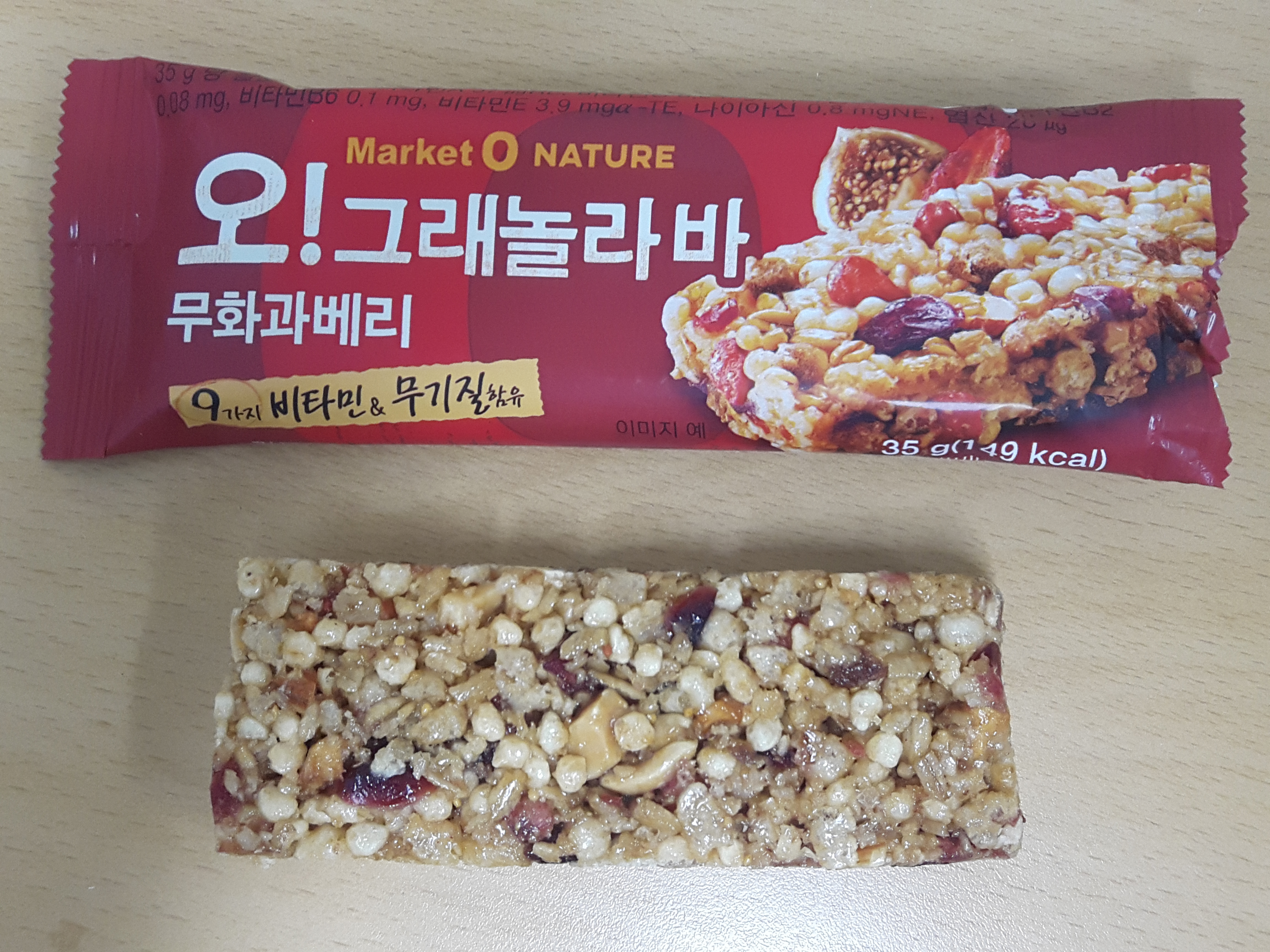 마켓오에서 출시한 오 그래놀라바 무화과베리를 먹어봤어요.