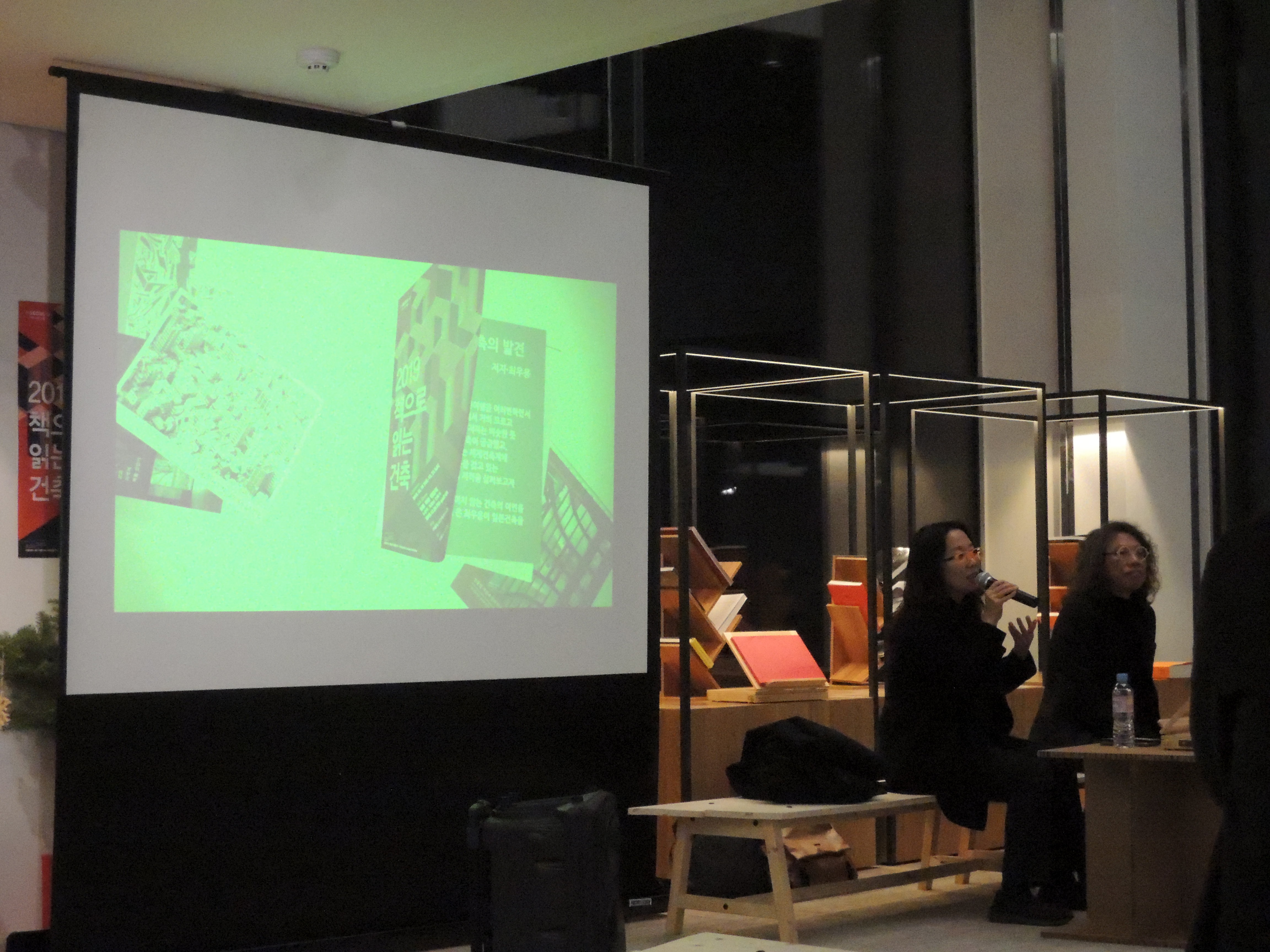 도시건축쪽에 책을 쓰신 작가님 및 건축 관계자 분들과 모여서 대담하는 방식의 세미나입니다. 이때만 해도 코로나가 없을 시기라 다들 마스크를 쓰지 않았었죠. 지금 보면 참 낮선 풍경입니다.