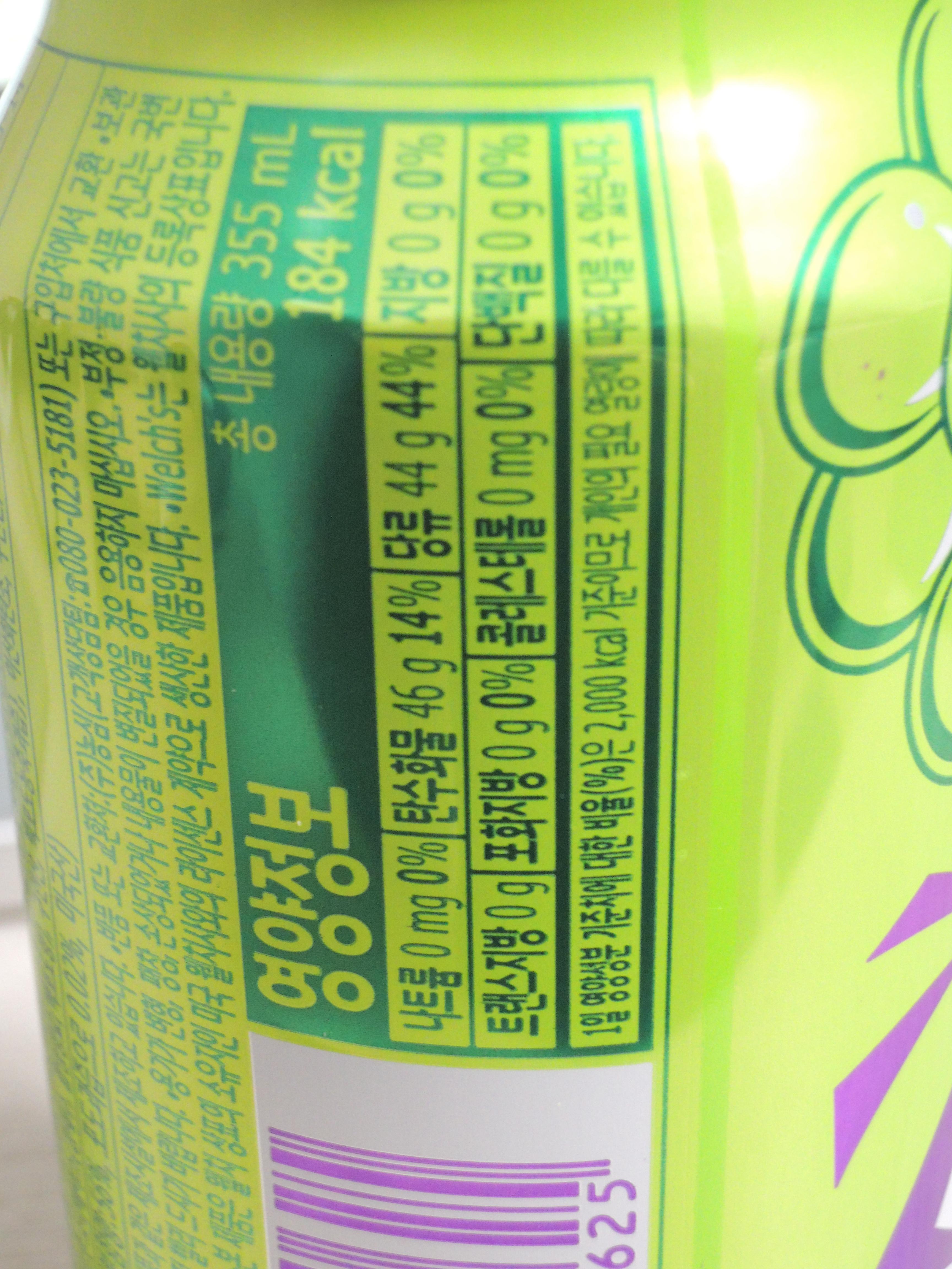 맛을봤을때는 예전 포도맛 웰치스보다 신맛이 좀 덜한거 같고요. 음 사실 포도맛웰치스도 먹은지 오래 돼서 맛을 비교하는게 큰 의미가 없겠군요. 어쨌든 뚱뚱한 캔에 들어있어서 많이 먹을 수 있는게 장점인듯합니다. 나이를 먹어서 탄산음료 많이 못먹겠어요. 학생땐 피자먹으면서, 햄버거 먹으면서 무조건 한캔이상 먹었는데 참 세월이 야속하네요. ㅎㅎ;