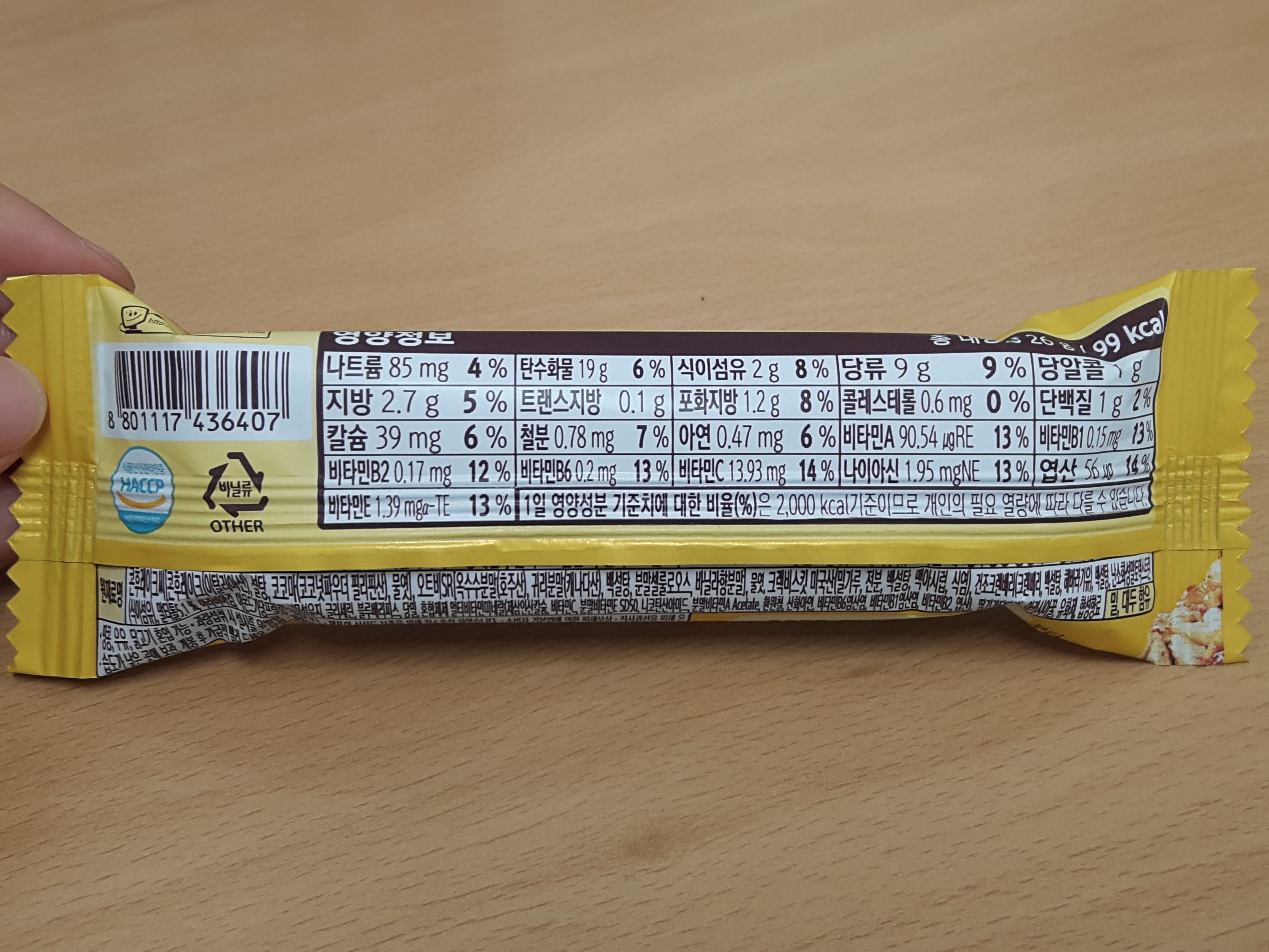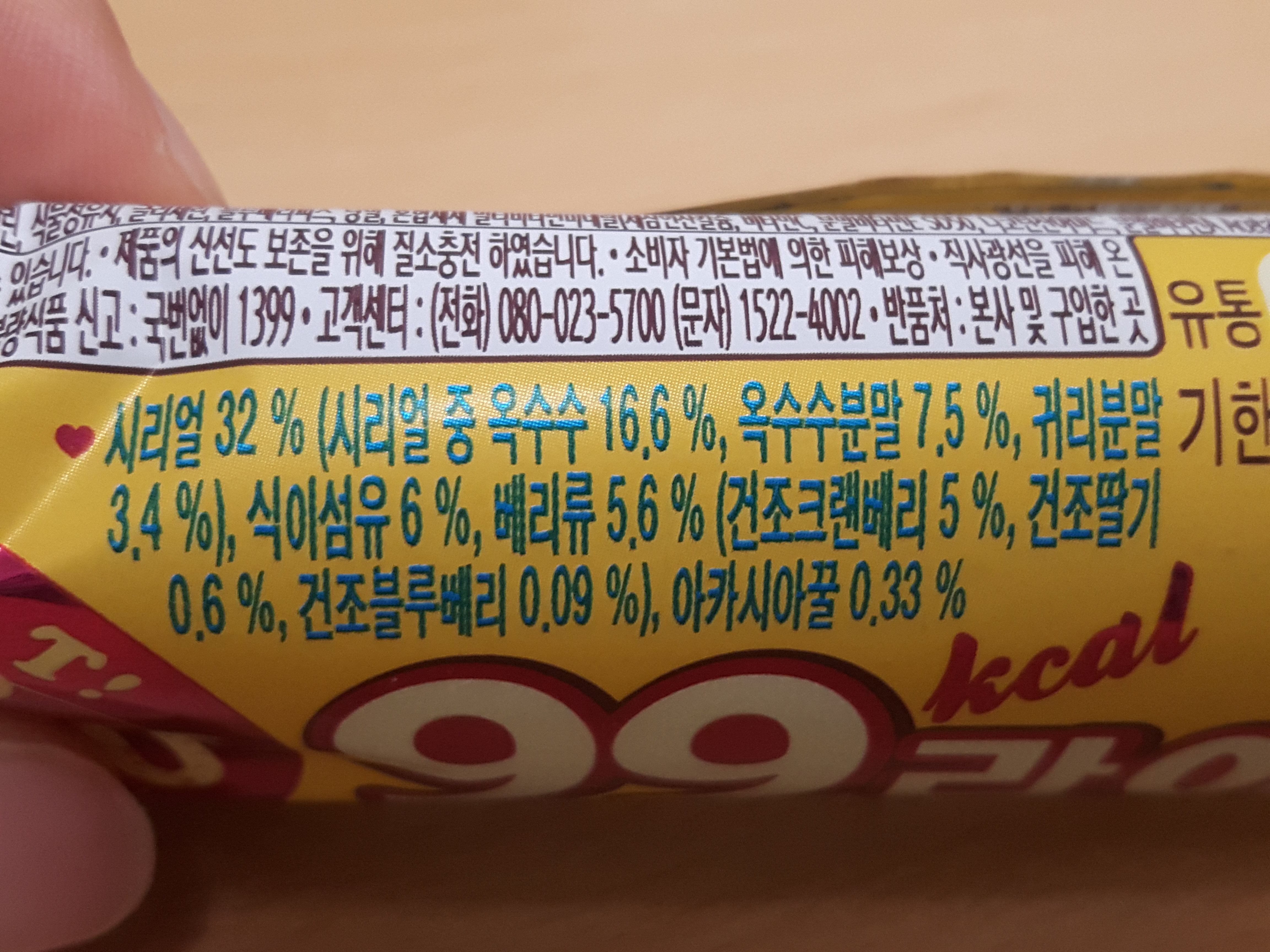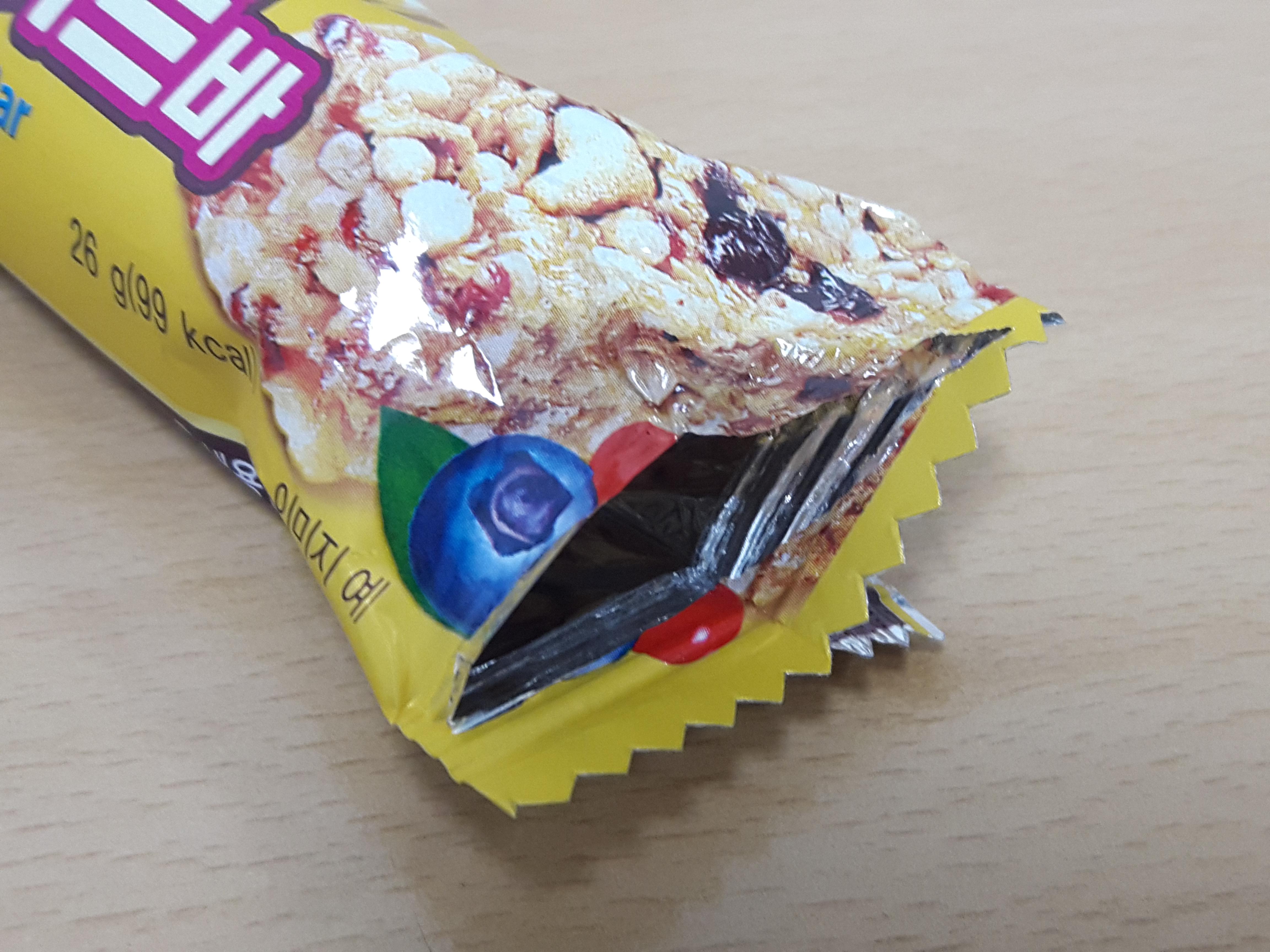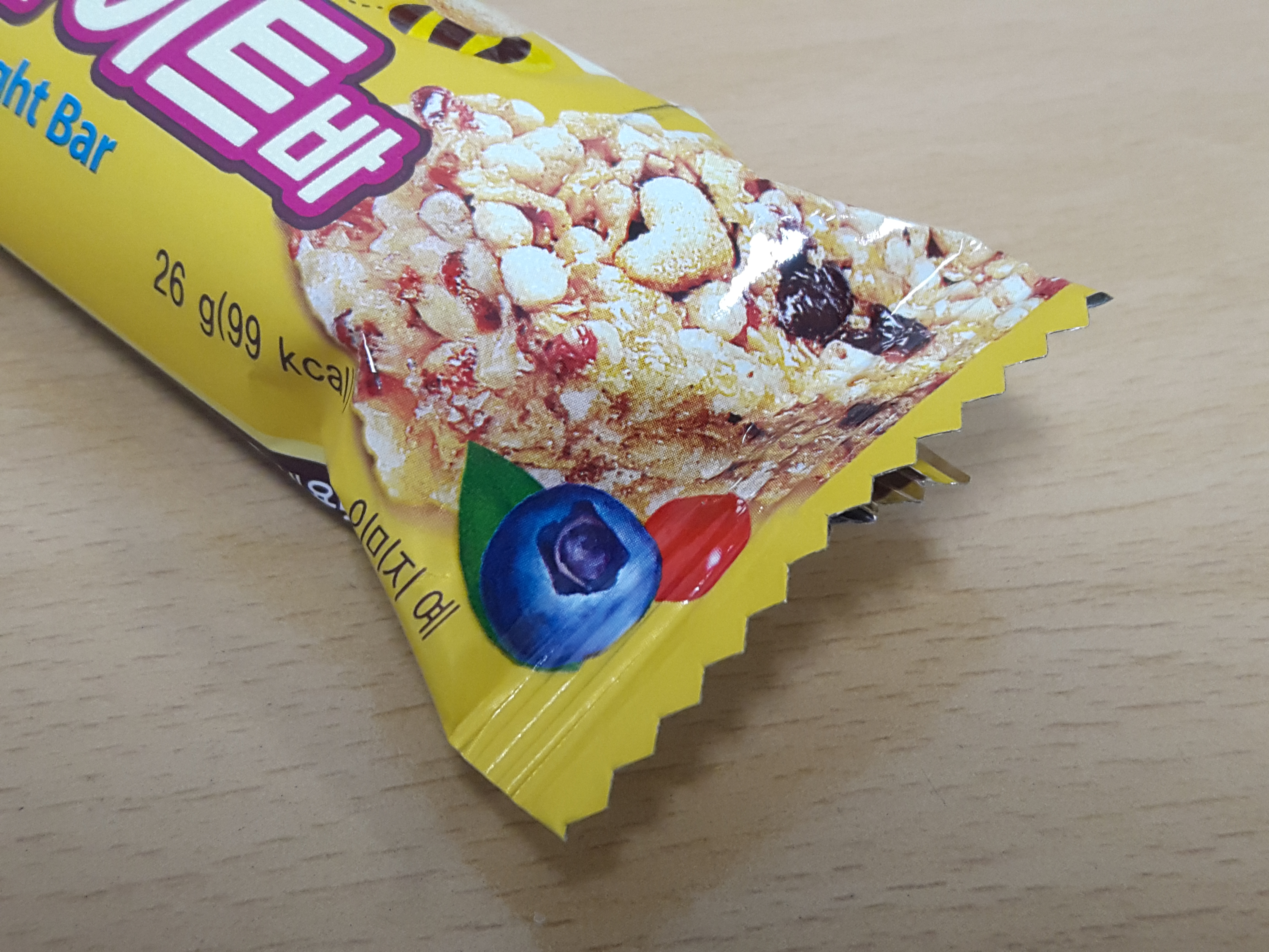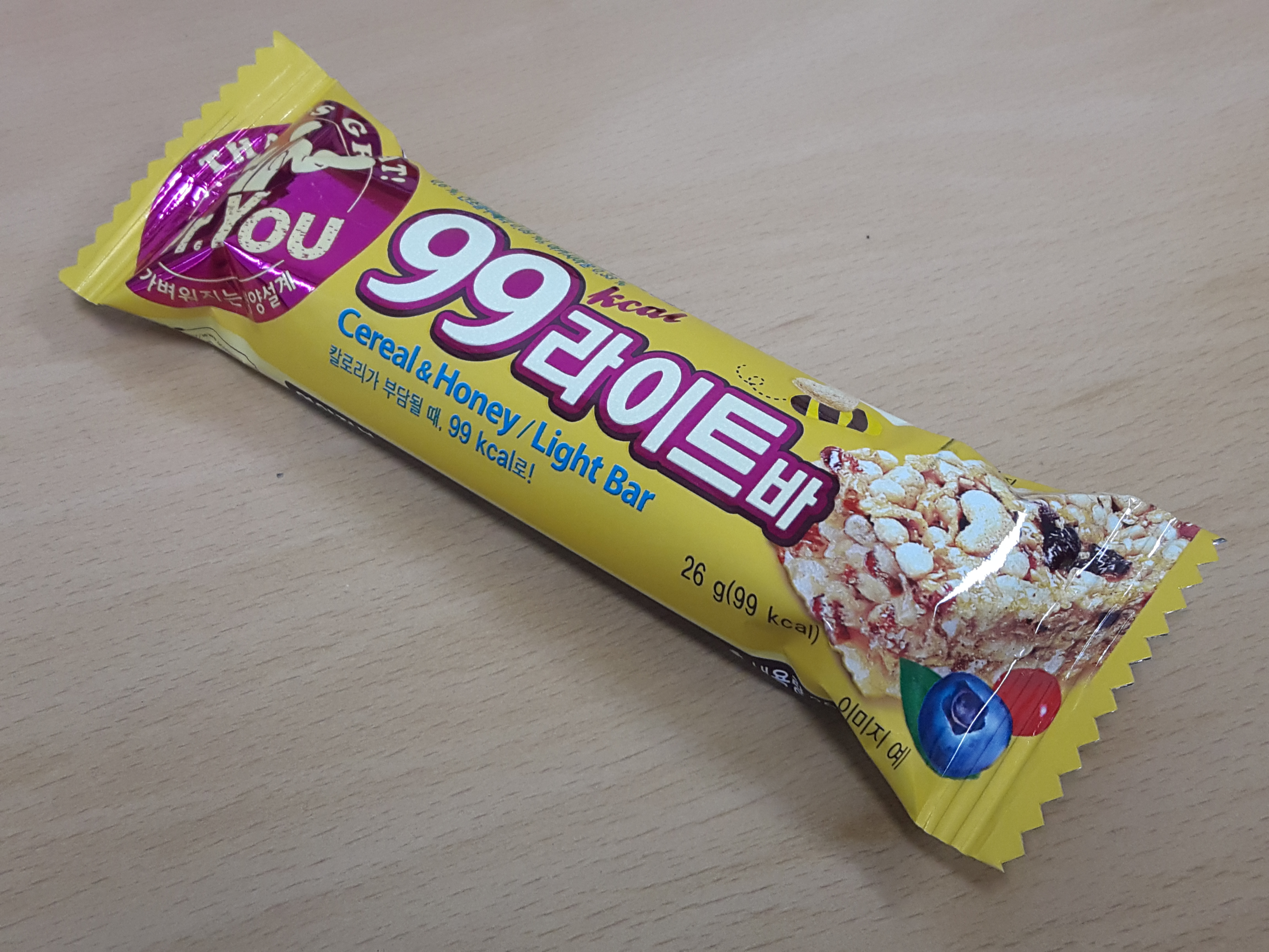 99에너지바입니다. 보통 초코바와 달리 시리얼로되어있는 시리얼바에요.