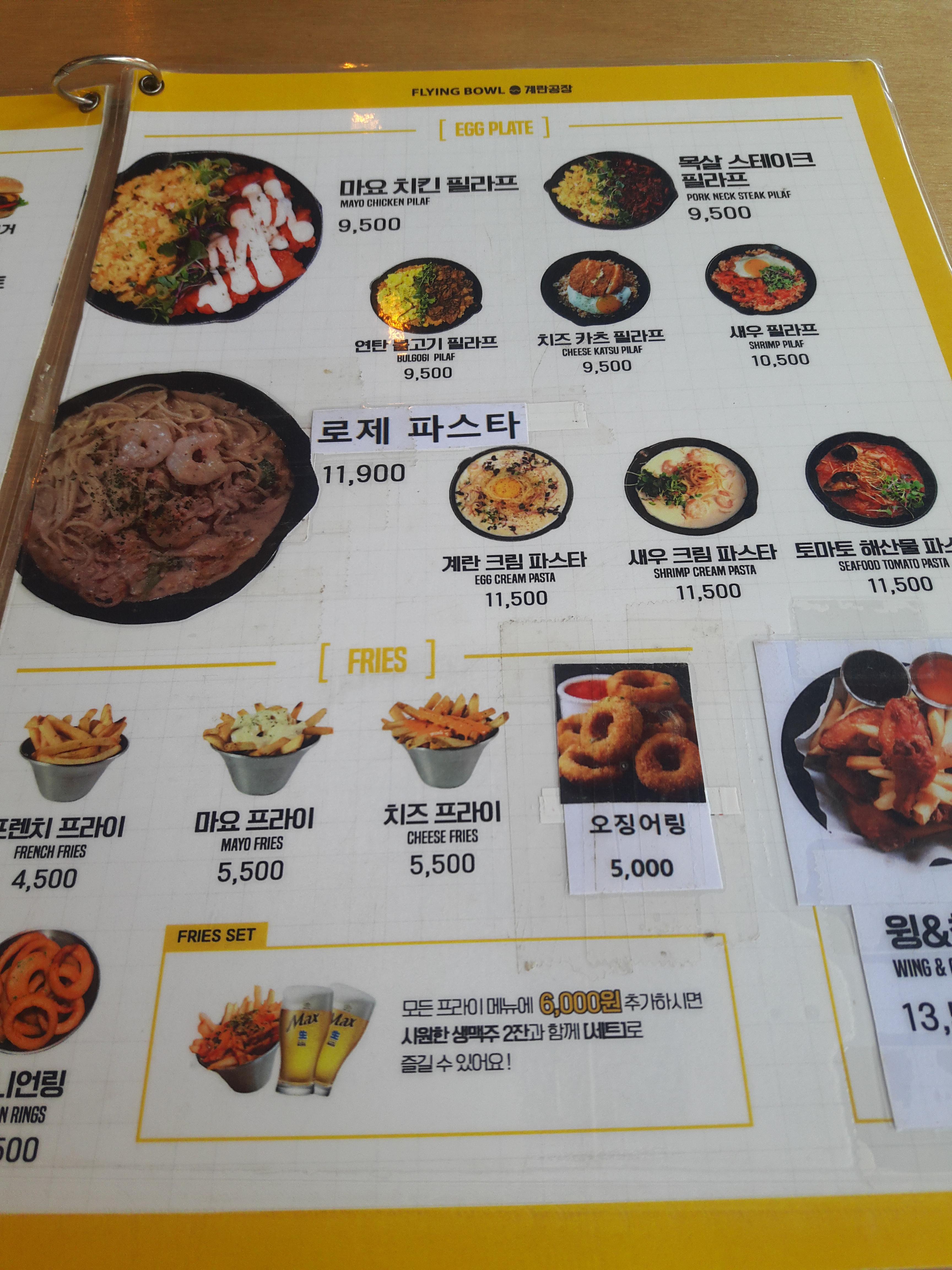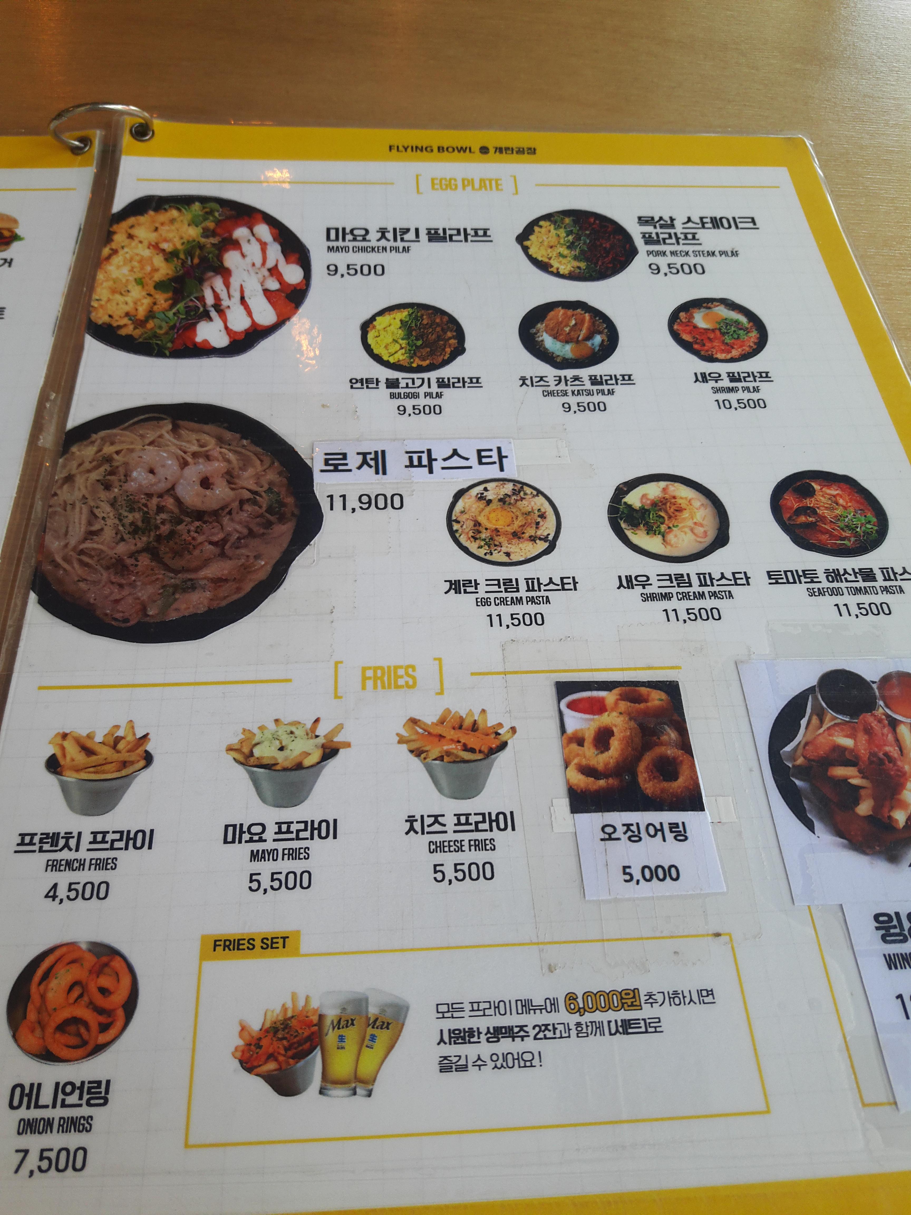 예전에 대학 연구실에 있을때 점심에 가서 먹었어요. 공리단길이라고 해서 학교앞에 기차길이 있는데 더이상 다니지 않는 철길이 새로운 카페거리가 되었죠. 플라잉볼도 그 카페거리에 위치한 파스타와 피자를 파는 맛집이에요.