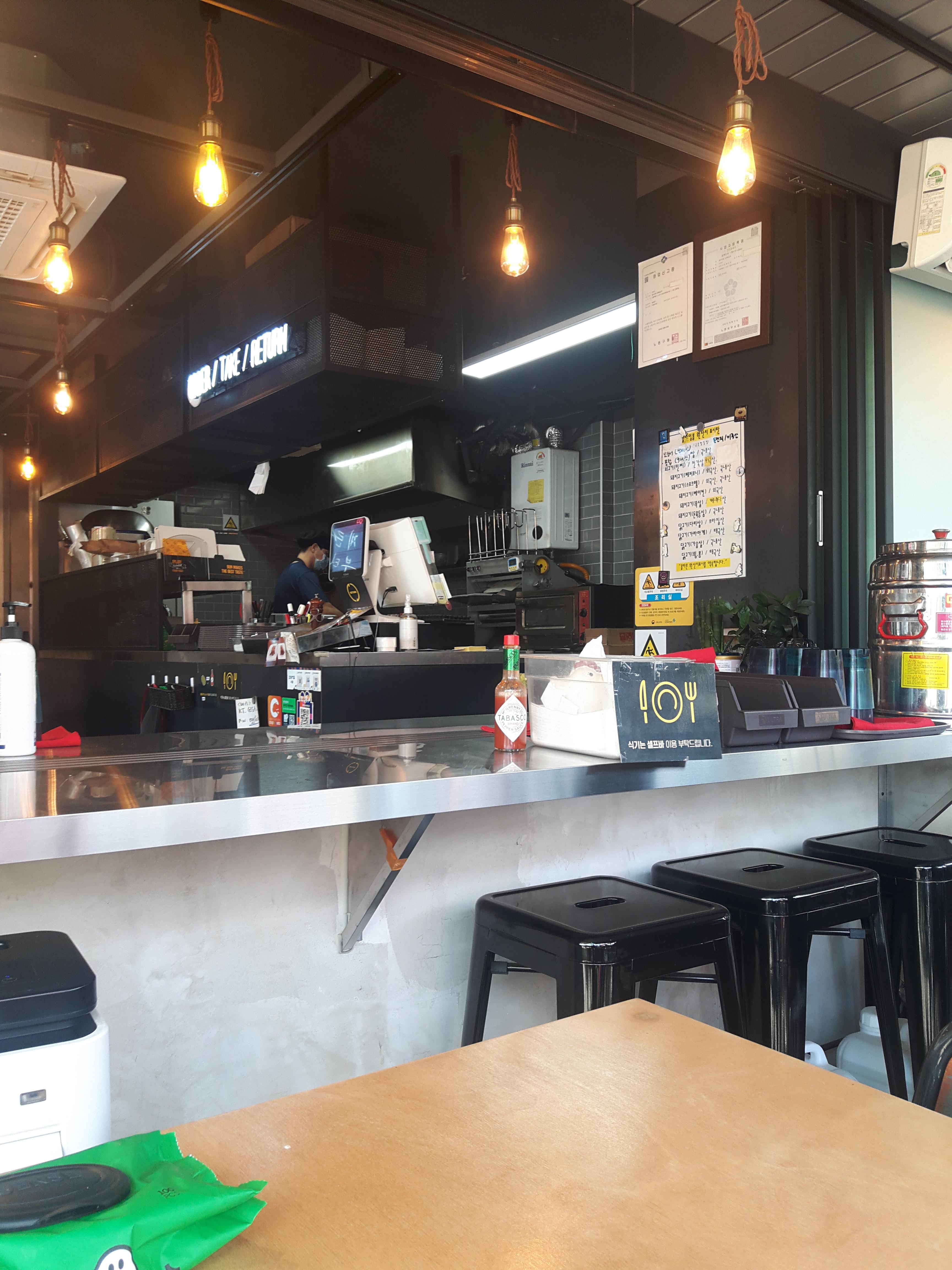 안쪽에도 좌석이 있고, 바깥쪽에도 야외석이 있어요. 약간 펍같은 느낌이네요.