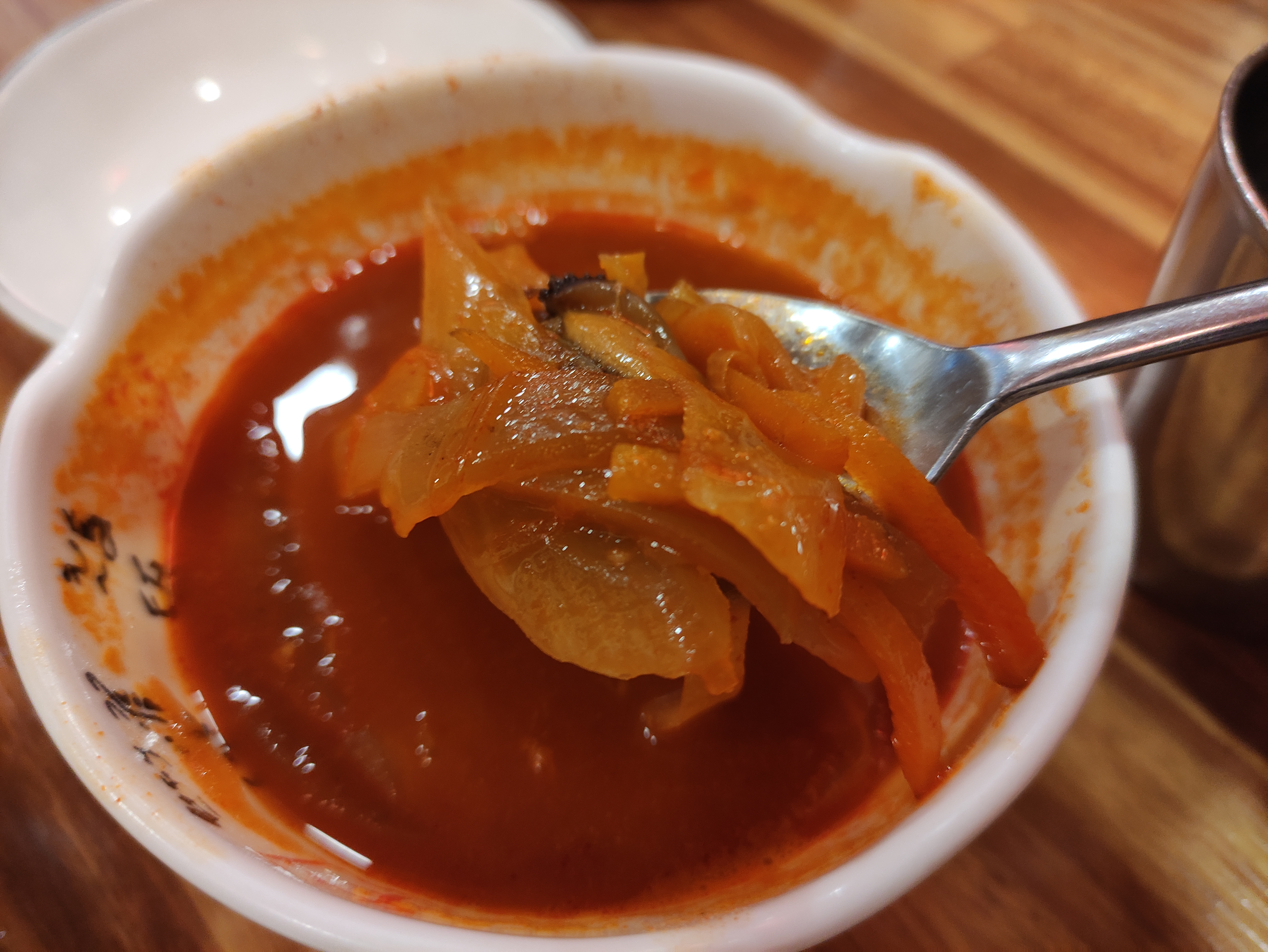 새송이덮밥이에요. 짬뽕국물을 같이 주시는데 채소건더기가 있어서 맛있게 먹었어요. 새송이도 잘 볶아졌고, 소스도 맛있어서 저의 최애메뉴입니다. 역시 맛있네요. ㅎㅎ